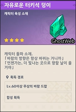- 바람 원소 : 자유로운 터키석 가루, 자유로운 터키석 조각, 자유로운 터키석 덩이, 자유로운 터키석