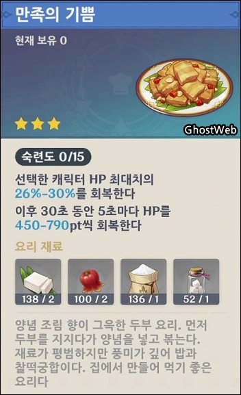- 이후 30초 동안 5초마다 HP를 450~790pt씩 회복한다.