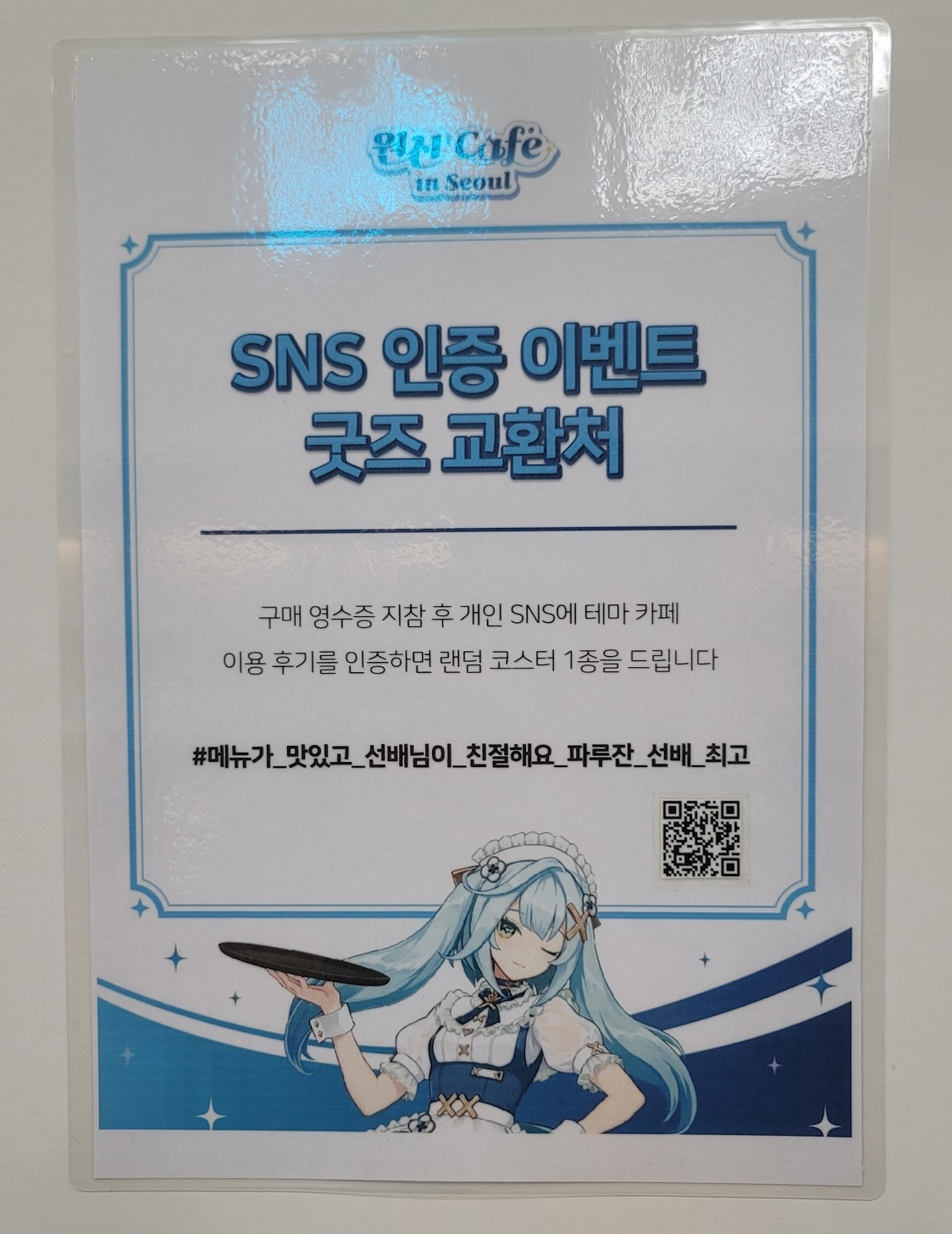 카페에서 구매 영수증 지참하고 개인 SNS에 이용 후기를 인증하면 랜덤 코스터 1종을 교환해준다고 하니 카페 이용하신 분들은 참고하세요. (저는 응모를 안해서 정확히 어떤 건지 모르겠네요.)