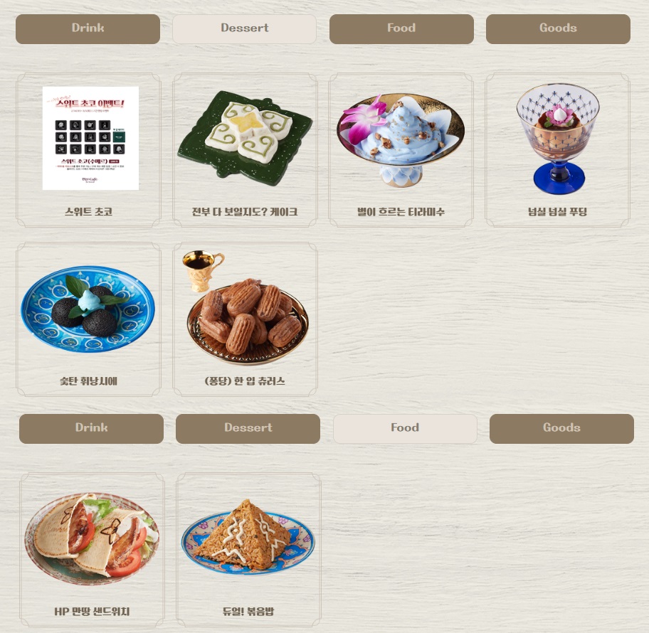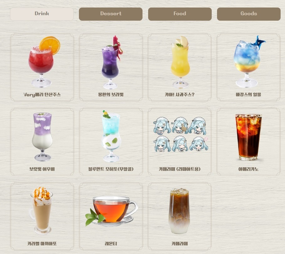 카페를 이용하실 분은 공식 카페 홈페이지에서 음식 종류와 가격을 알 수 있어요. (음료, 디저트 등)