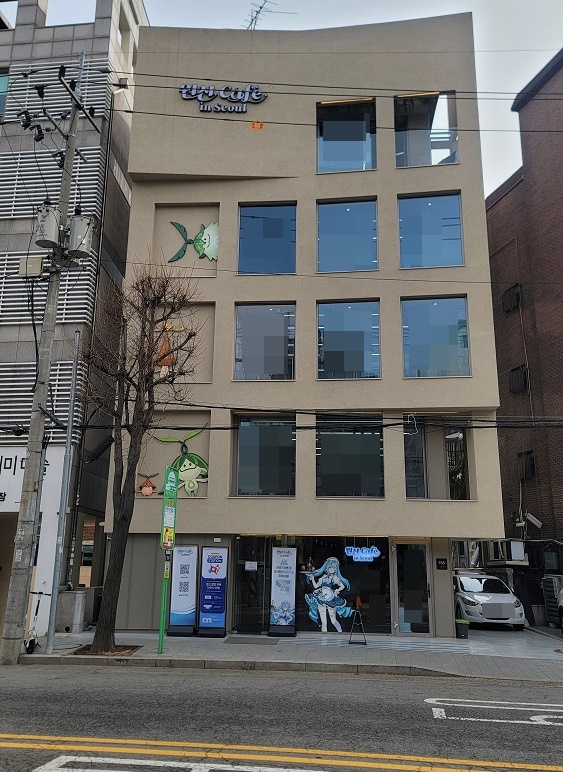 홍대역(6, 7번 출구), 신촌역(7, 8 번 출구)에서 걸어가면 원신 카페 건물을 발견할 수 있어요.