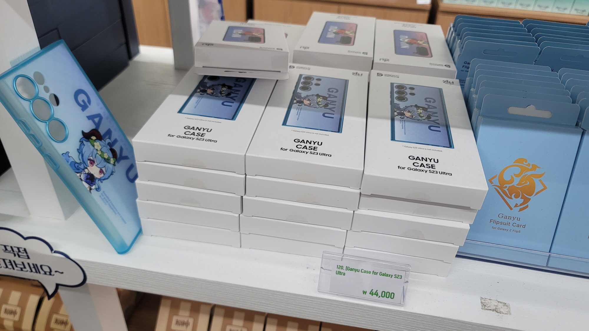 캐릭터 키링, 아크릴 스탠드는 2만원 이하, 다이어리, 가방, 팔찌, 액정 클리너, 이어폰 케이스, 갤럭시 S23 울트라 케이스(감우), 감우 쿠션 등을 구매할 수 있어요.