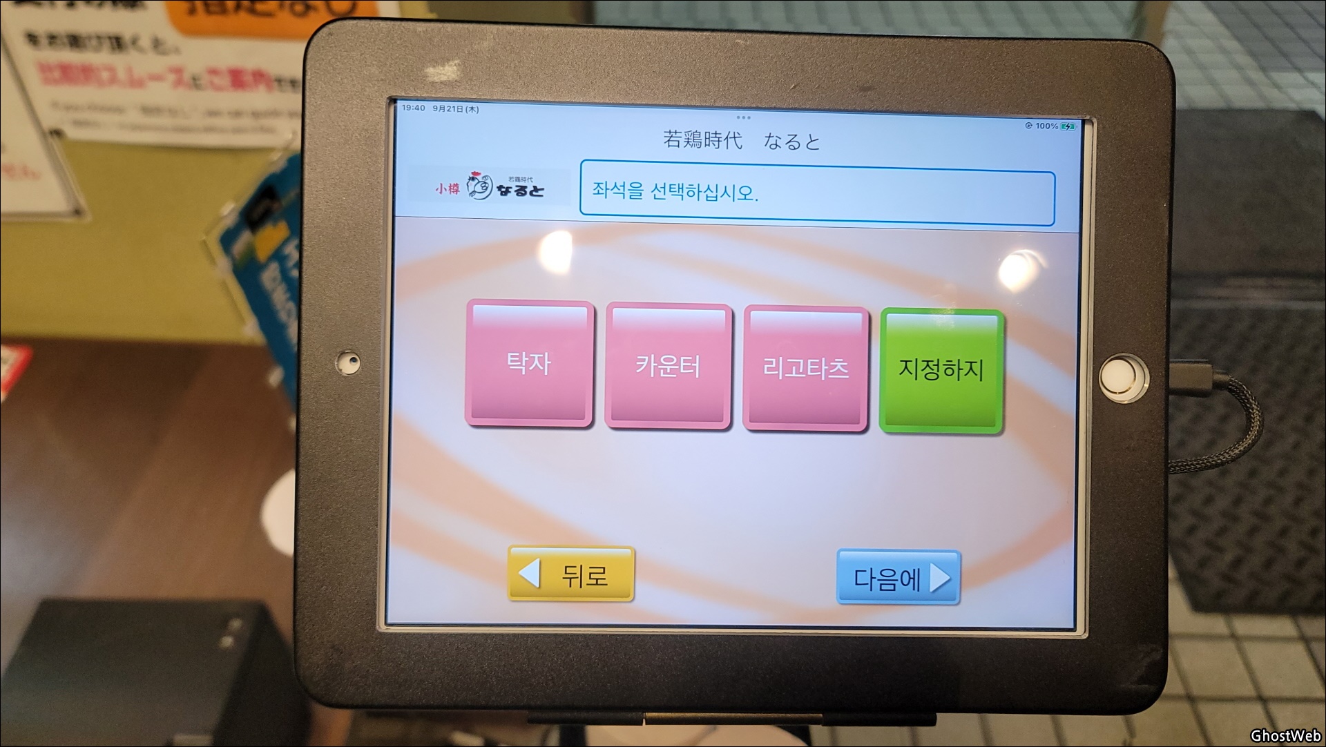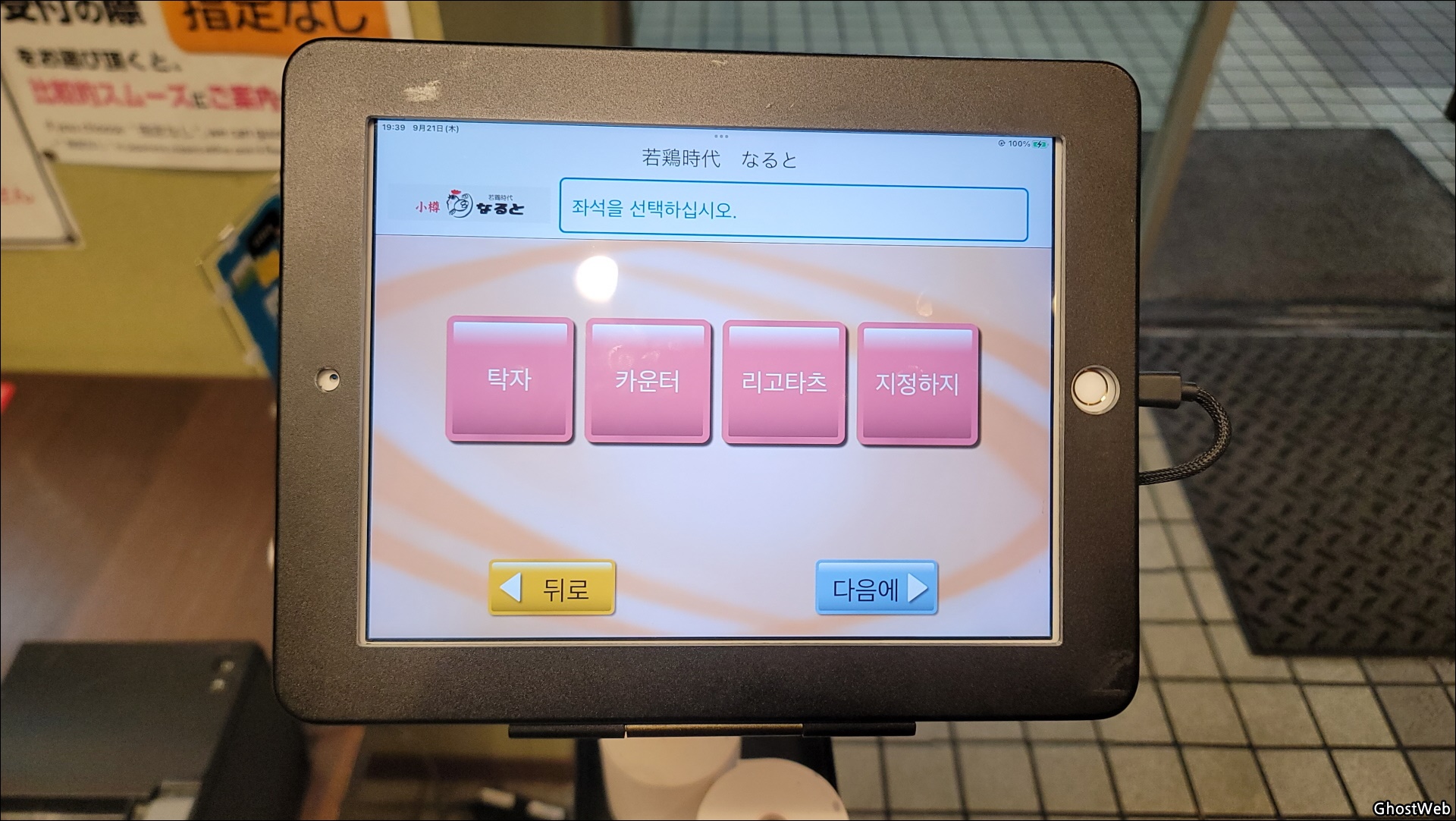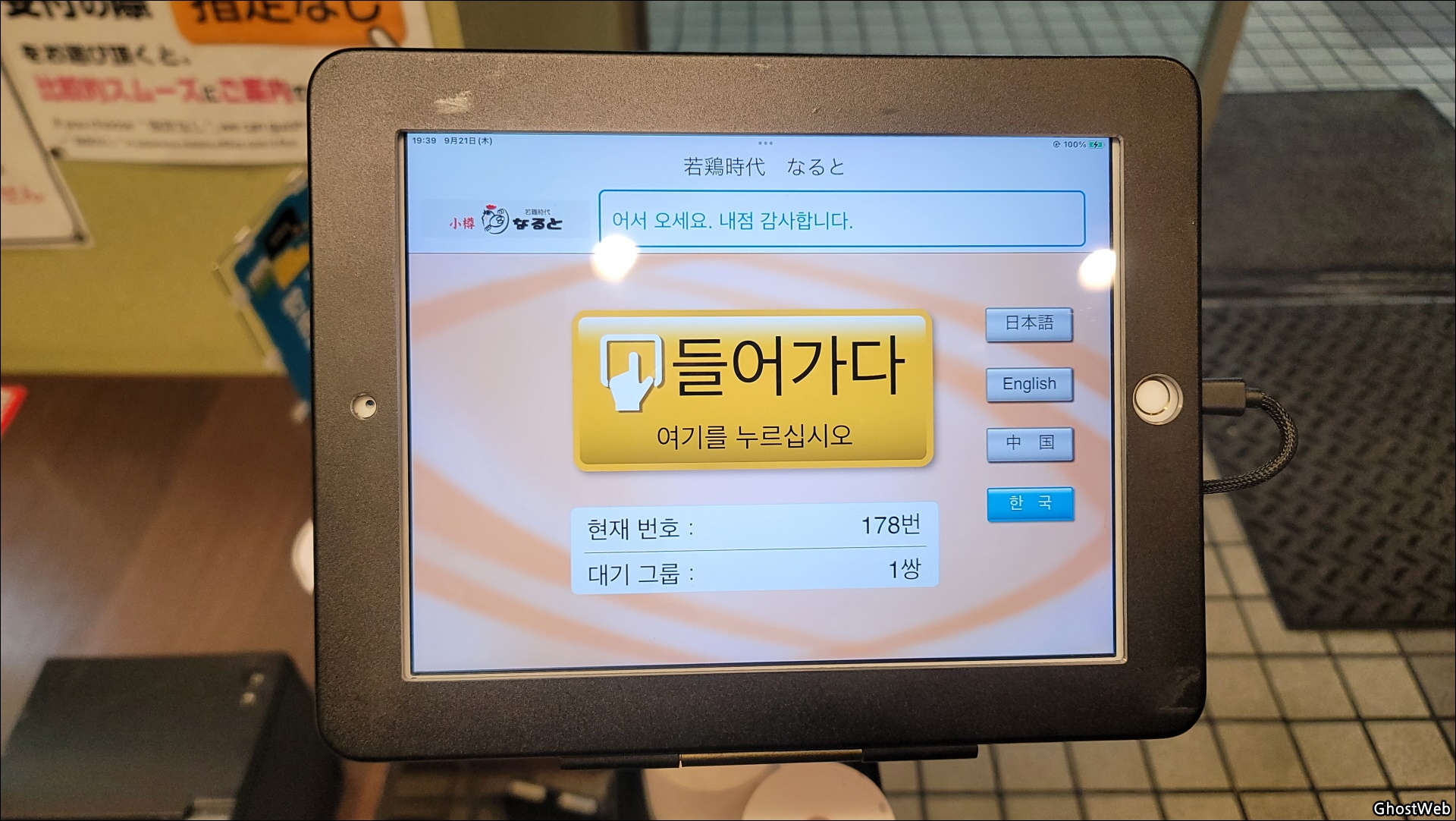 입구에서 있는 태블릿에서 대기 표를 뽑고 기다리면 점원 분이 번호를 호출하고 자리로 안내해주는데, 주문은 카운터로 가서 하면서 동시 선결제를 해야되는 시스템이에요. (타블릿 한국어 지원)