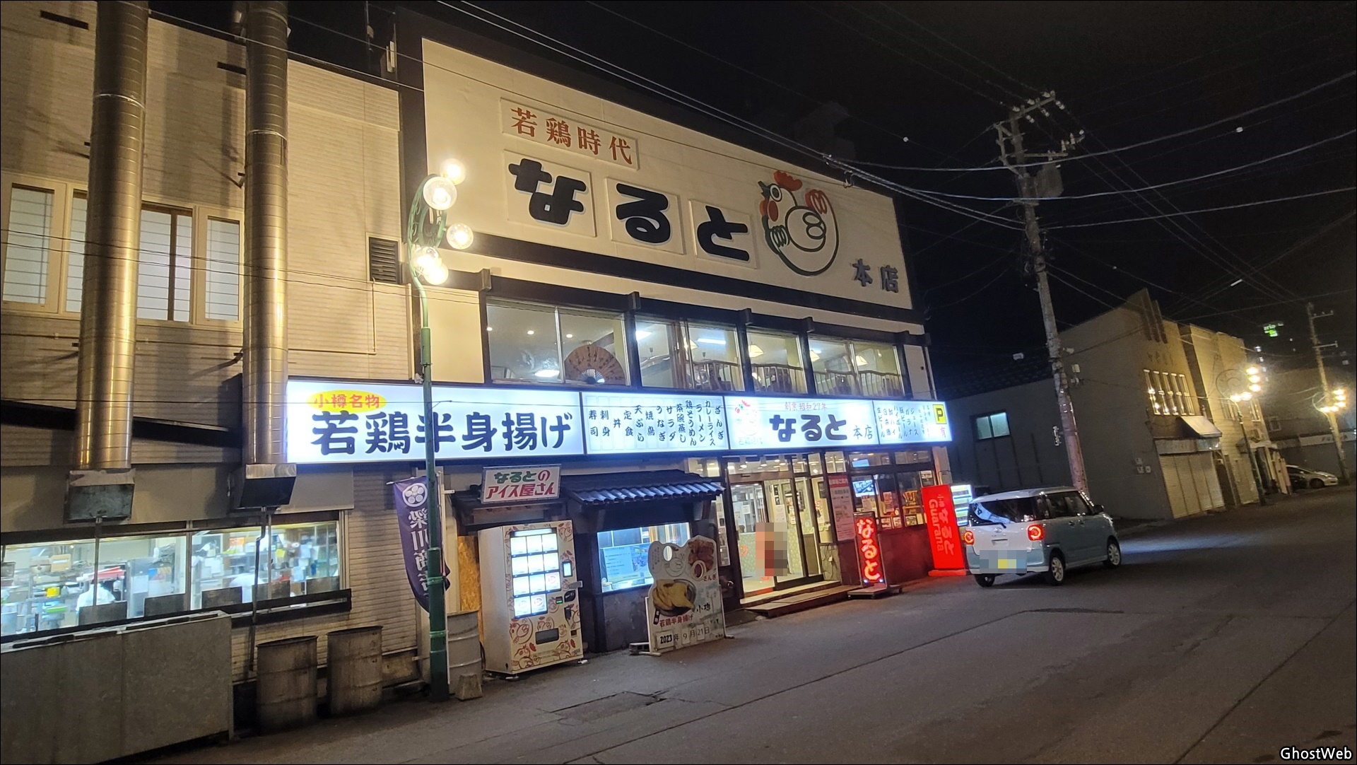 텐구산 전망대에서 야경을 찍고 내려오느라 오후 8시 반 이후라 늦게까지 가게를 오픈한 곳이 없기도 하며 저녁은 든든하게 먹고 싶어 닭튀김 정식(1,270엔)을 먹으러 나루토 본점으로 향했어요.