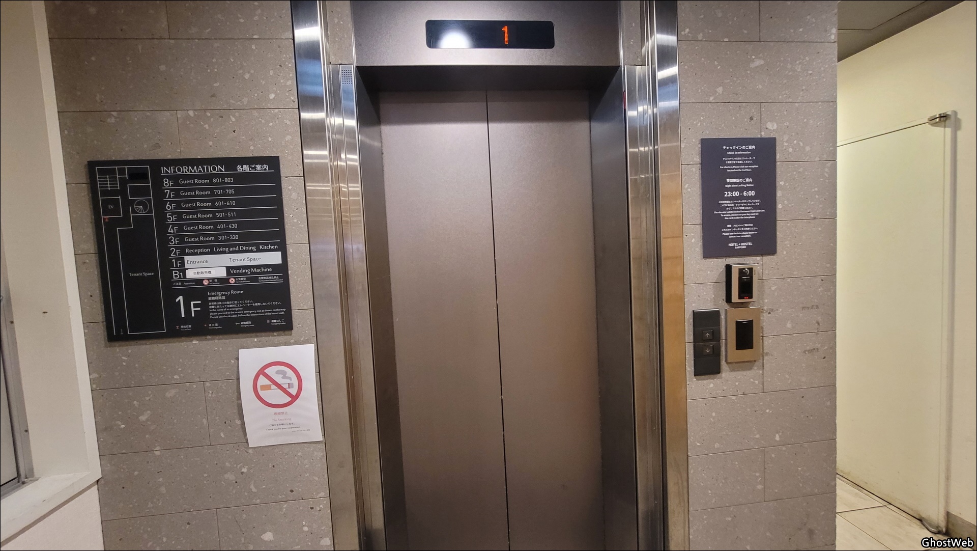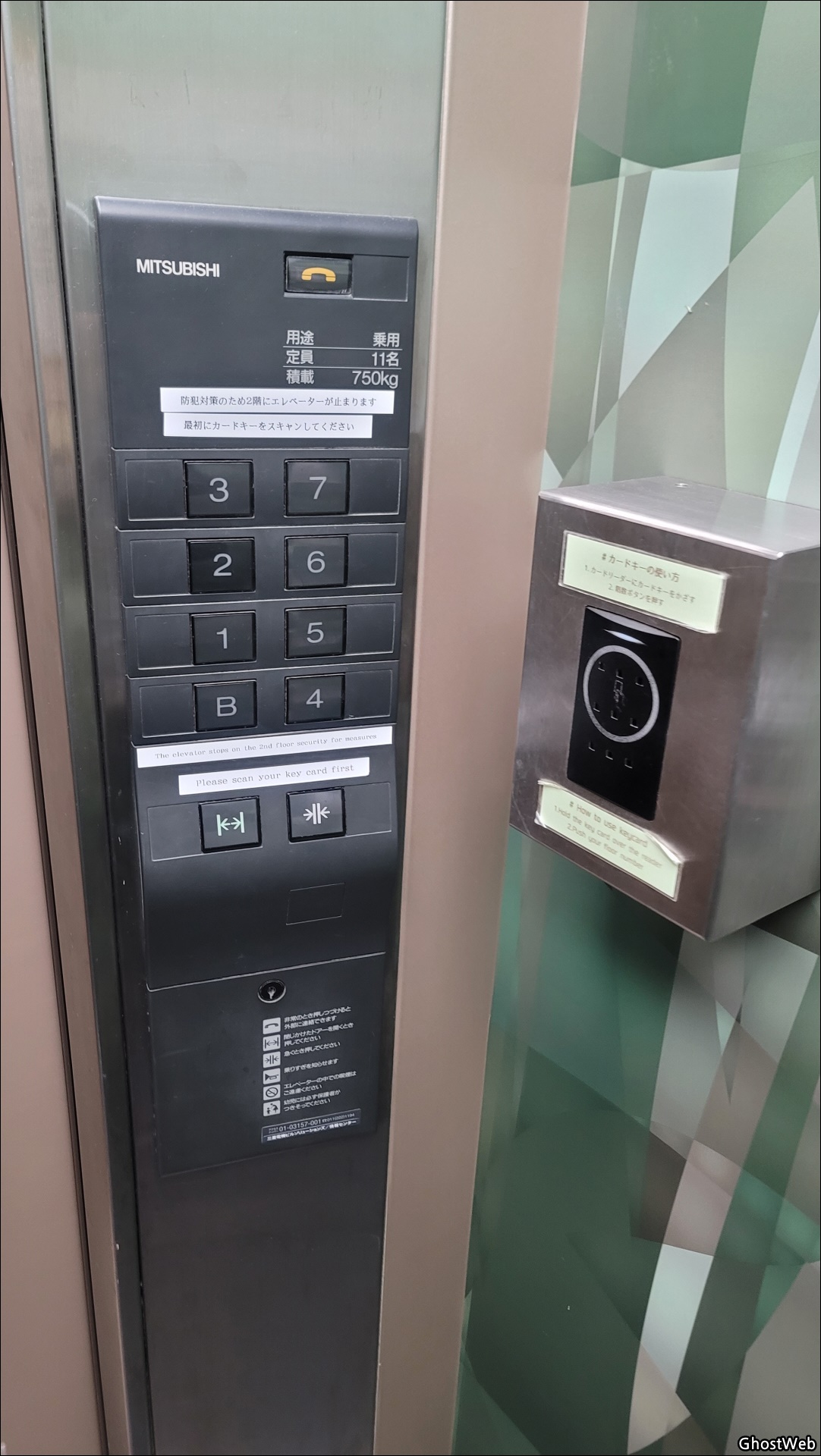 - 1층 엘리베이터는 23:00 ~ 06:00시에는 1층 부터 카드 키를 터치해야 엘리베이터를 호출할 수 있어요.