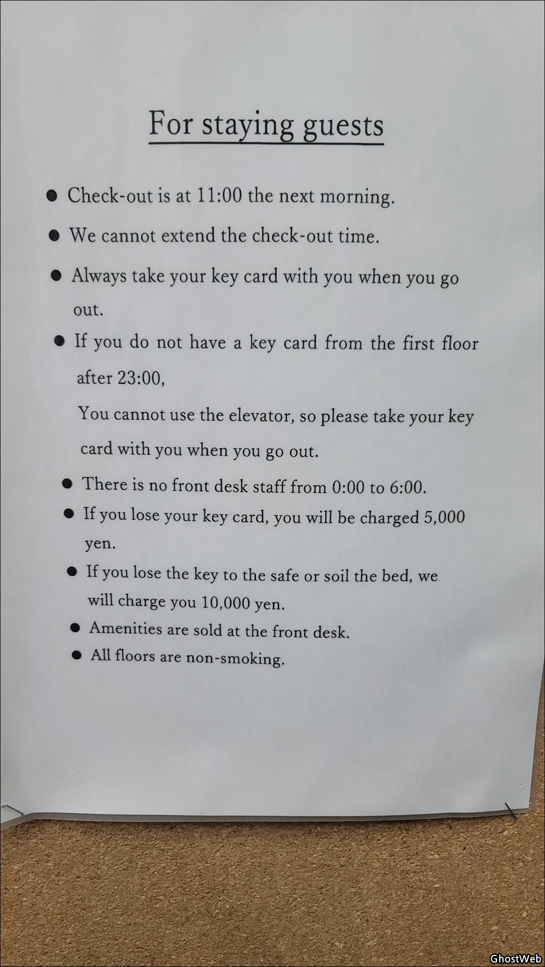 - 카드 키 분실 시 분실에 대한 배상 요금이 있어요. (10,000엔, 한화 약 10만원)