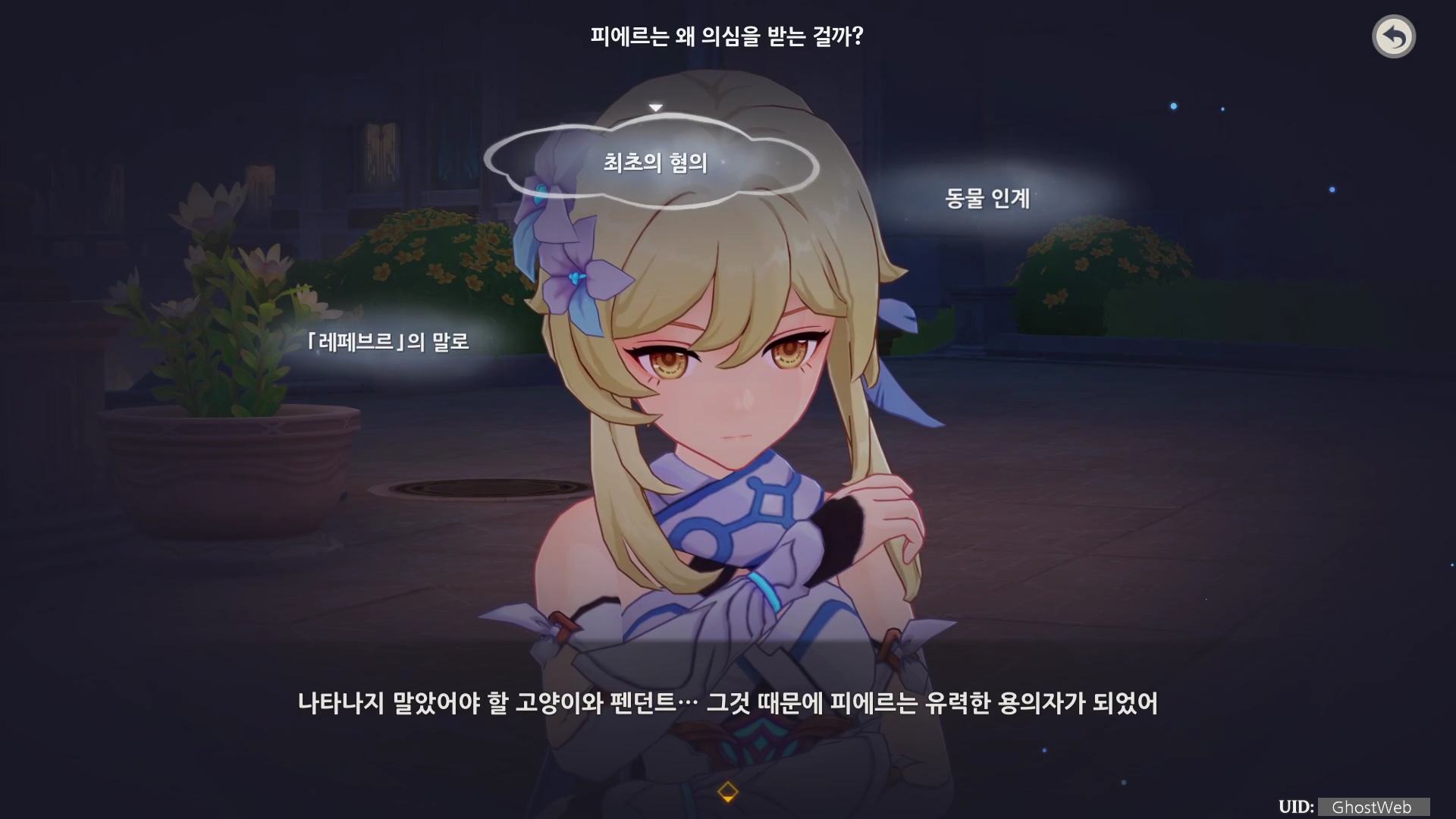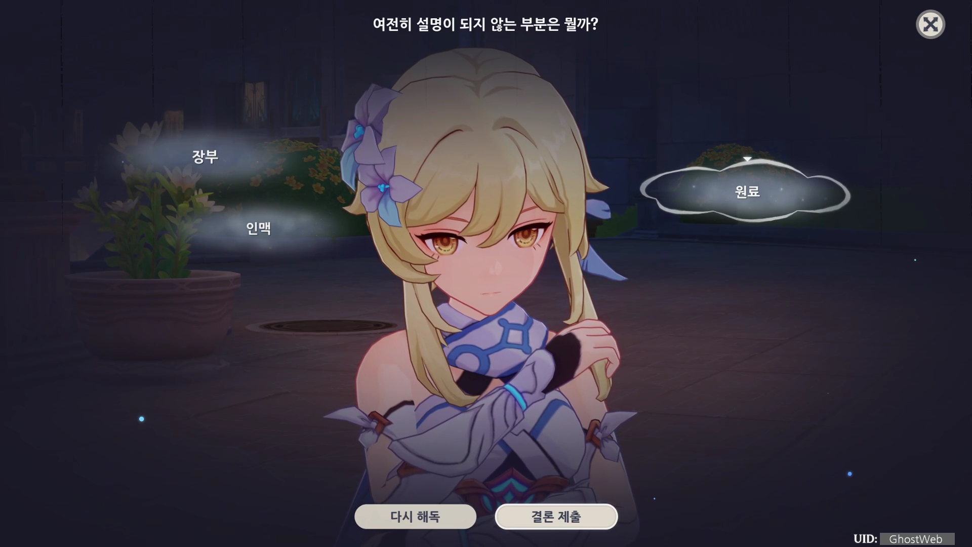 | [원신] 카베 초대 이벤트 | 제1막 - 불행과 행복의 시계추 (엔딩, 스토리 분기점 정리) (0) | 2023.05.26 |