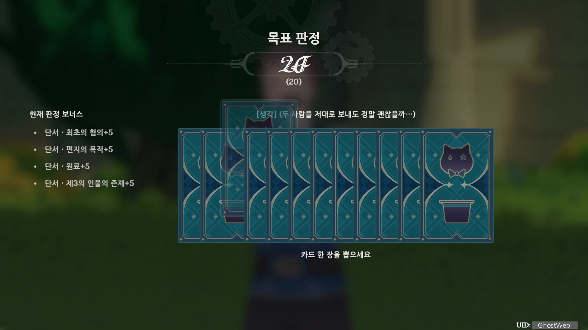 또는 [ [계시기] 나도 잘 모르겠어... 운명에 맡기자 ]를 선택 후 5이상 카드 뽑기