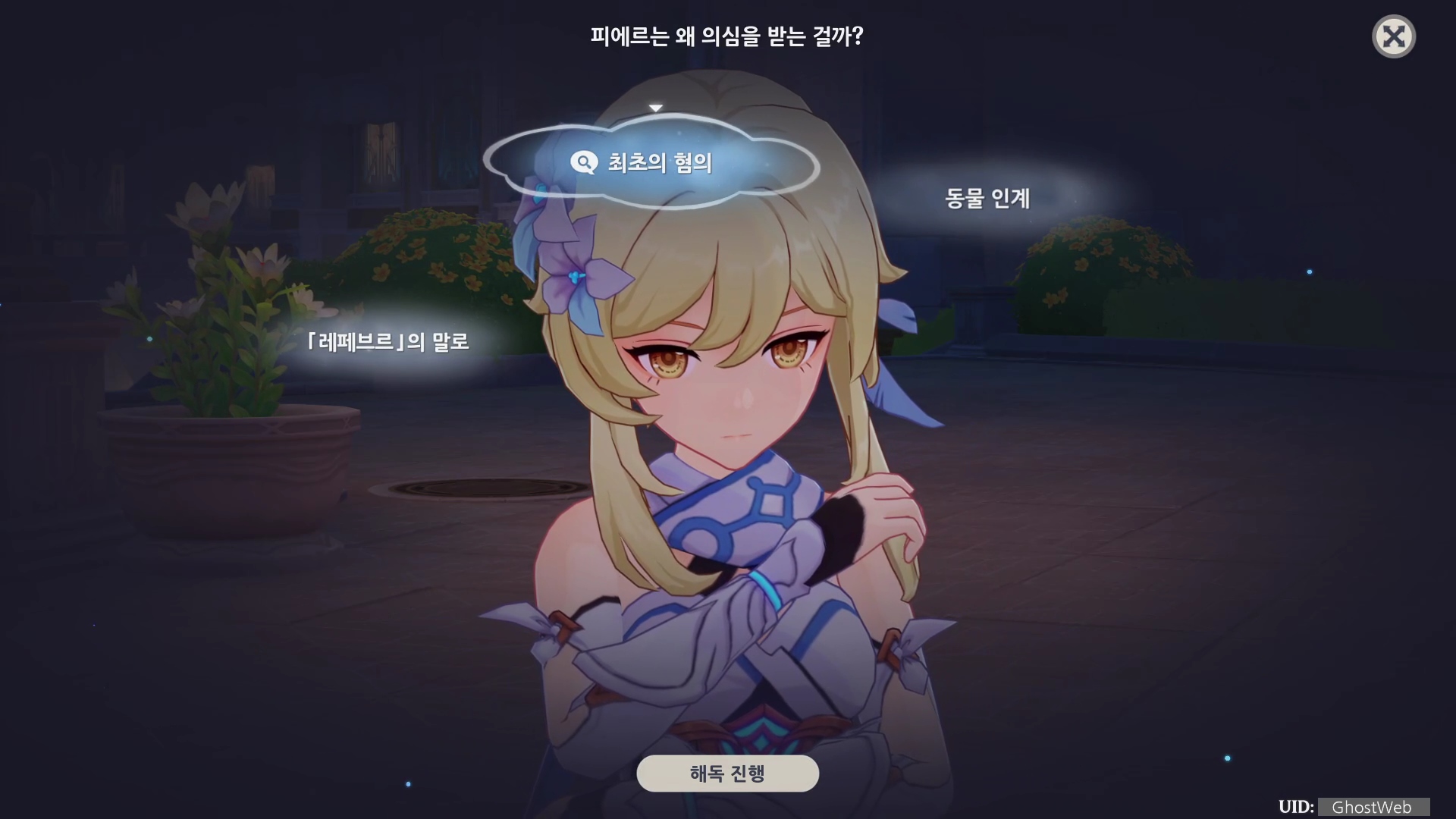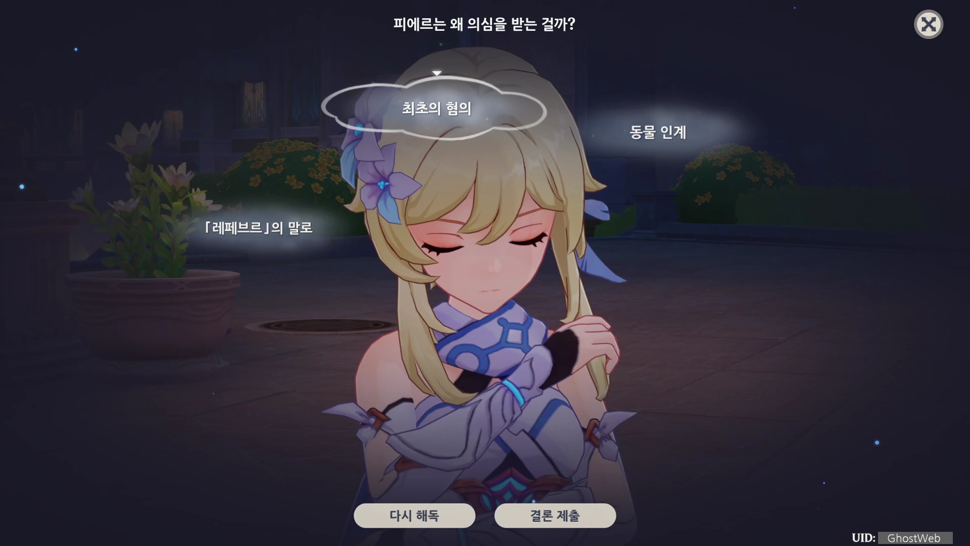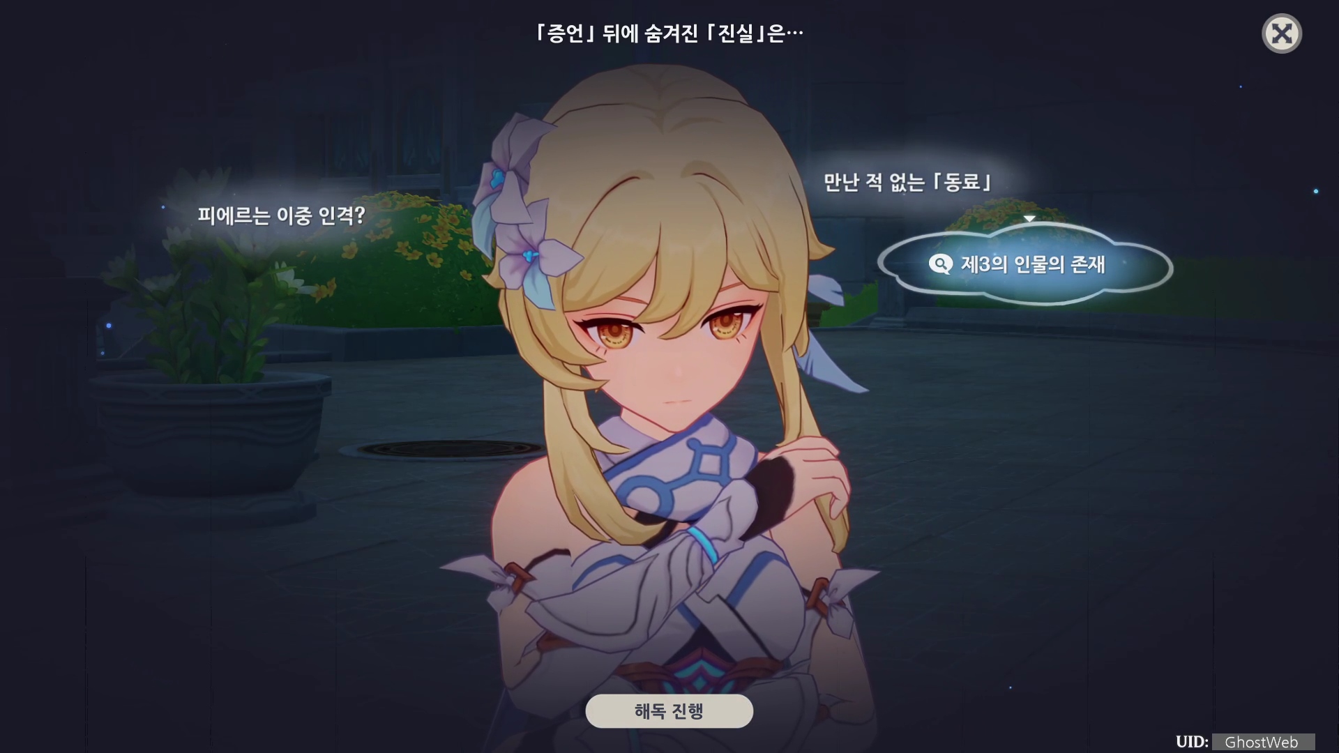 - 피에르는 이중 인격? 해독 진행 후 만난 적 없는 동료를 선택하고 연상 진행 (제3의 인물의 존재 선택지 생성)