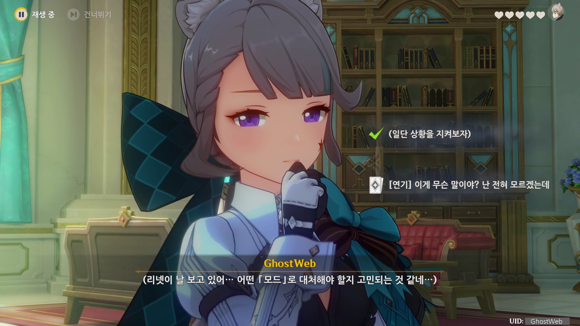 ※ 분기점 : 리넷와 대화에서 [ [연기] 이게 무슨 말이야? 난 전혀 모르겠는데 ] 선택 (판정 성공)