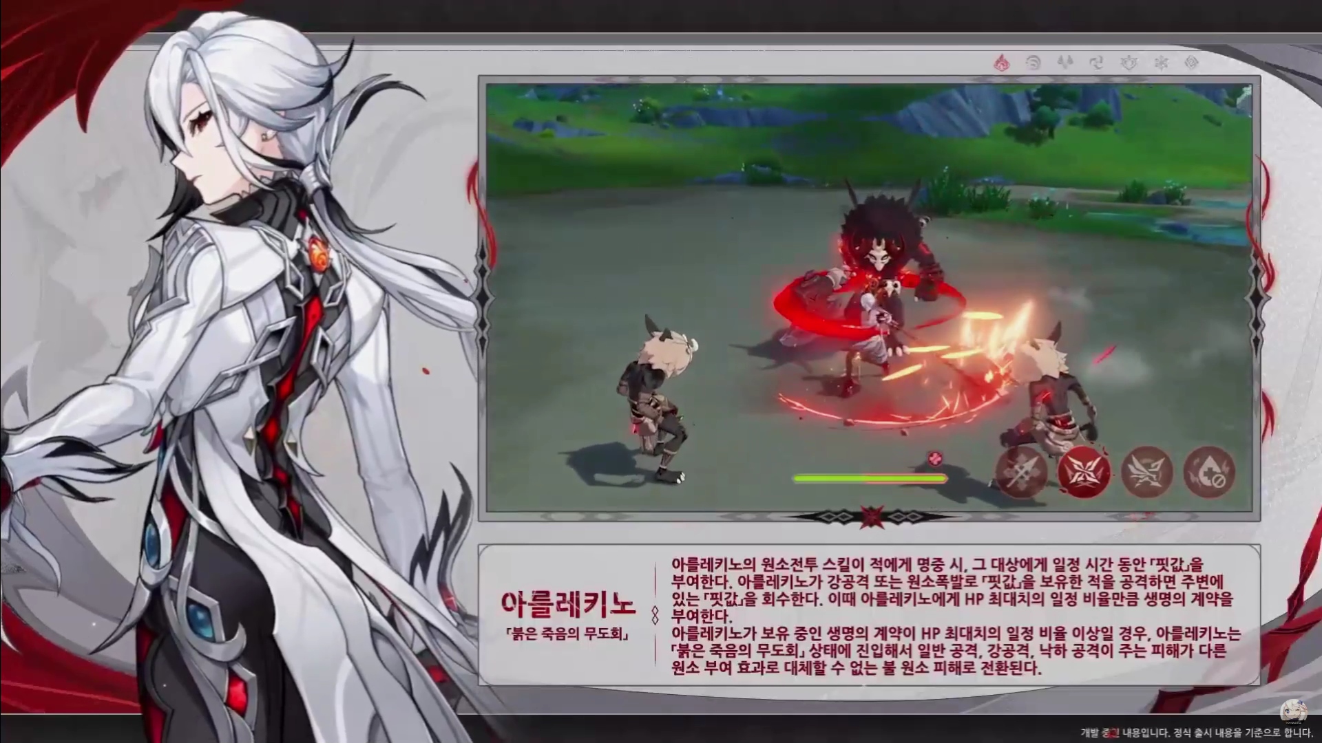 - 무기 : 붉은 달의 형상 (5성, 장병기, 아를레키노 전용 무기)
