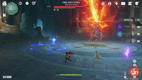 그리고 골렘 군장장이 검을 들어 성난 화염의 충격을 발동할 때 보호막을 파괴하면 [ 극장 소방 훈련 ] 업적을 달성할 수 있어요.