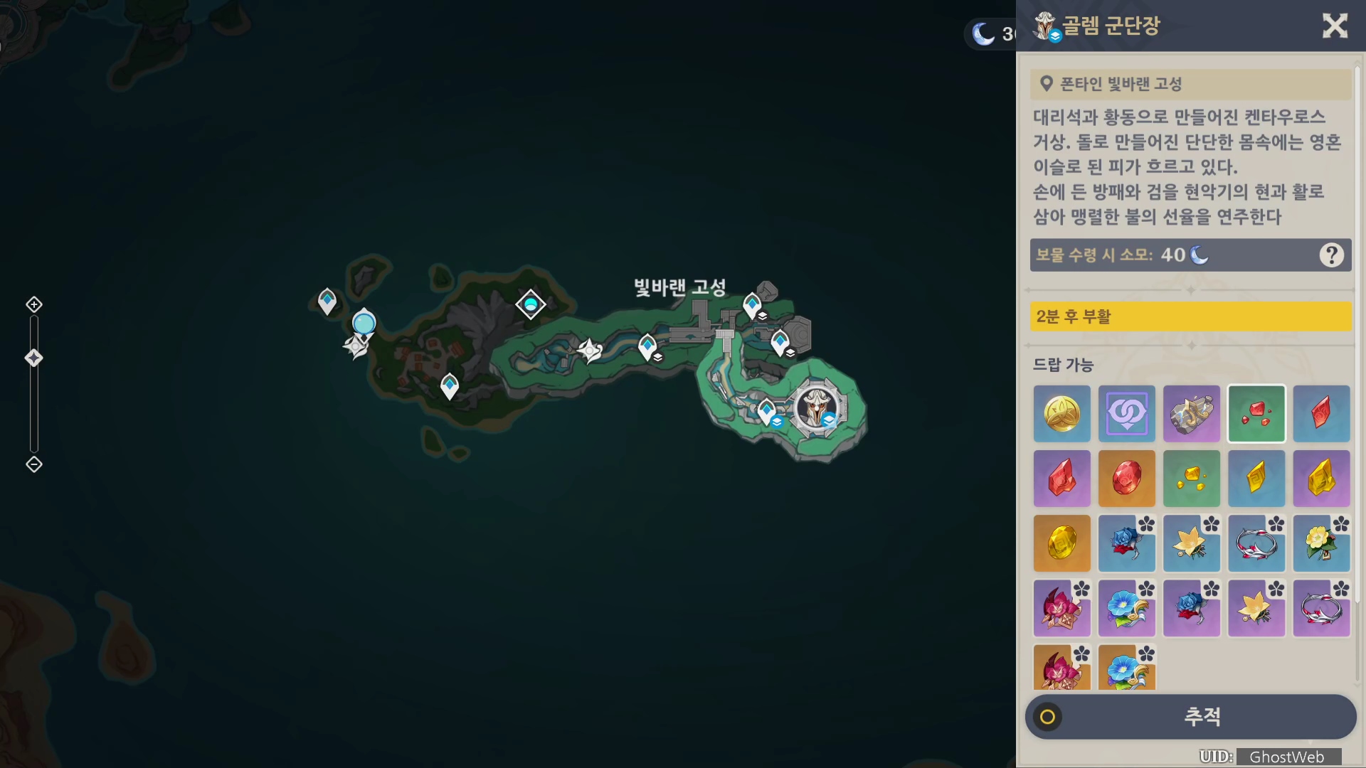 처치 보상으로 아를레키노의 캐릭터 돌파 소재인 금빛 선율의 단편을 얻을 수 있어요.