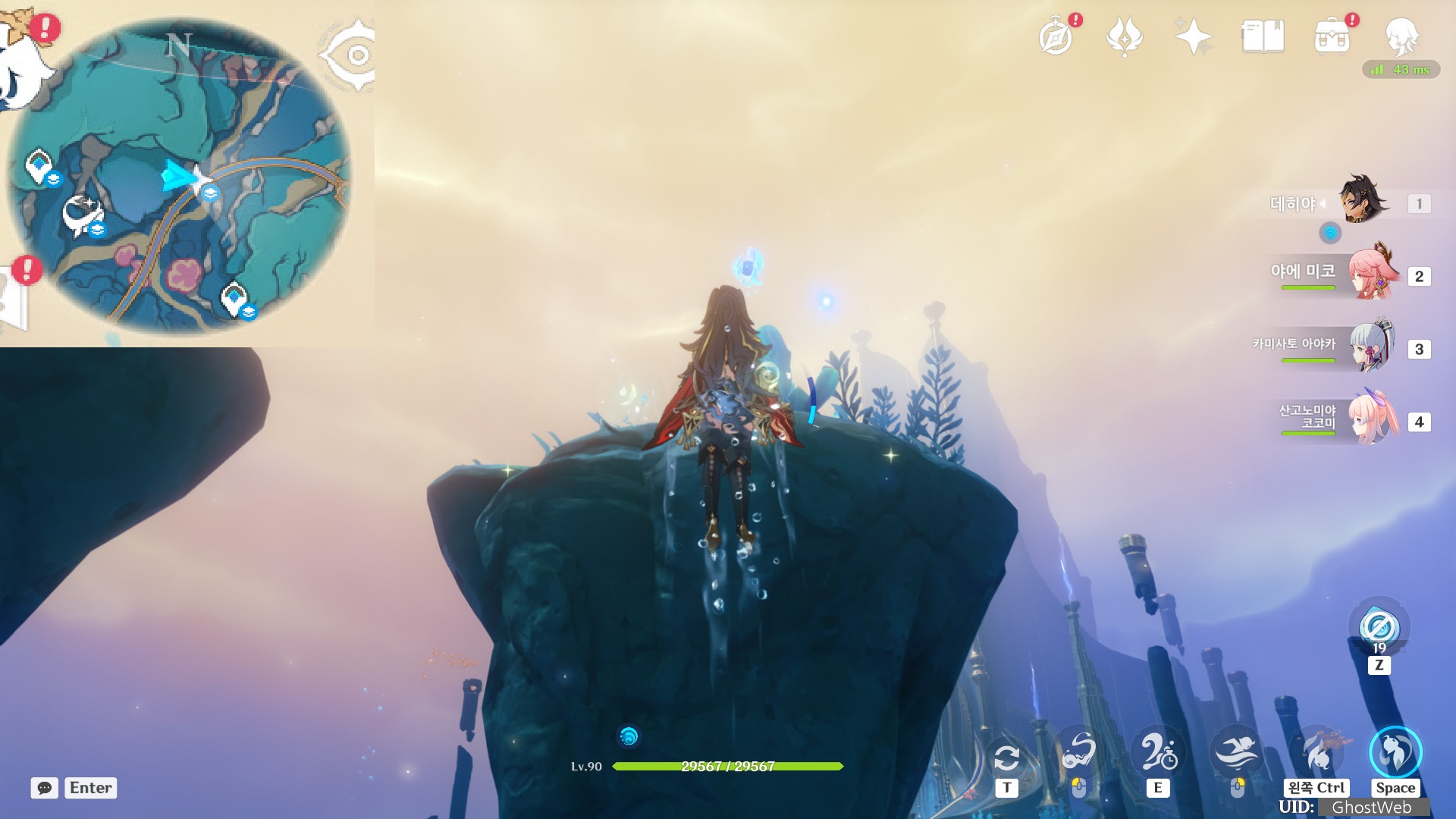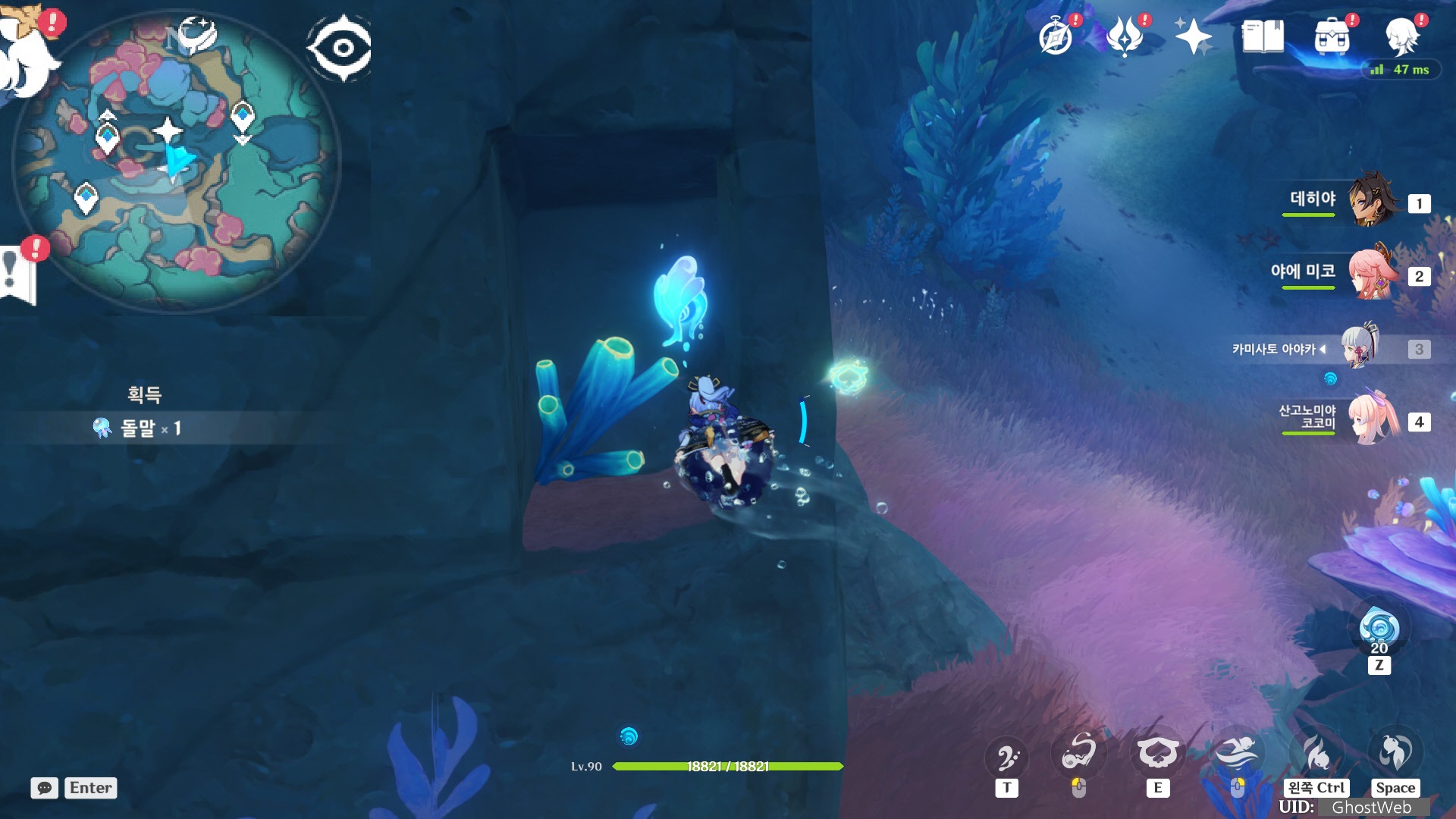 여기는 빛바랜 고성에서 월드 임무를 진행하다 보면 갈 수 있는 곳으로 별도의 월드로 바닷속 특성 상 지도에 표시된 지역으로 가서 위, 아래를 헤엄쳐서 찾아야 물의 신의 눈동자를 찾아야 할 경우가 많아요.