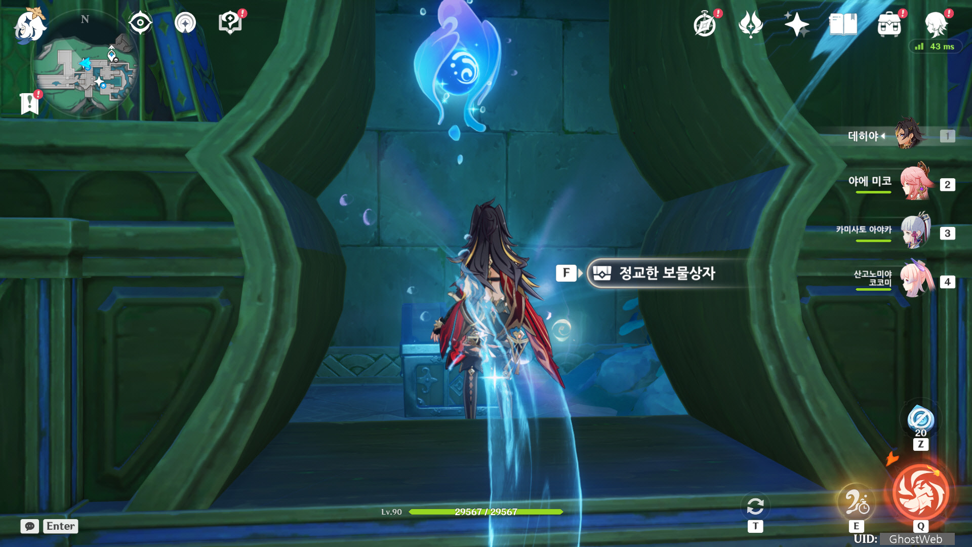 물 상부, 바위 파괴, 암벽 사이 등 다양한 곳에 물의 신의 눈동자가 숨겨져 있기 때문에 찾는데 수고가 좀 있는 경우니 여유를 갖고 기믹(보물 상자)을 처리하면서 탐험 해보세요.