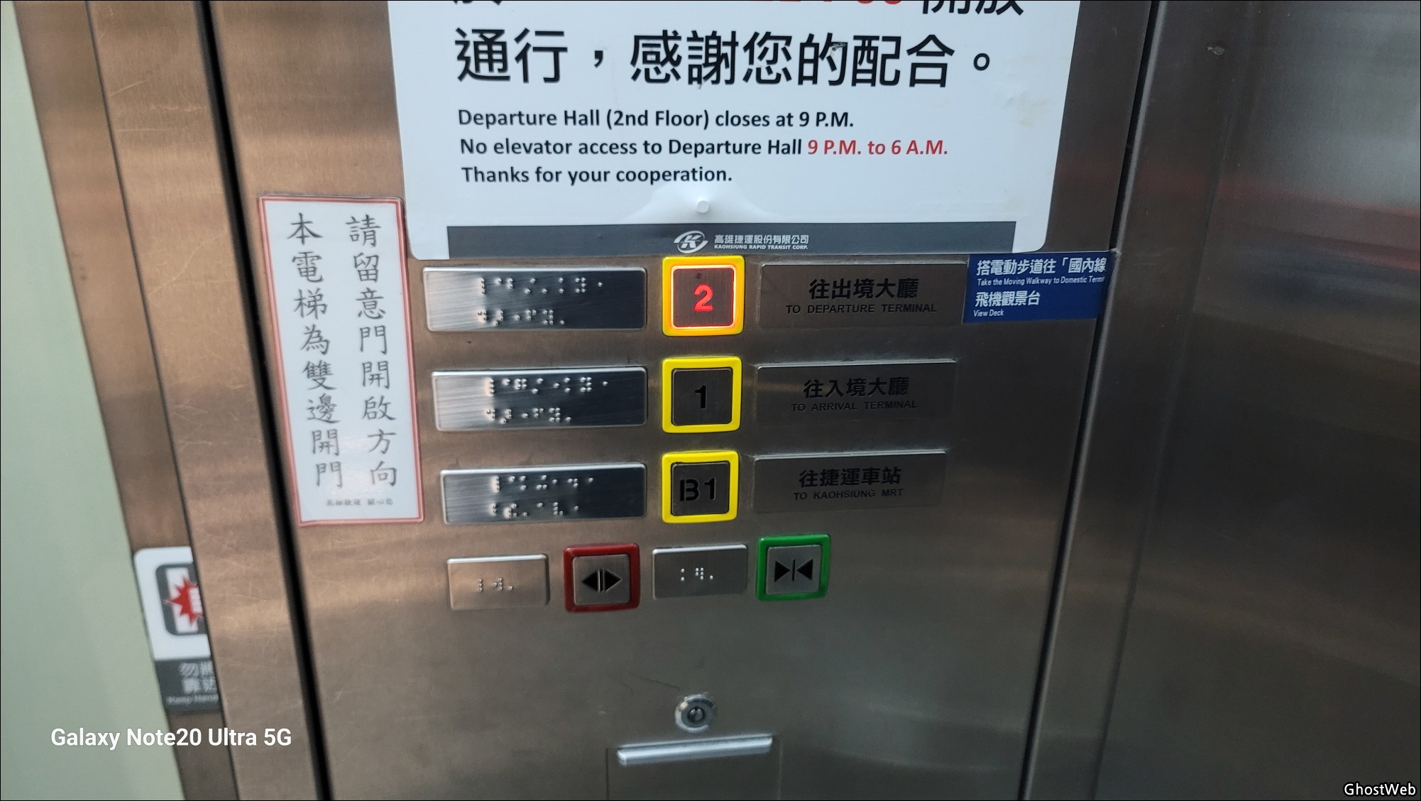 가오슝 시내에서 MRT를 타고 가오슝 공항 역에 도착하셨다면 지하에서 엘리베이터를 타고 2층 버튼을 눌러 출국장으로 올라가 왼쪽으로 International Terminal 방향으로 걸어가세요.