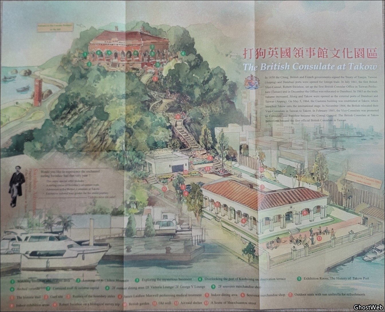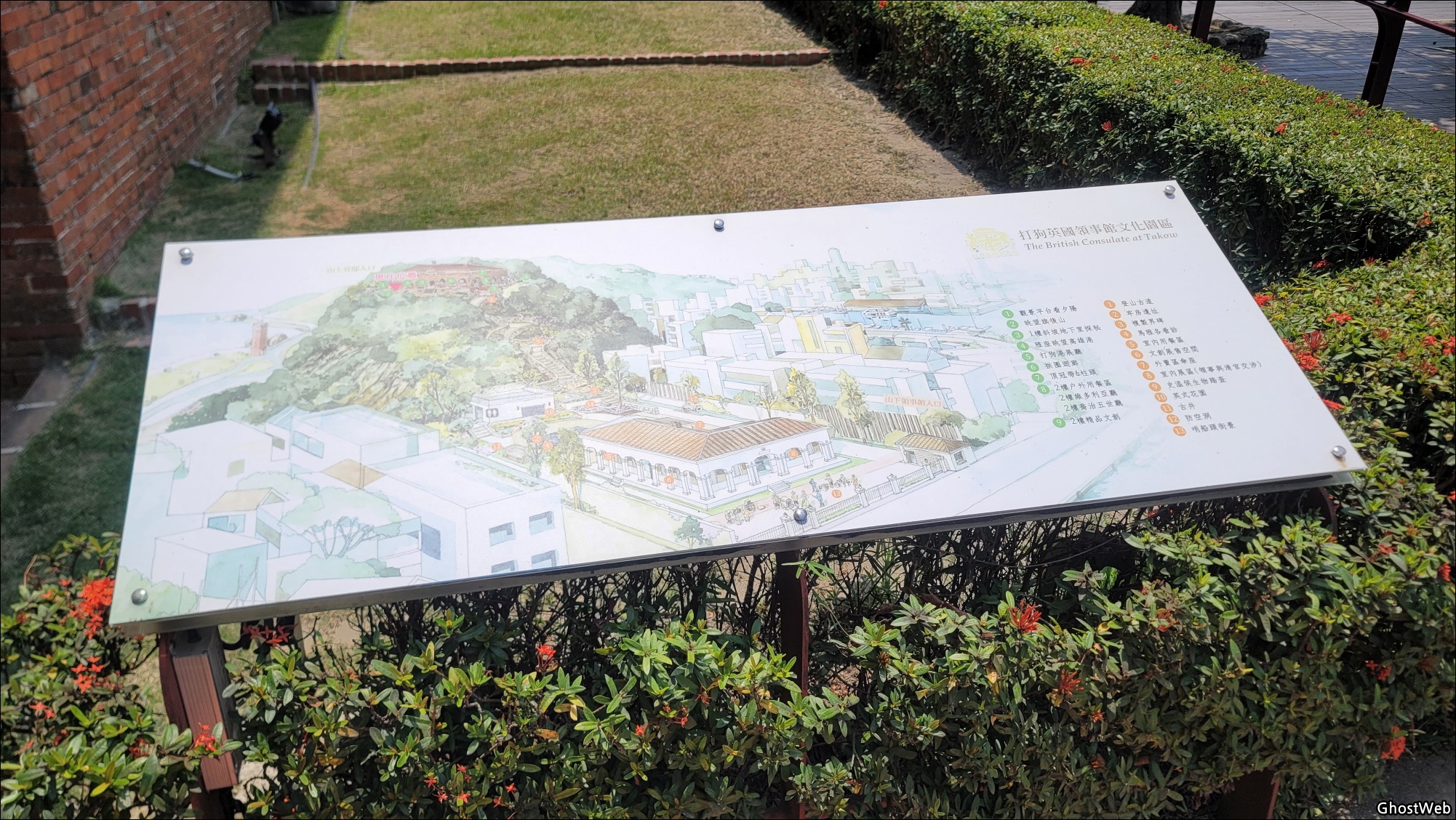 대사관 내부에는 전시장이 있어서 에어컨을 쐬면서 영국 시대의 물건 들과 사진들을 볼 수 있으며, 언덕 위 지역을 다 구경하였다면 바닷가 쪽에 조금만 문을 통해 아래의 있는 대사관 건물로 계단을 통해 내려가며 가오슝 시내를 구경할 수 있어요.