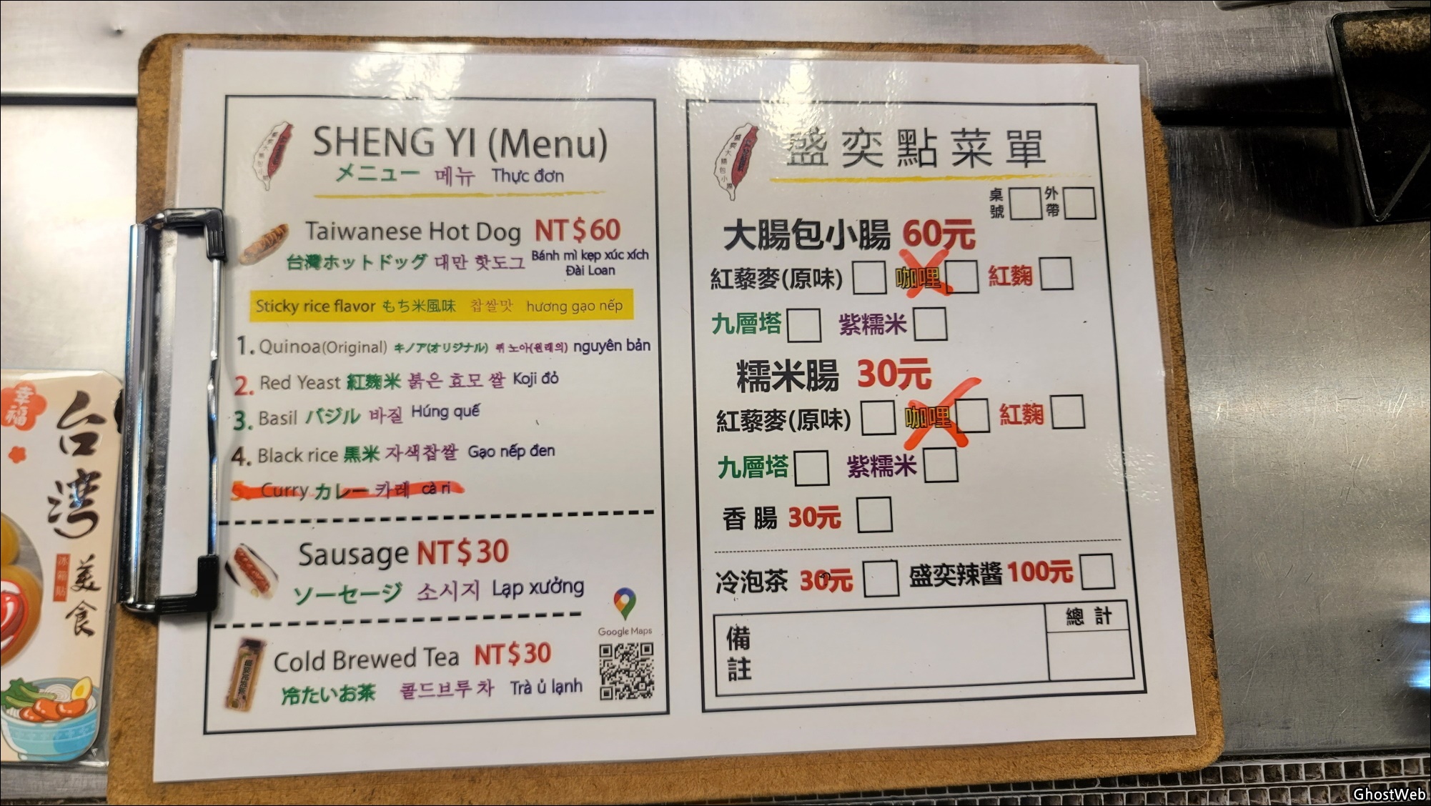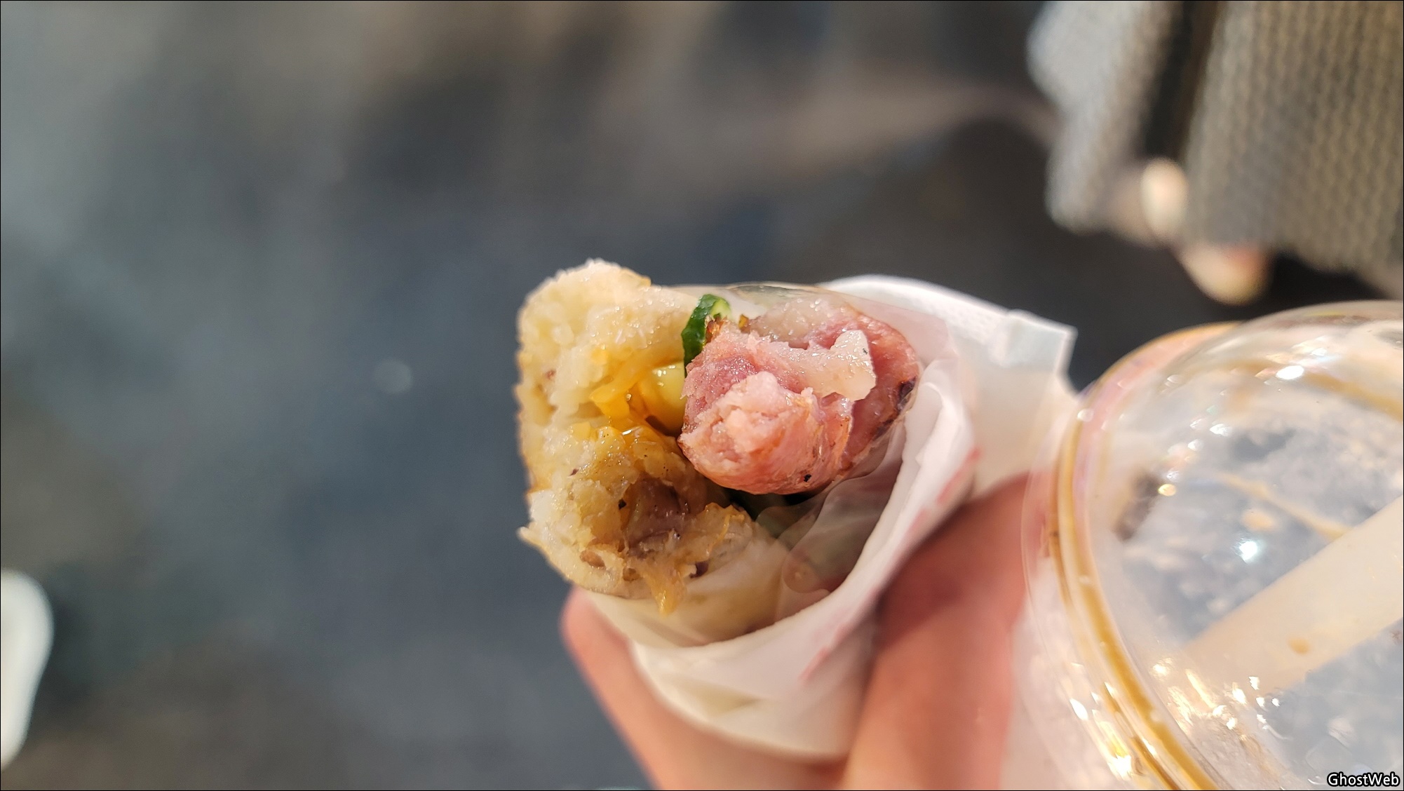 타이완 식 핫 도그는 소시지를 구우면서 직원 분이 옵션(맵기 정도)을 물어보시고 준비 해주시는데 약간 시간이 걸리며, 빵 인줄 알았는데 찹쌀로 만든 것이라고 해서 색다른 맛이네요
