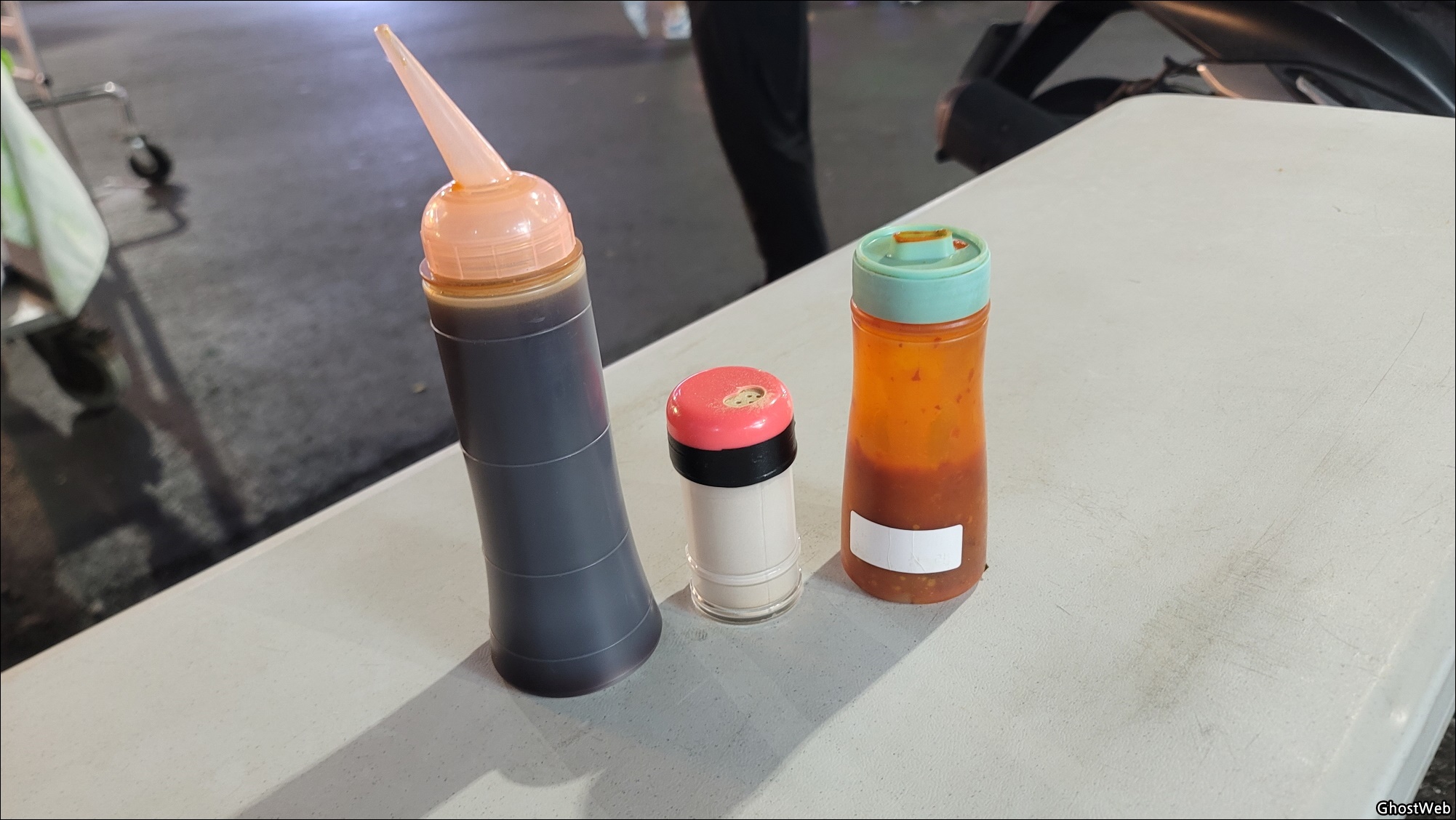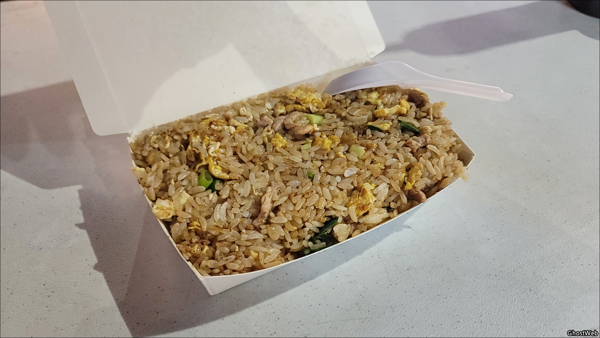 돼지 볶음밥은 앉아서 먹을 수 있으며, 자리에는 위에다 뿌려 먹을 수 있는 소스가 있고 먹어보니 간, 맛, 가격 (NT 70, 한화 약 2,800원) 다 괜찮았어요.