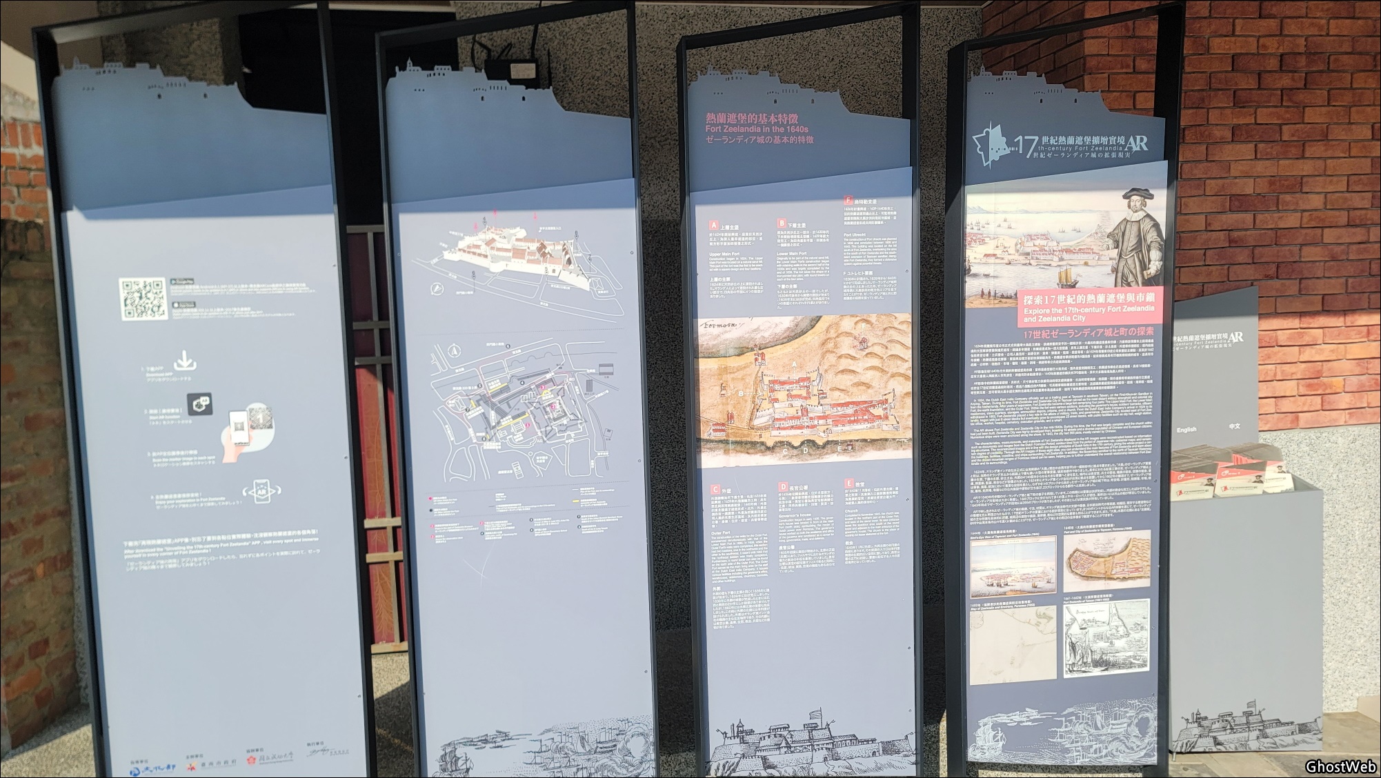 박물관 뒤편에는 타이완성 잔해유적 넓은 정원에 붉은 벽돌 벽이 있는데 각 벽돌 벽에는 각 시대의 설명과 이미지를 판에 조각해 놓았어요.