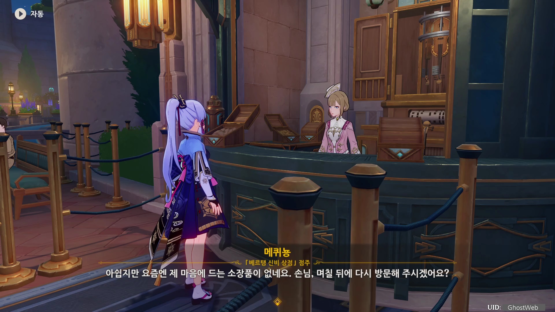폰타인 성에 처음 방문하여 메퀴뇽 (베르탱 신비 상점)에게 대화를 걸면 마음에 드는 소장품이 없다면 며칠 뒤에 다시 방문해 달라고 하는데 이를 풀기 위해서는 루키나 분수(루키나 분수의 보답)에 물의 인장을 공양하여 최대 레벨을 올리면 메퀴뇽(베르탱 신비 상점)이 판매 상품을 보여줘요.