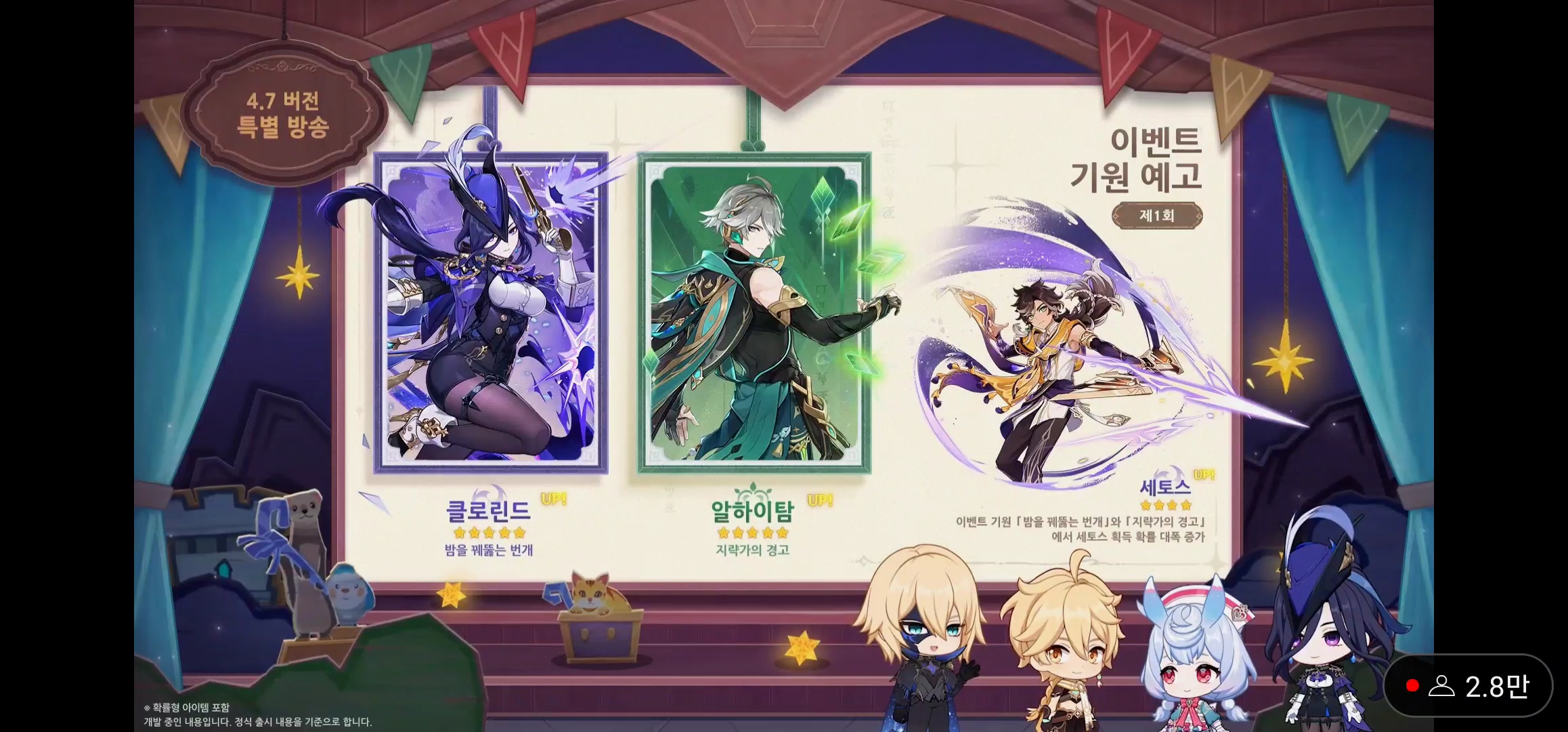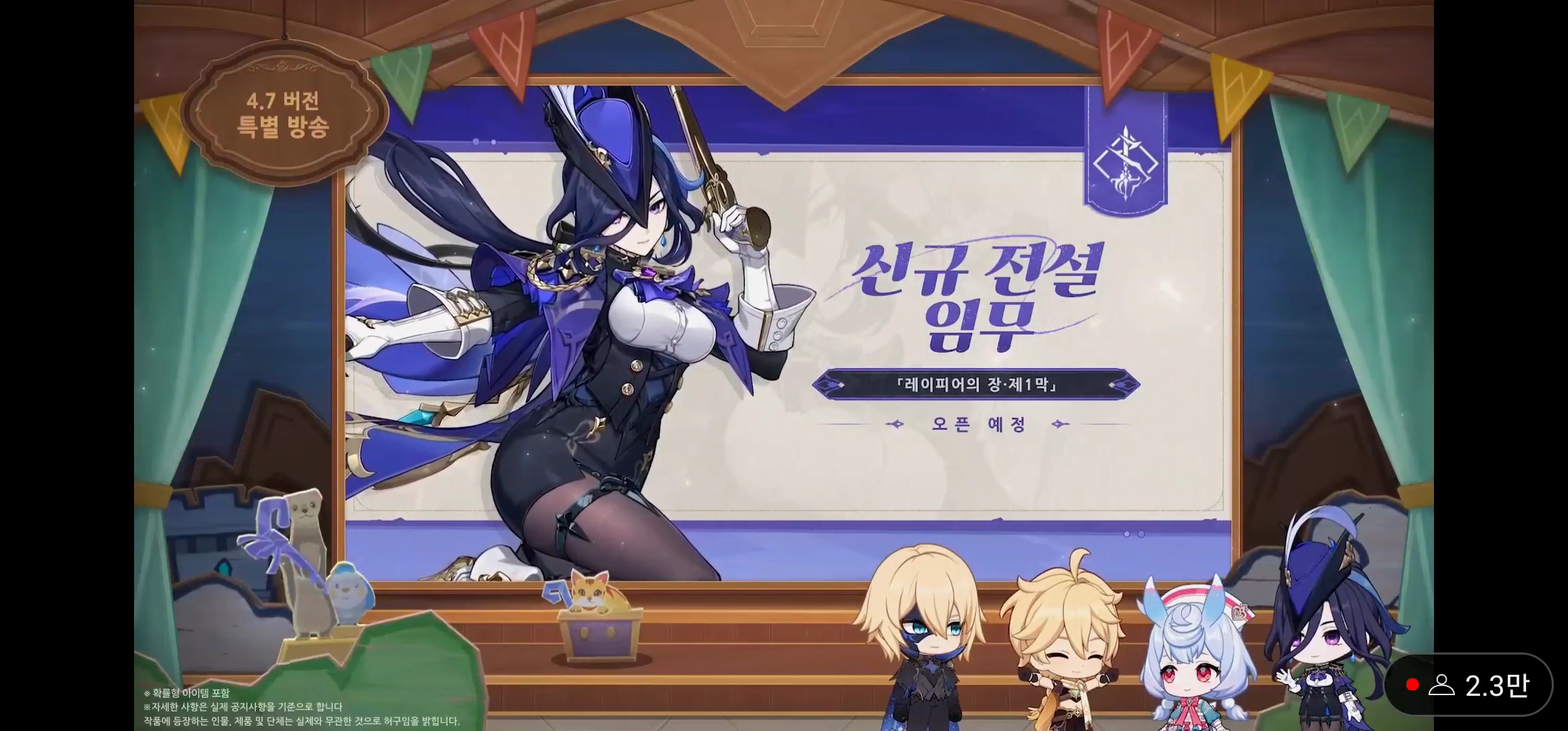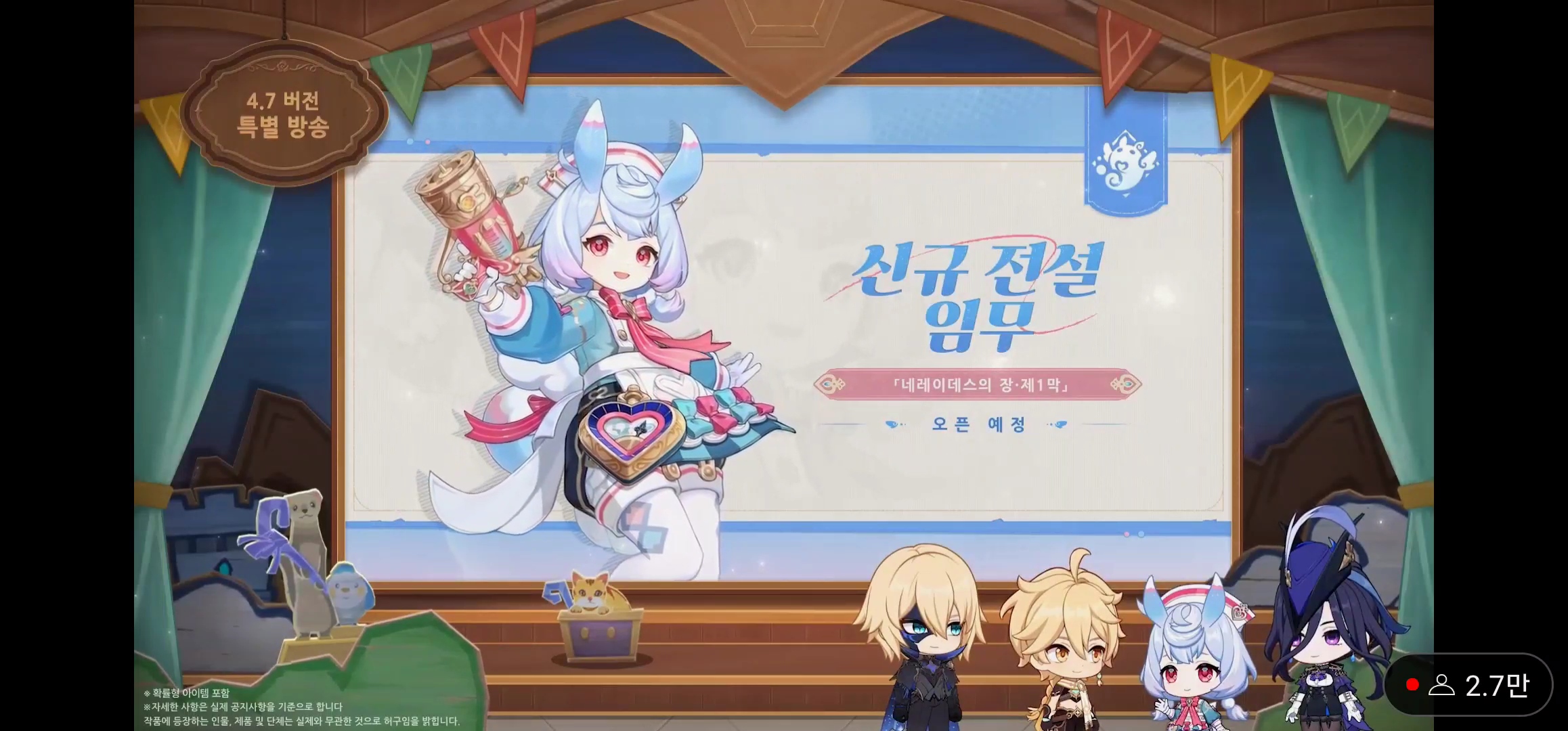 이번에는 2024-05-24에 방송된 원신 4.7 버전 특별 방송을 정리해보도록 할게요.
