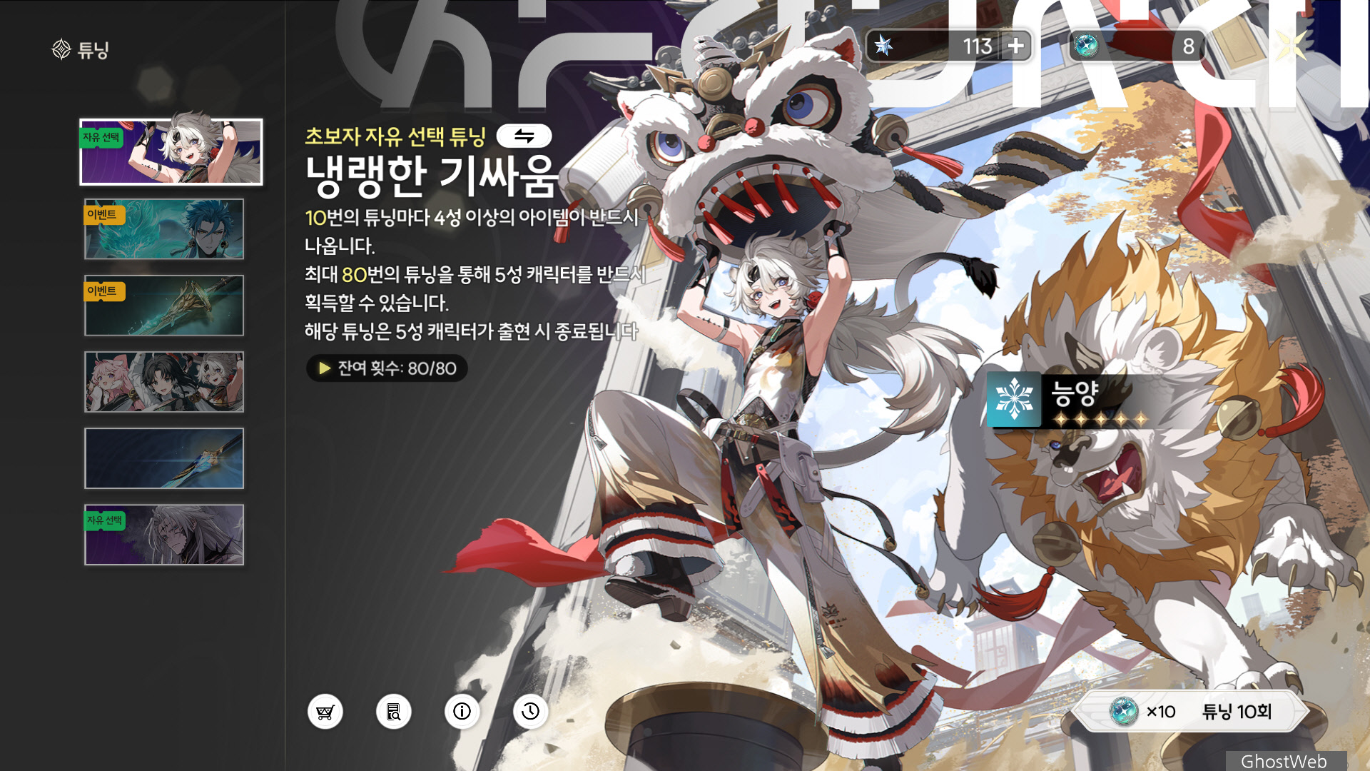 | 5 | 울려퍼지는 칠성북 | 공영 해방 돌진 · 사자의 질주 발동 시 추가로 능양의 200% 응결 피해를 가한다. |
