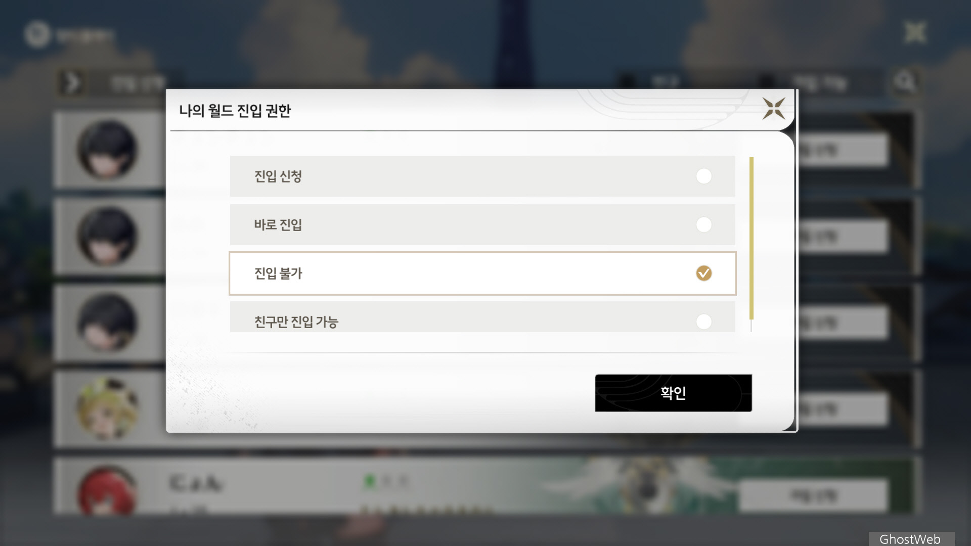 이번에는 명조 플레이시 다른 유저가 내 월드에 진입이 불가능하게 설정하는 방법에 대해서 정리해보도록 할게요.