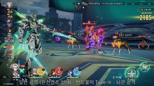 반디의 필살기를 사용하면 완전연소 상태로 전환하여 일반 공격, 전투 스킬이 강화되어 각 공격 타입이 2 종류(일반 상태, 완전연소 상태 )로 나뉘어요.
