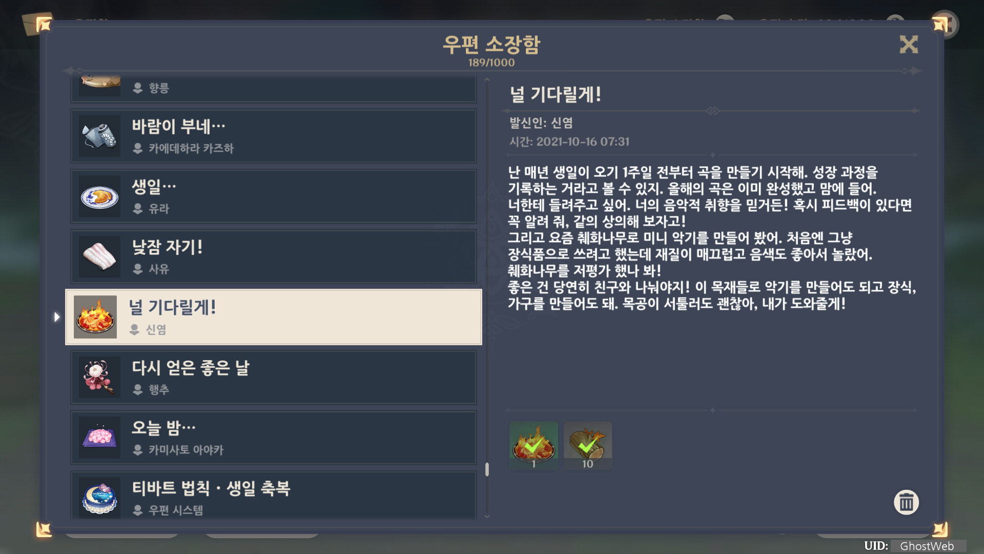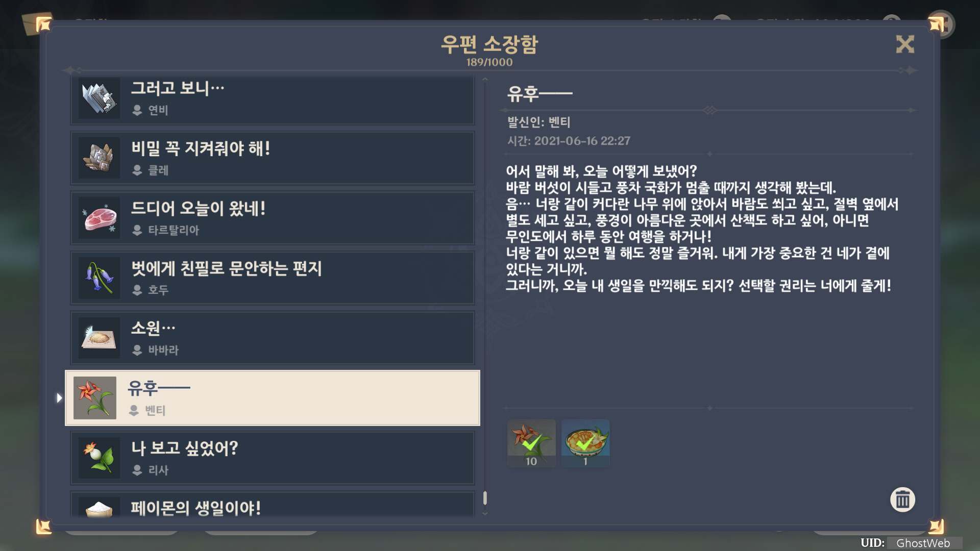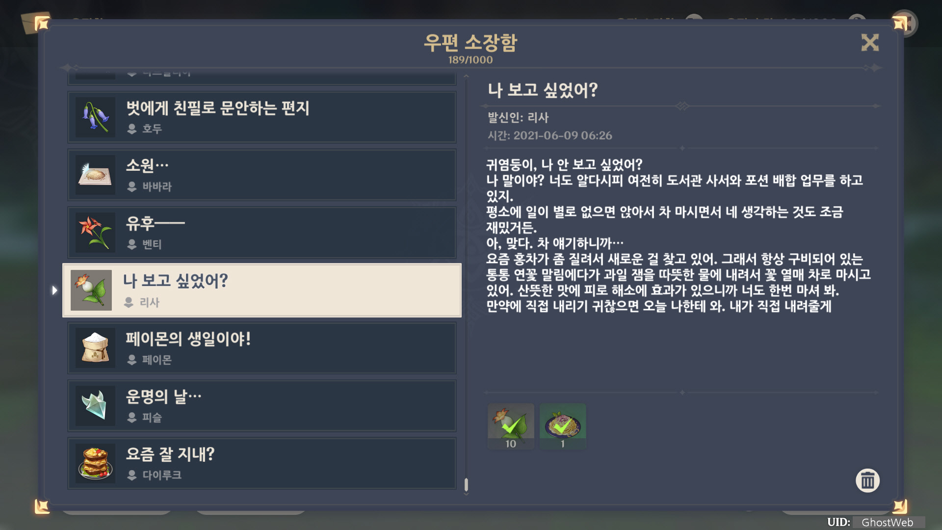 [원신] 우편 소장함 모음 / 정리 (2022년)
