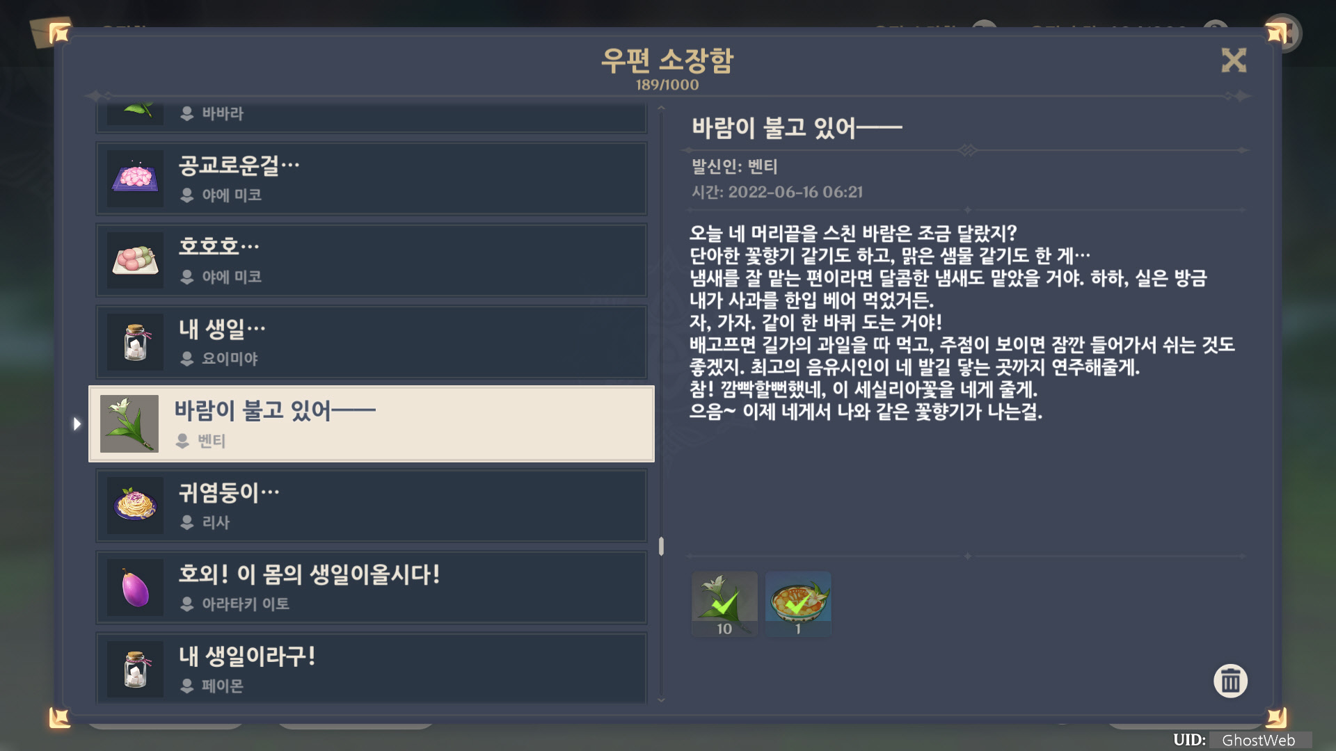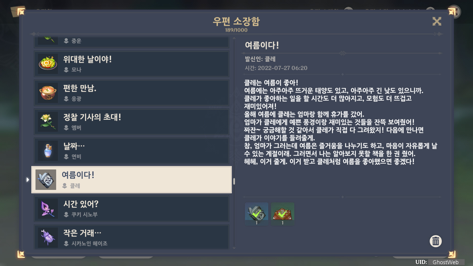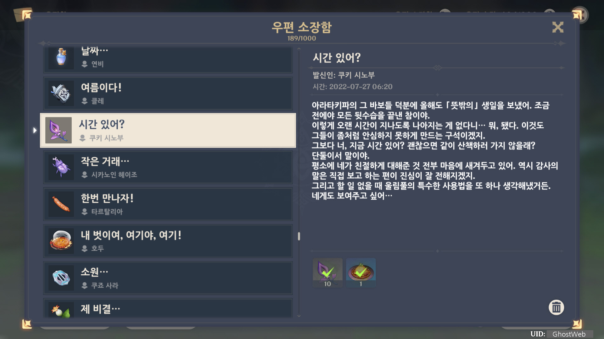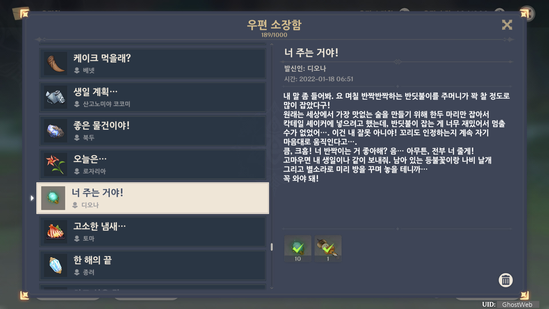 [원신] 우편 소장함 모음 / 정리 (2023년)