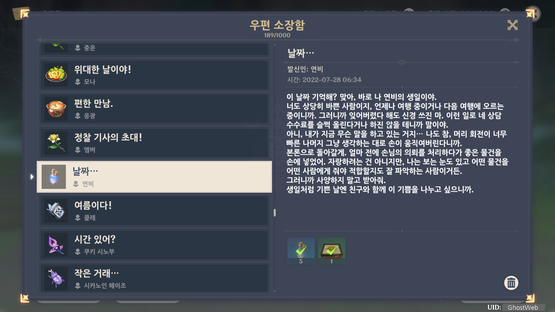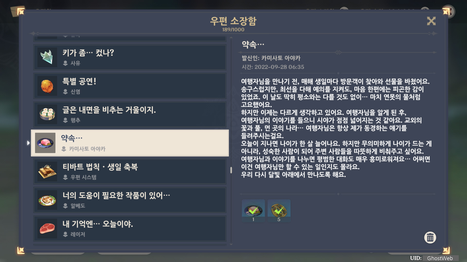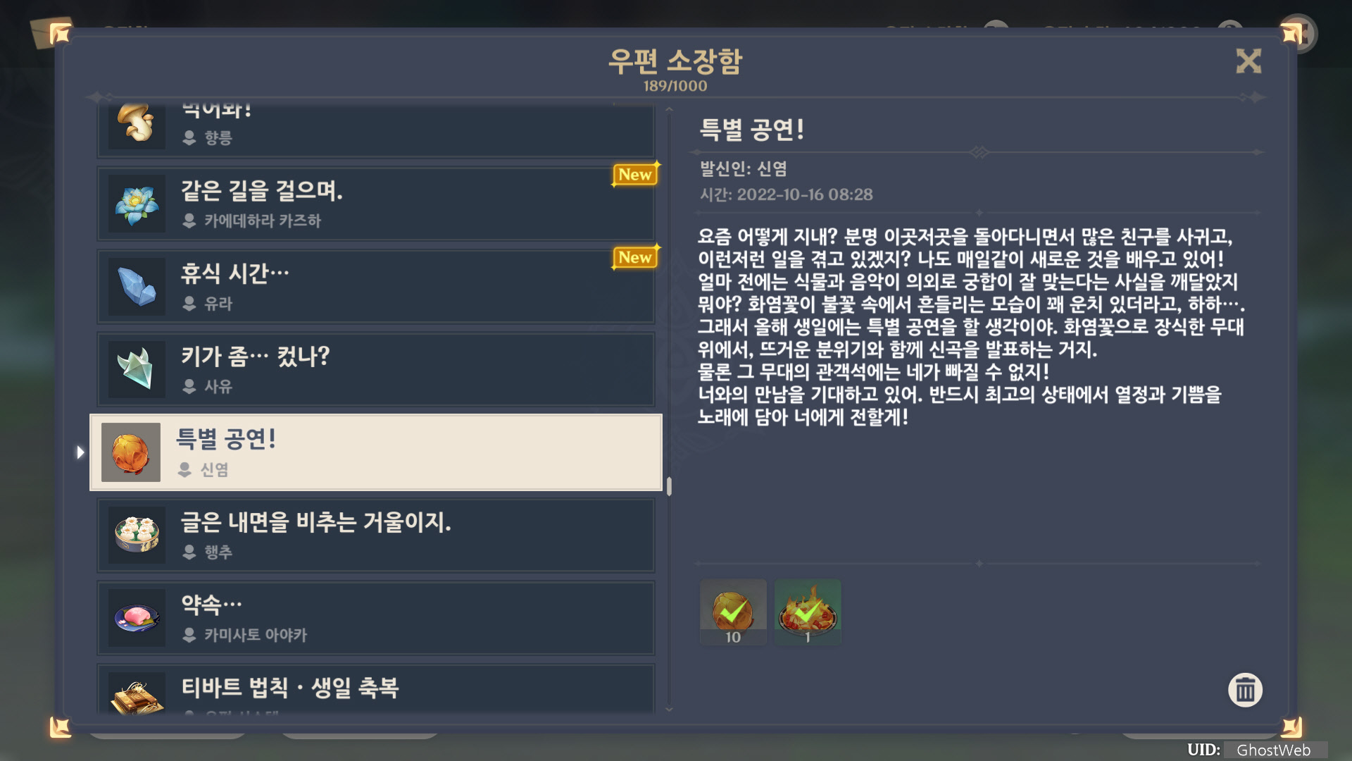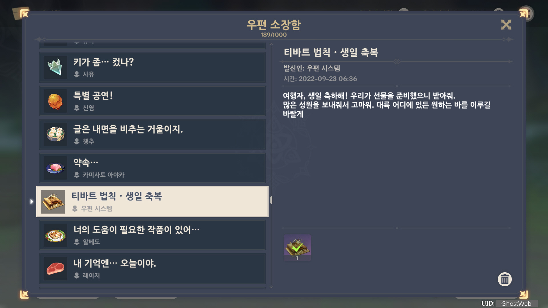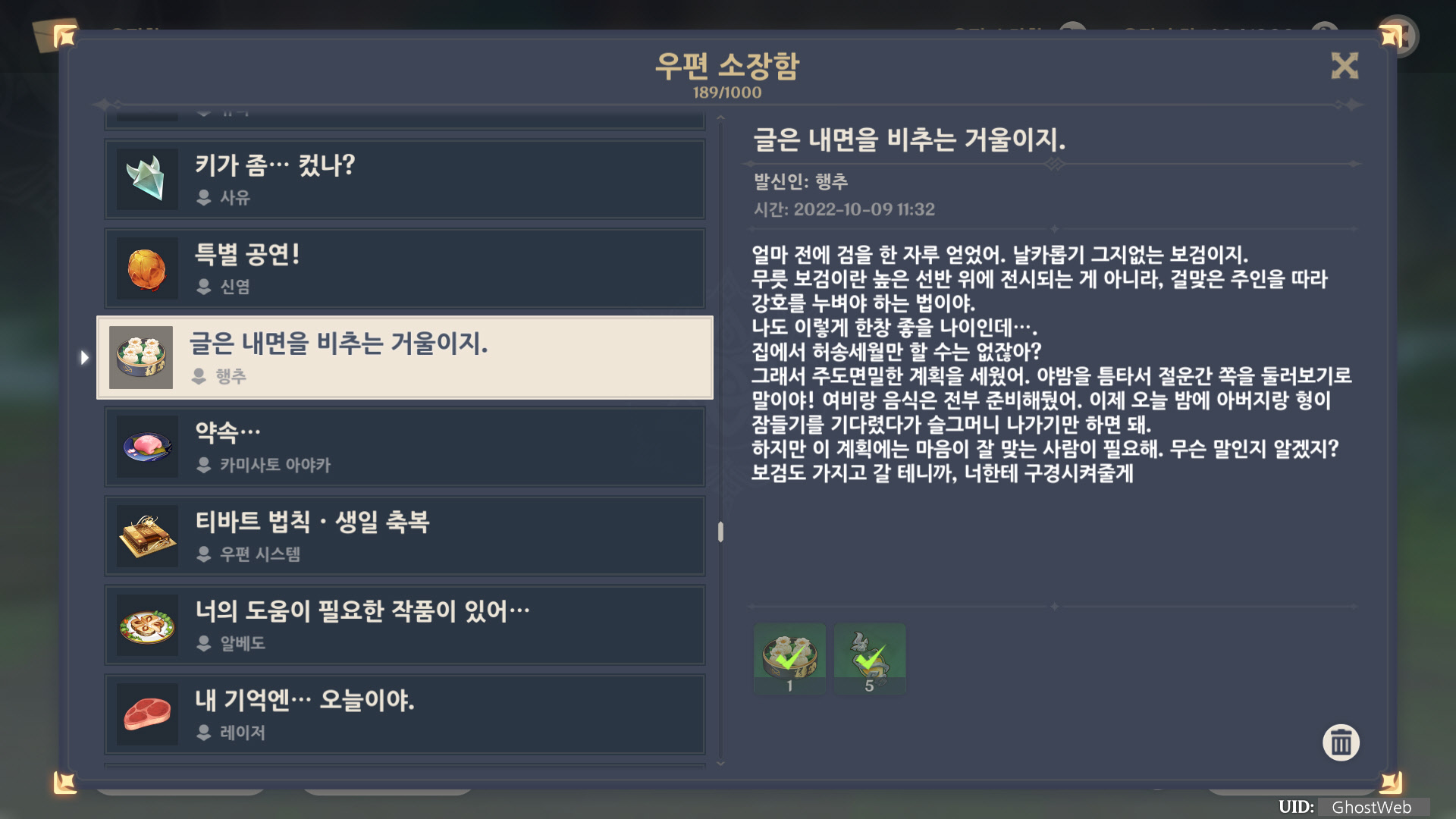 [원신] 우편 소장함 모음 / 정리 (2023년)