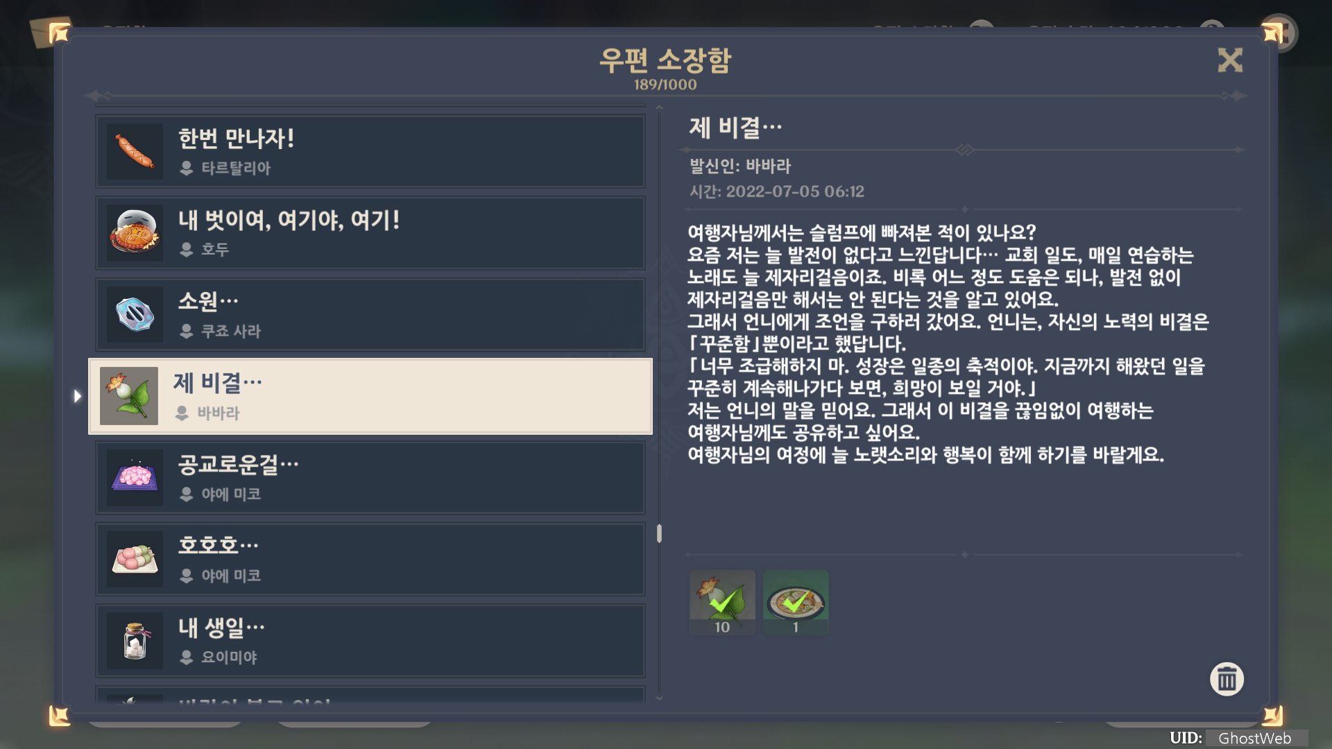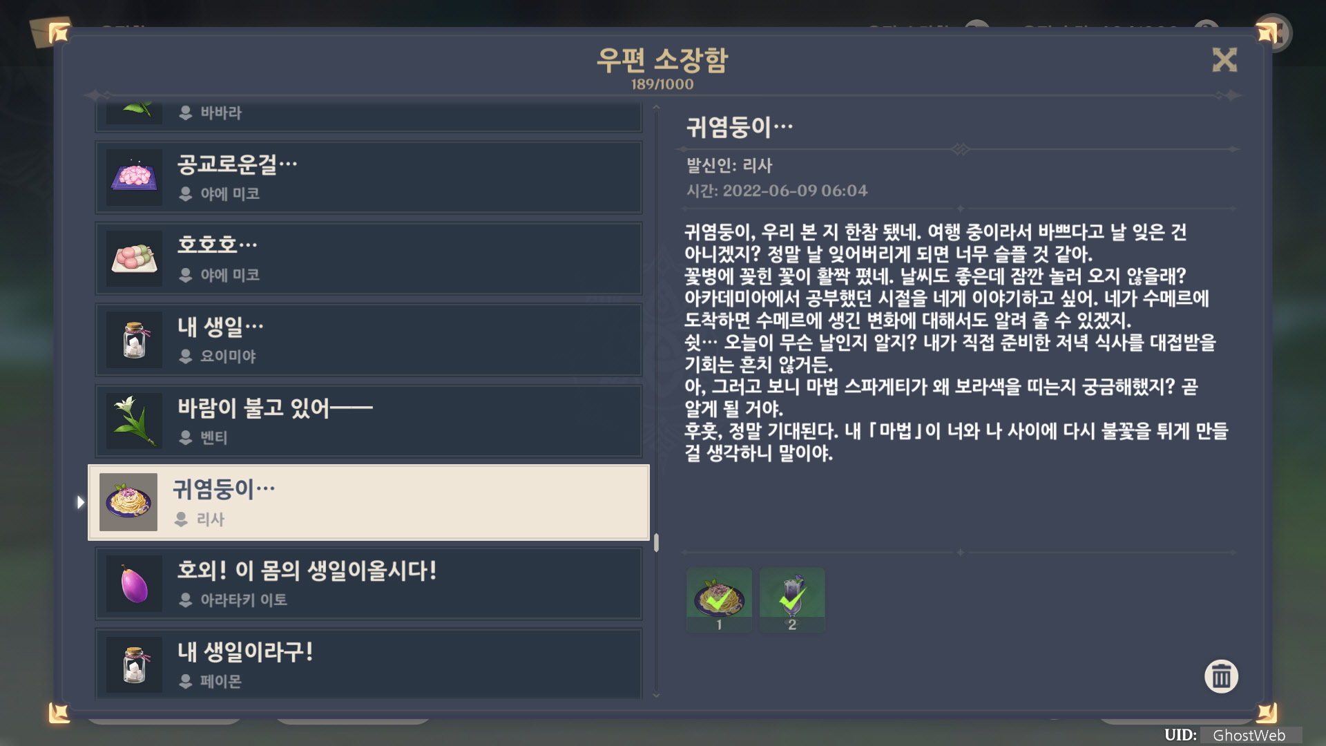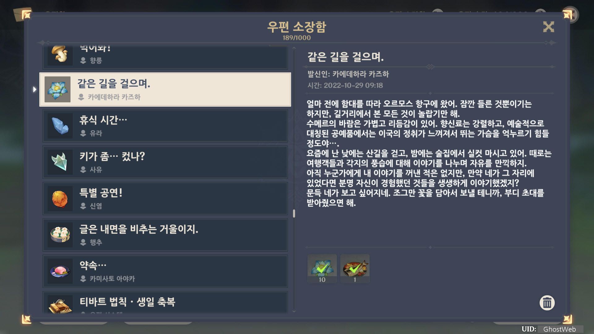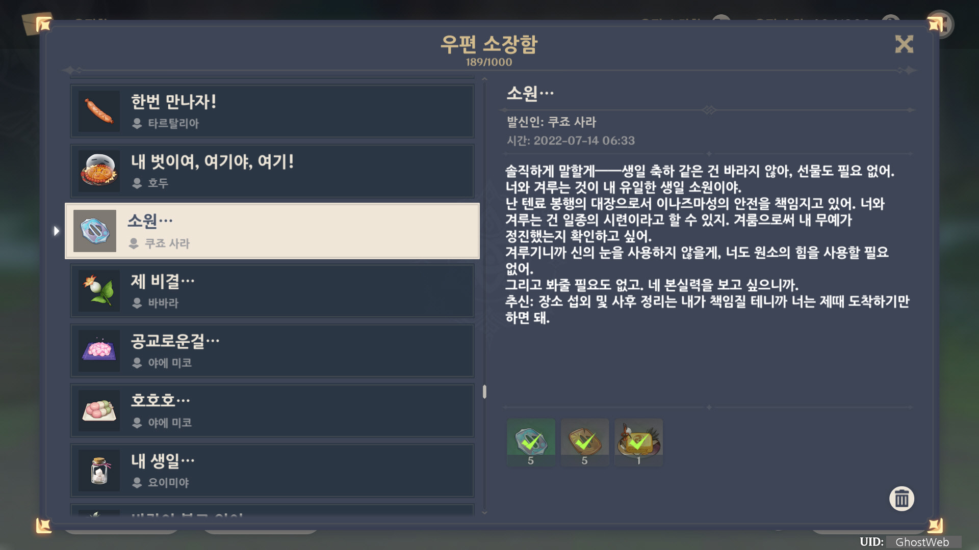 [원신] 우편 소장함 모음 / 정리 (2023년)