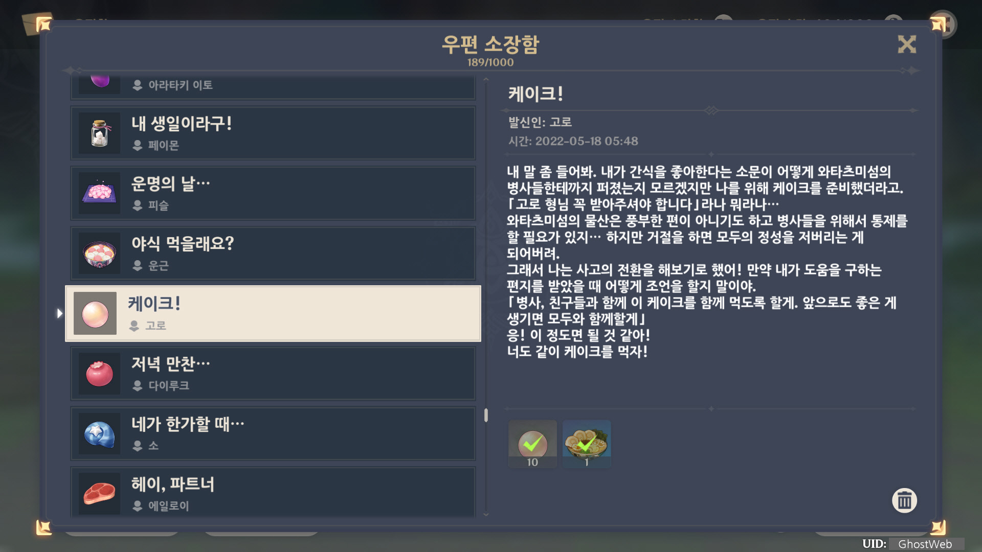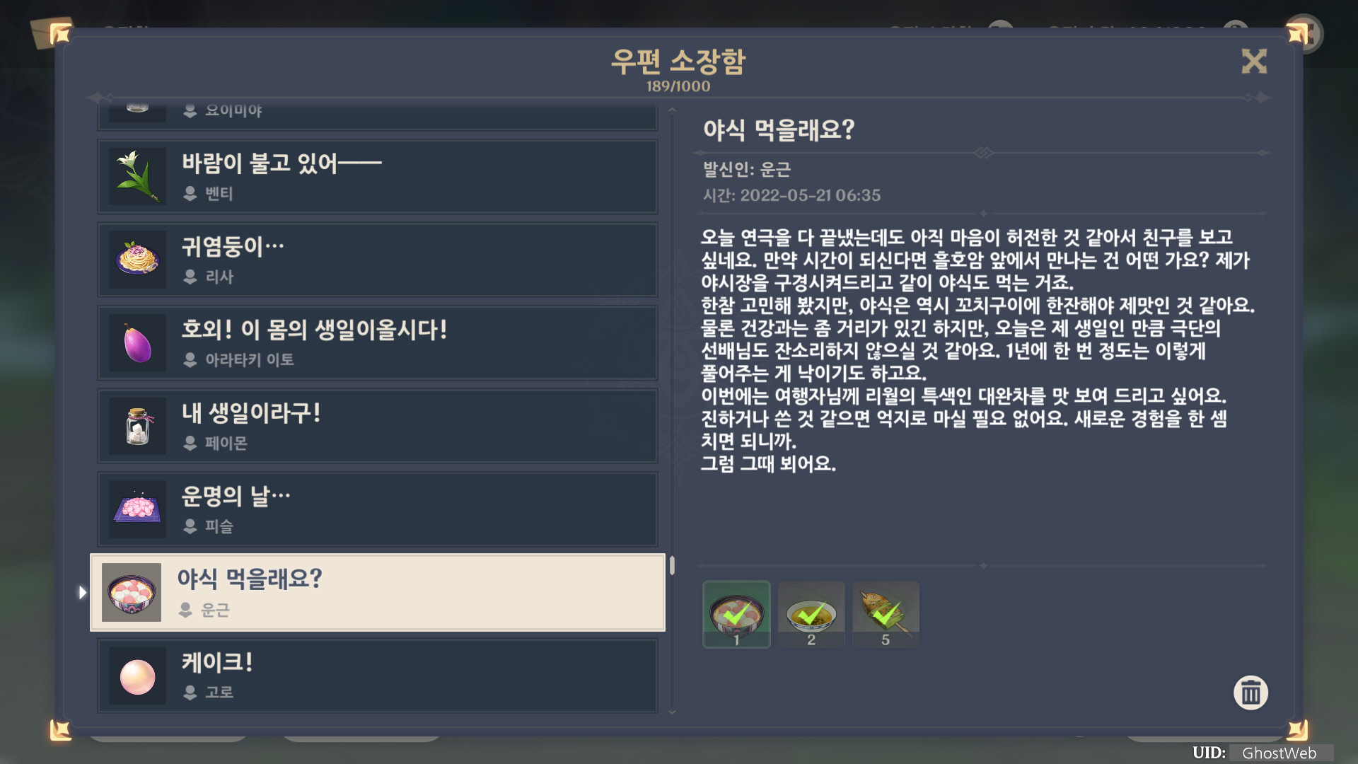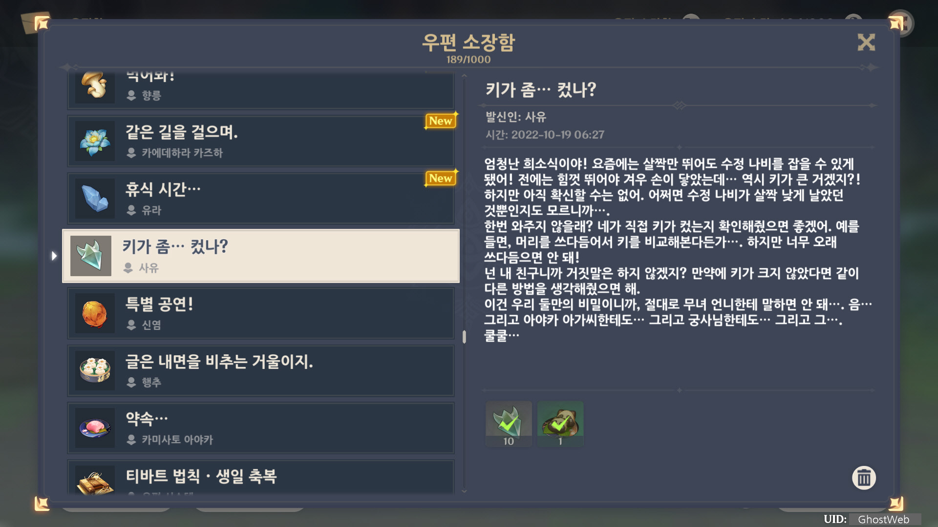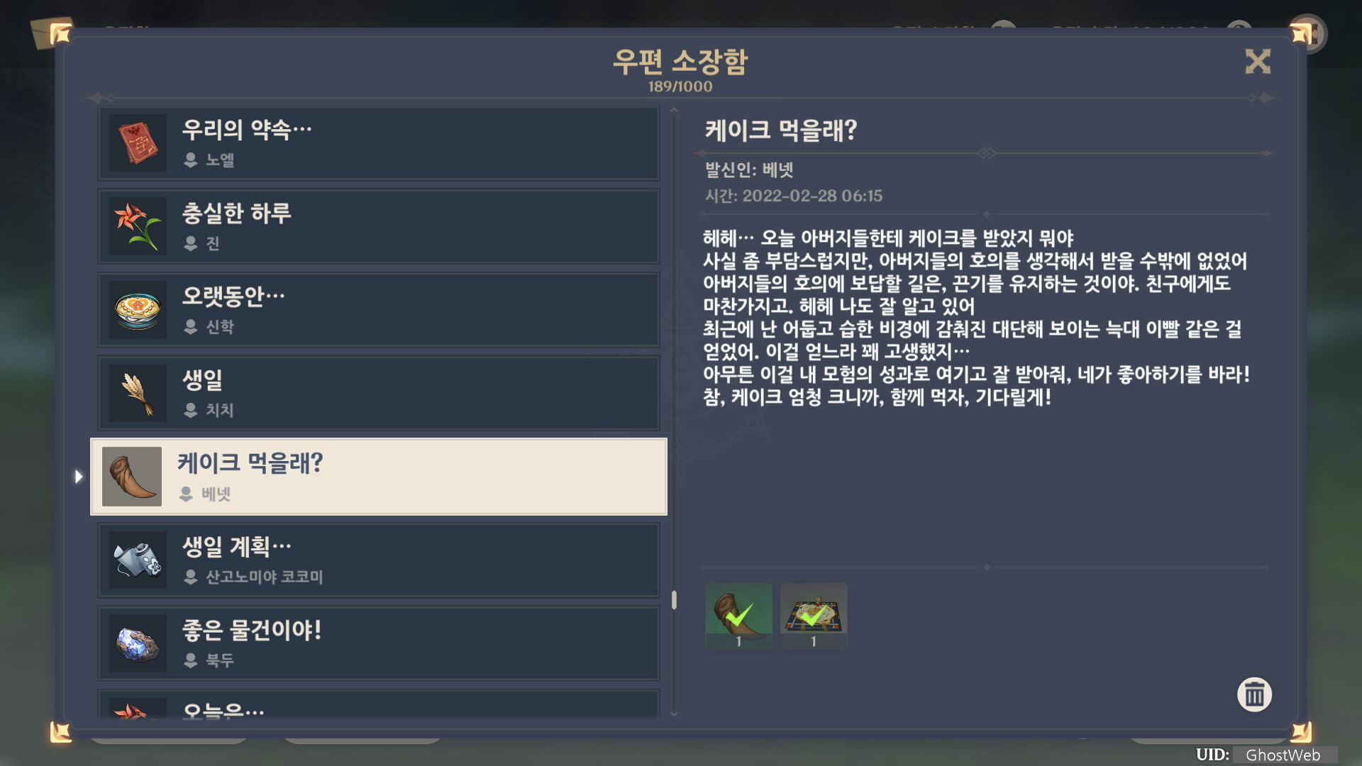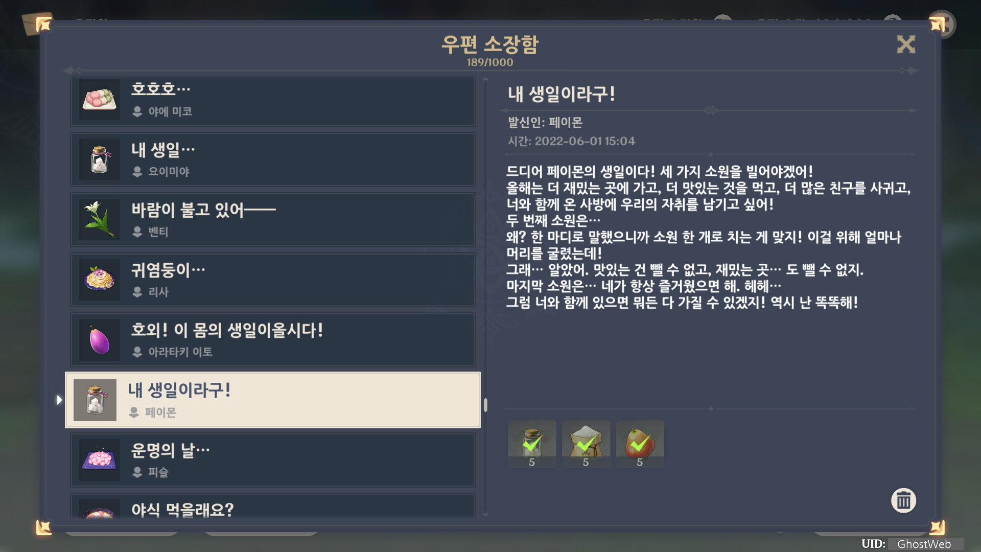 [원신] 우편 소장함 모음 / 정리 (2023년)
