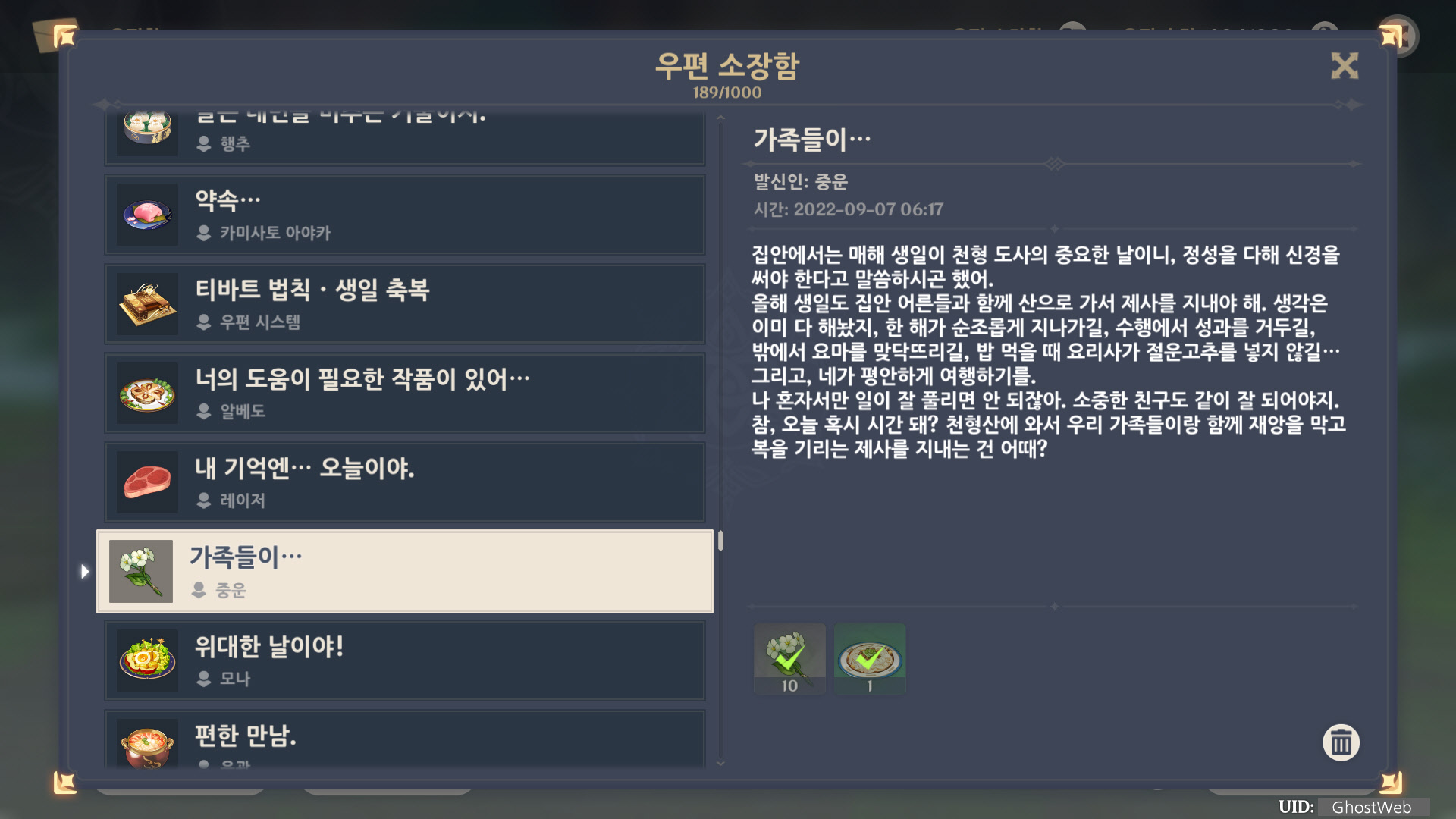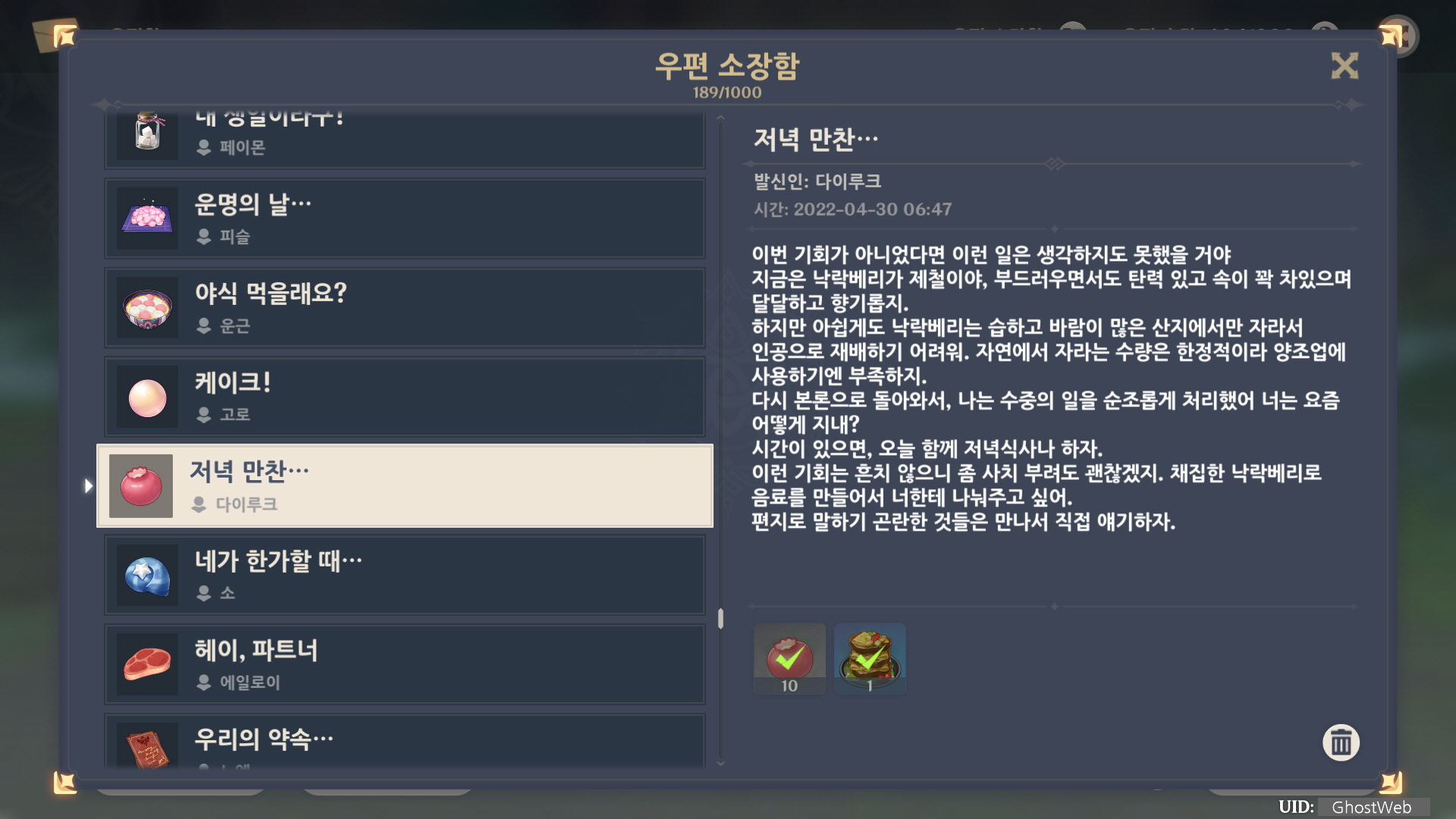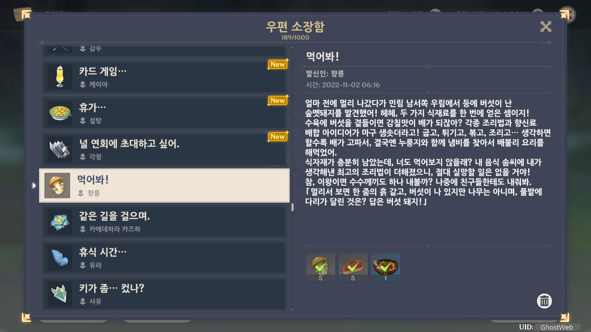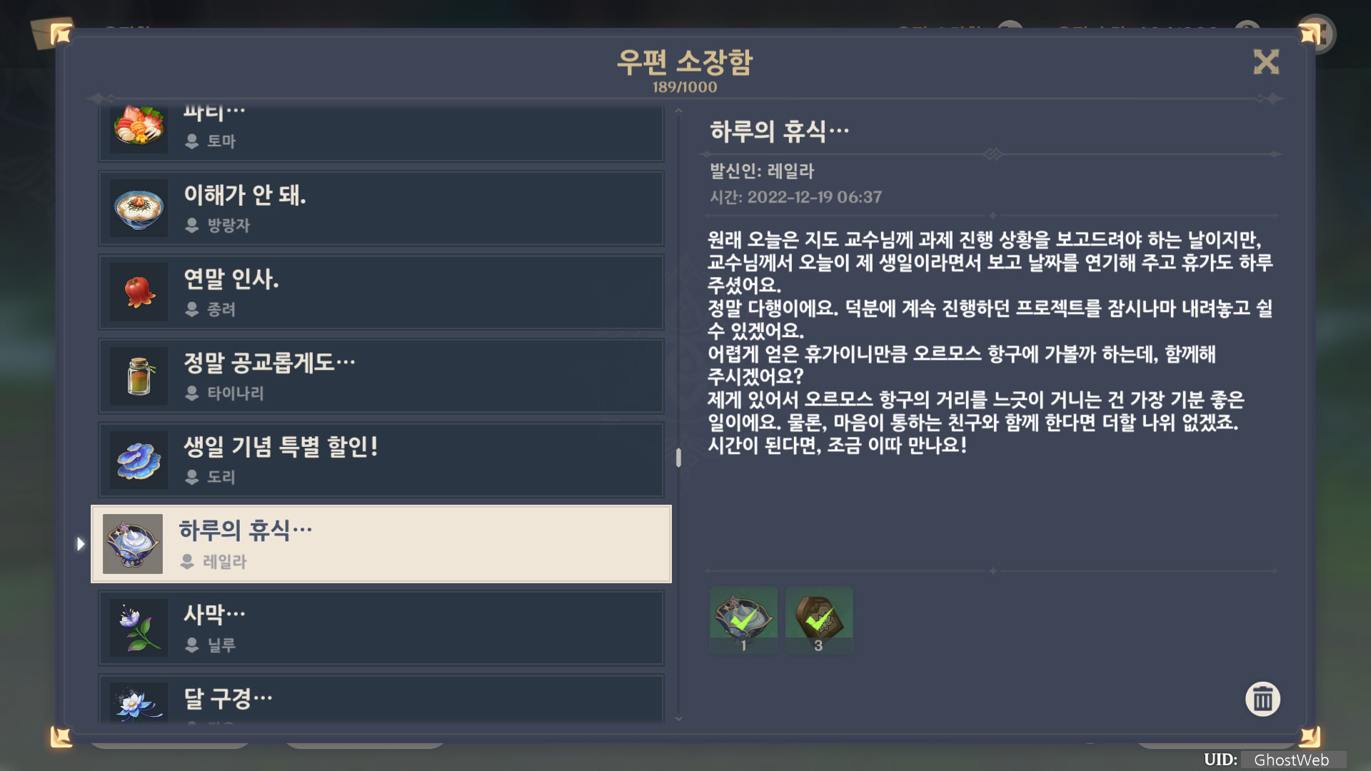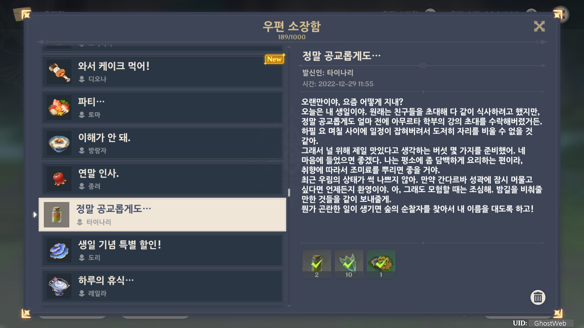 | [원신] 우편 소장함 모음 / 정리 (2023년) (0) | 2024.06.22 |