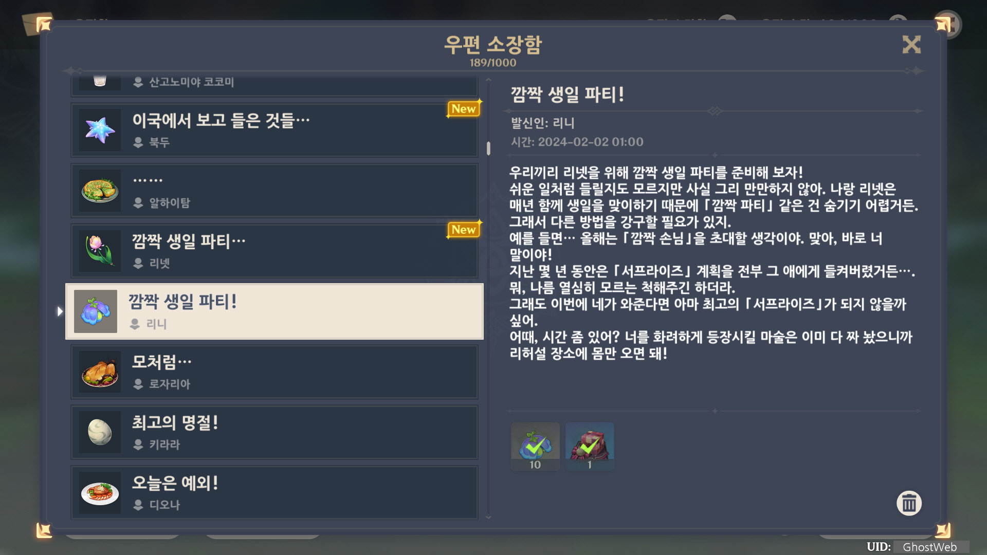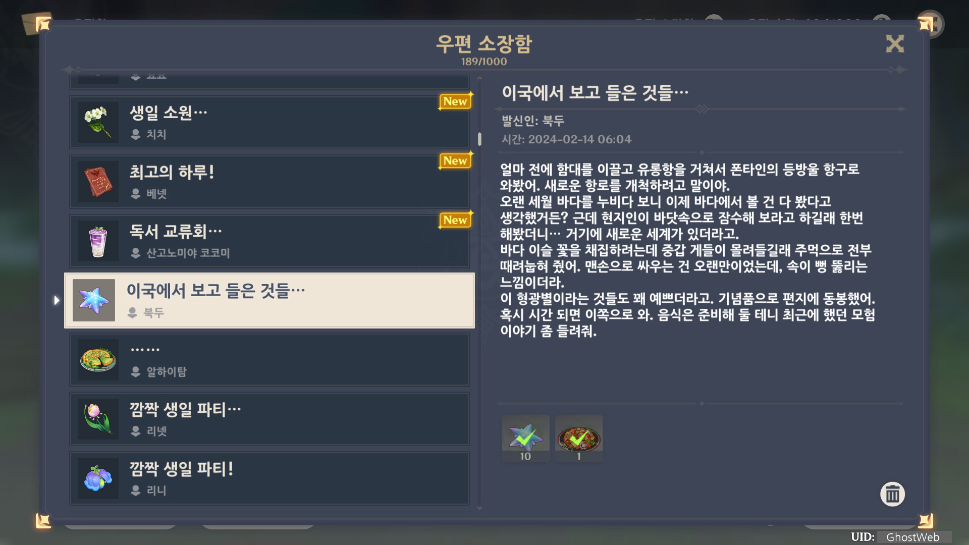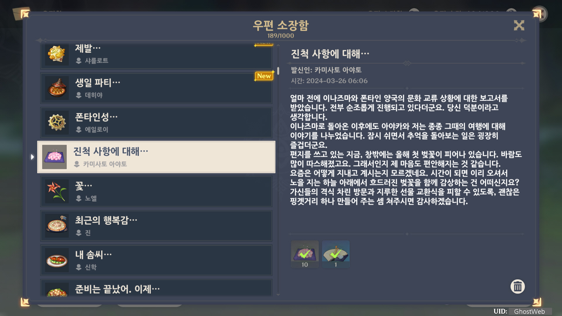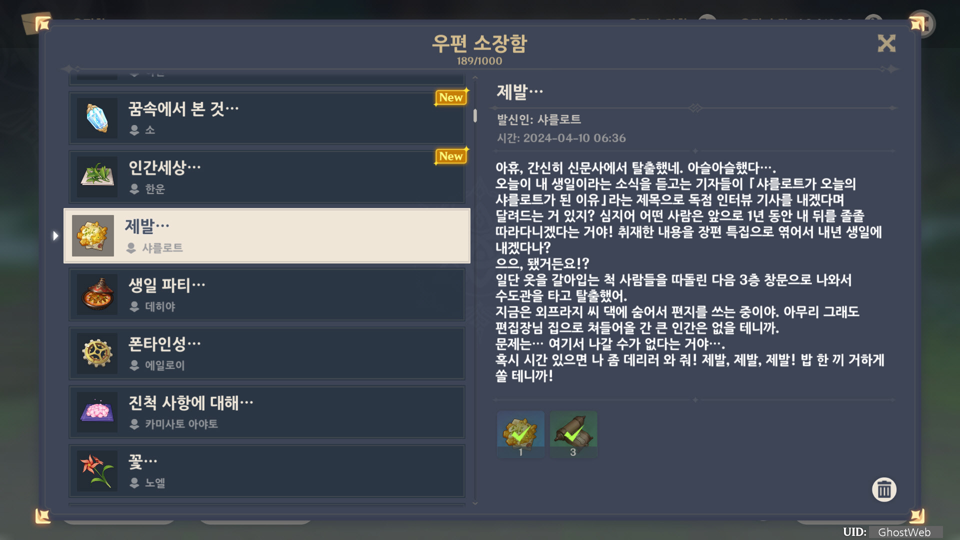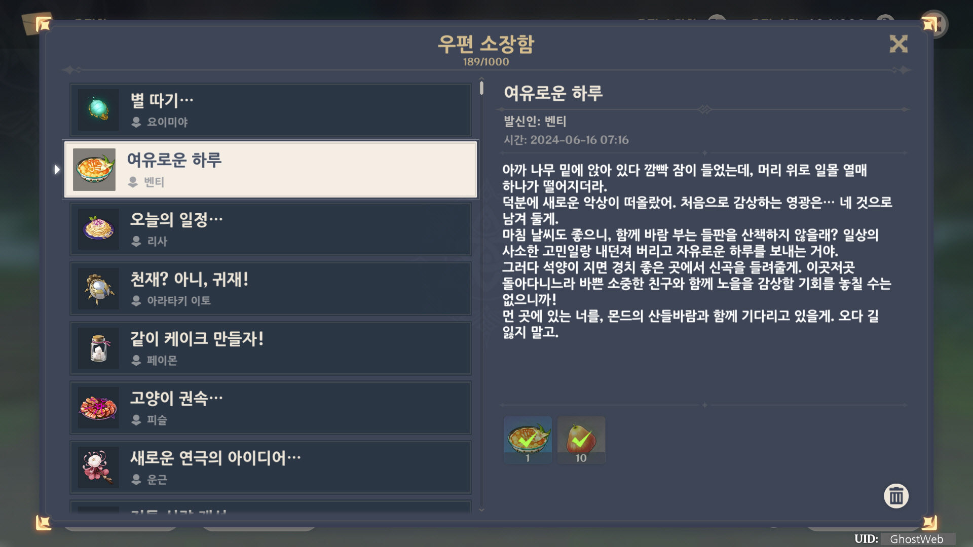 [원신] 우편 소장함 모음 / 정리 (2023년)