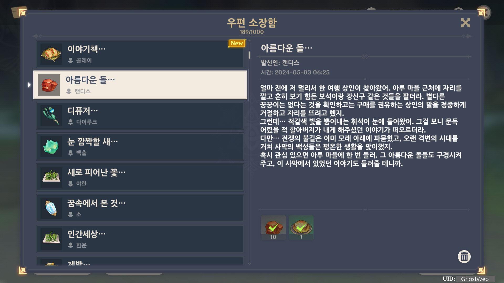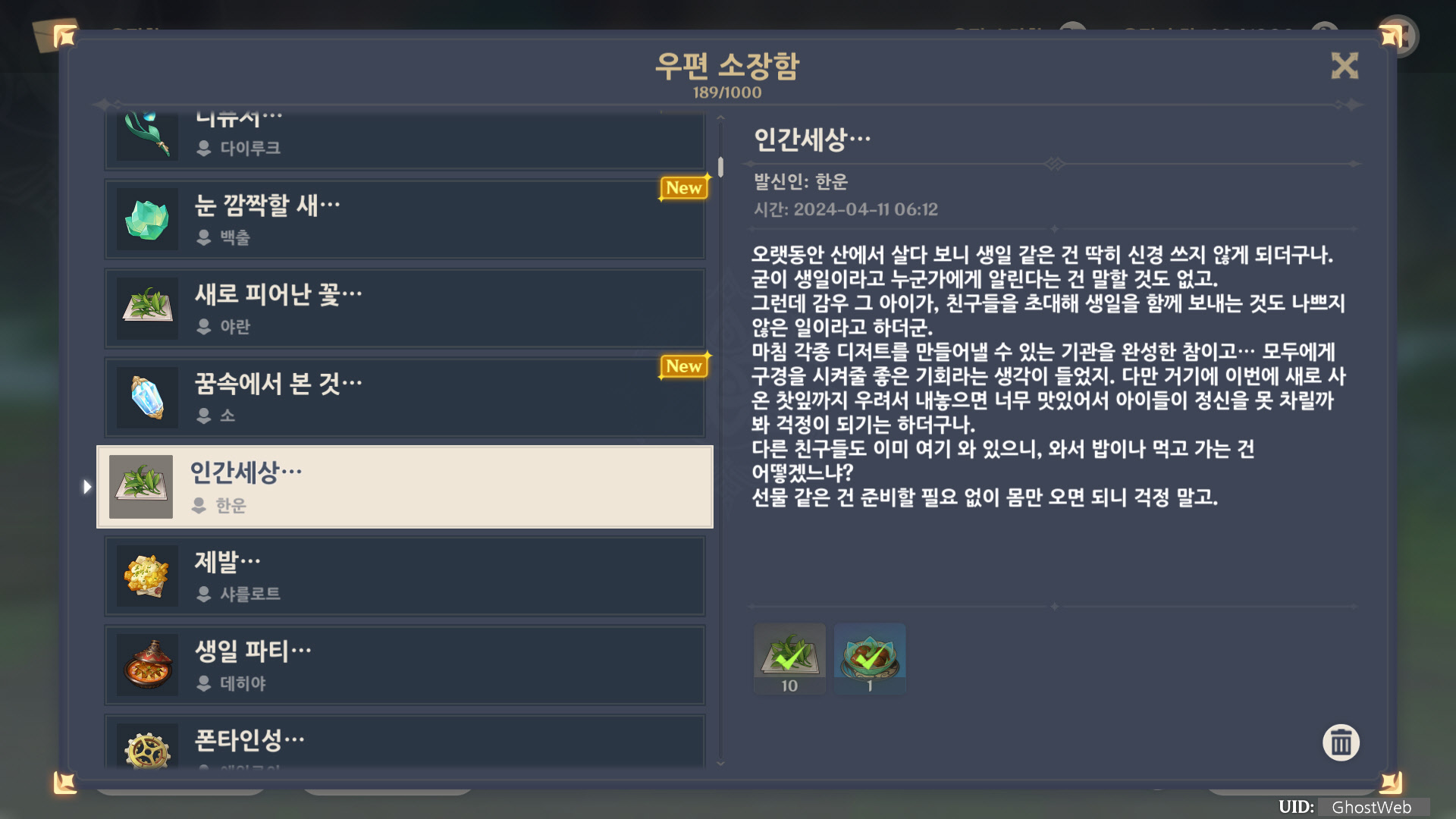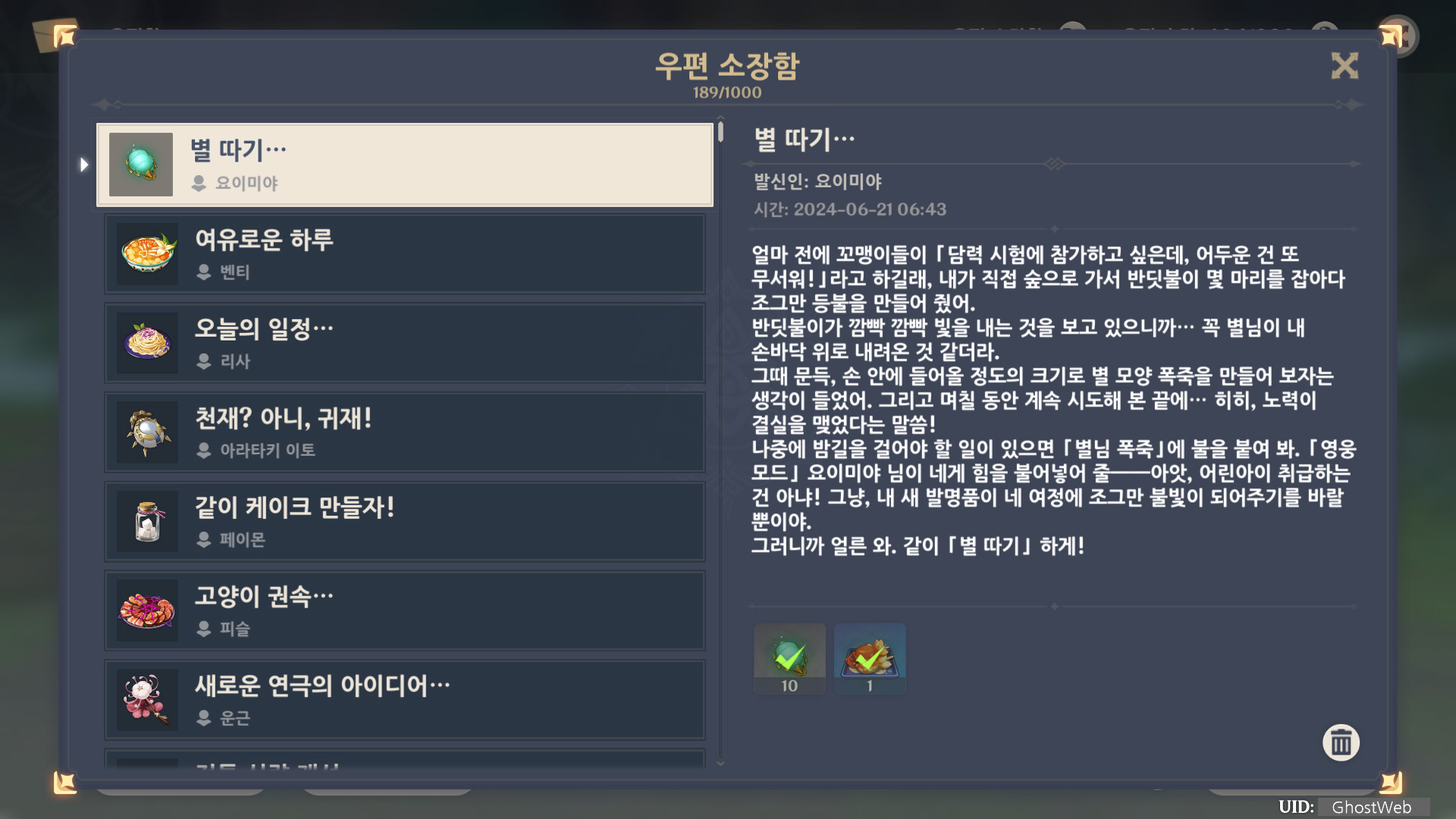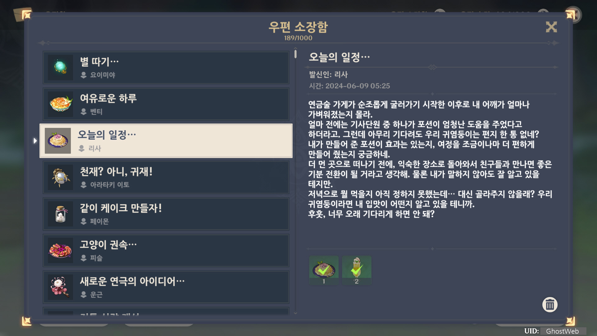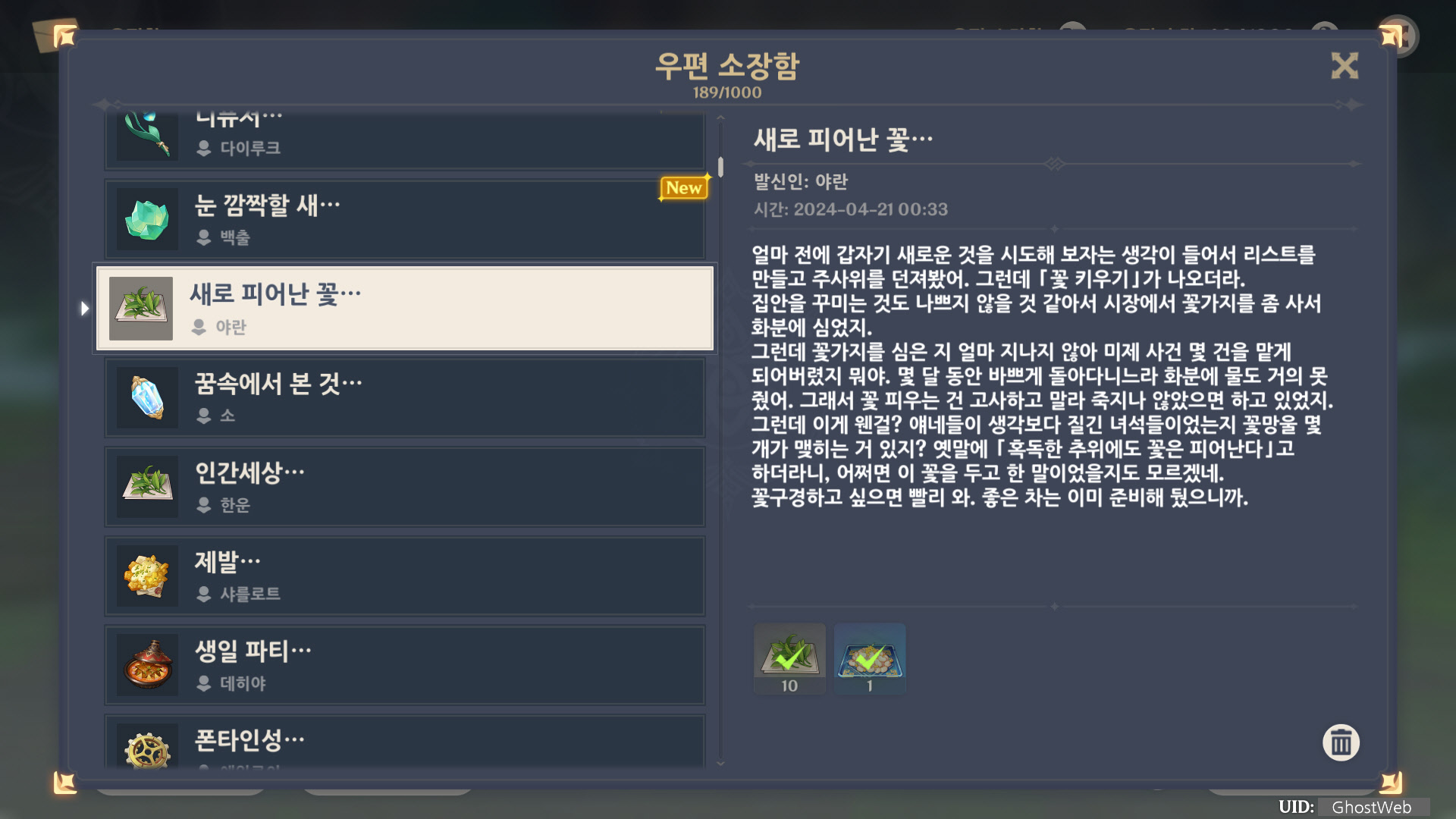 [원신] 우편 소장함 모음 / 정리 (2023년)