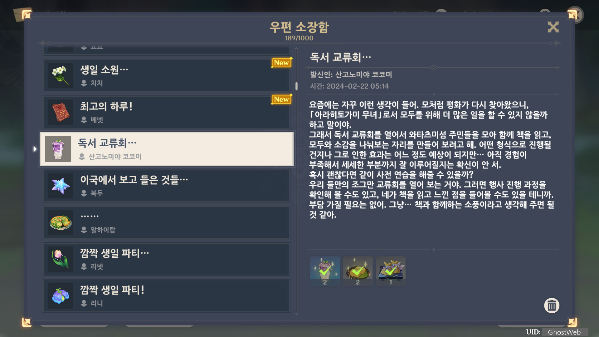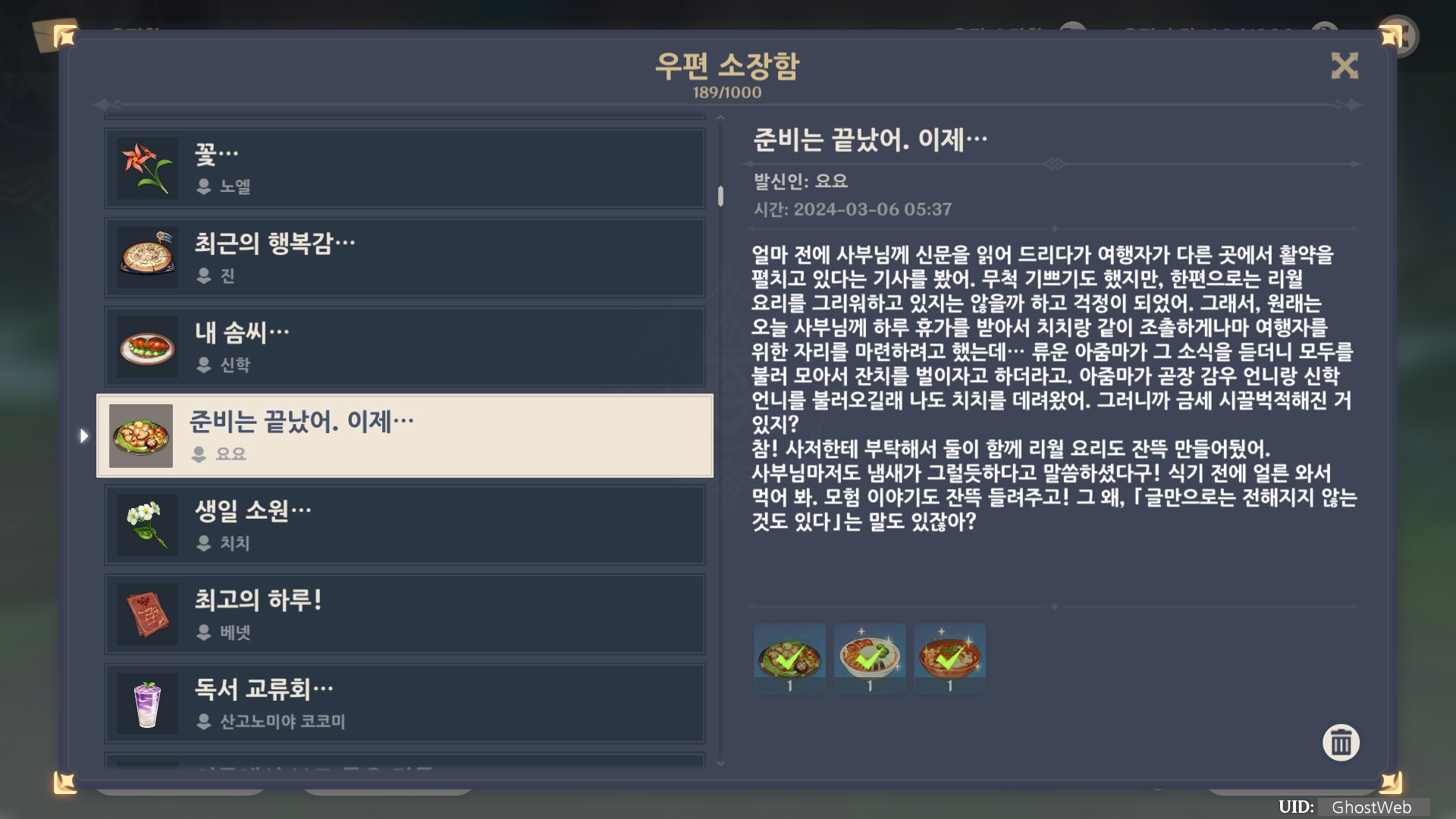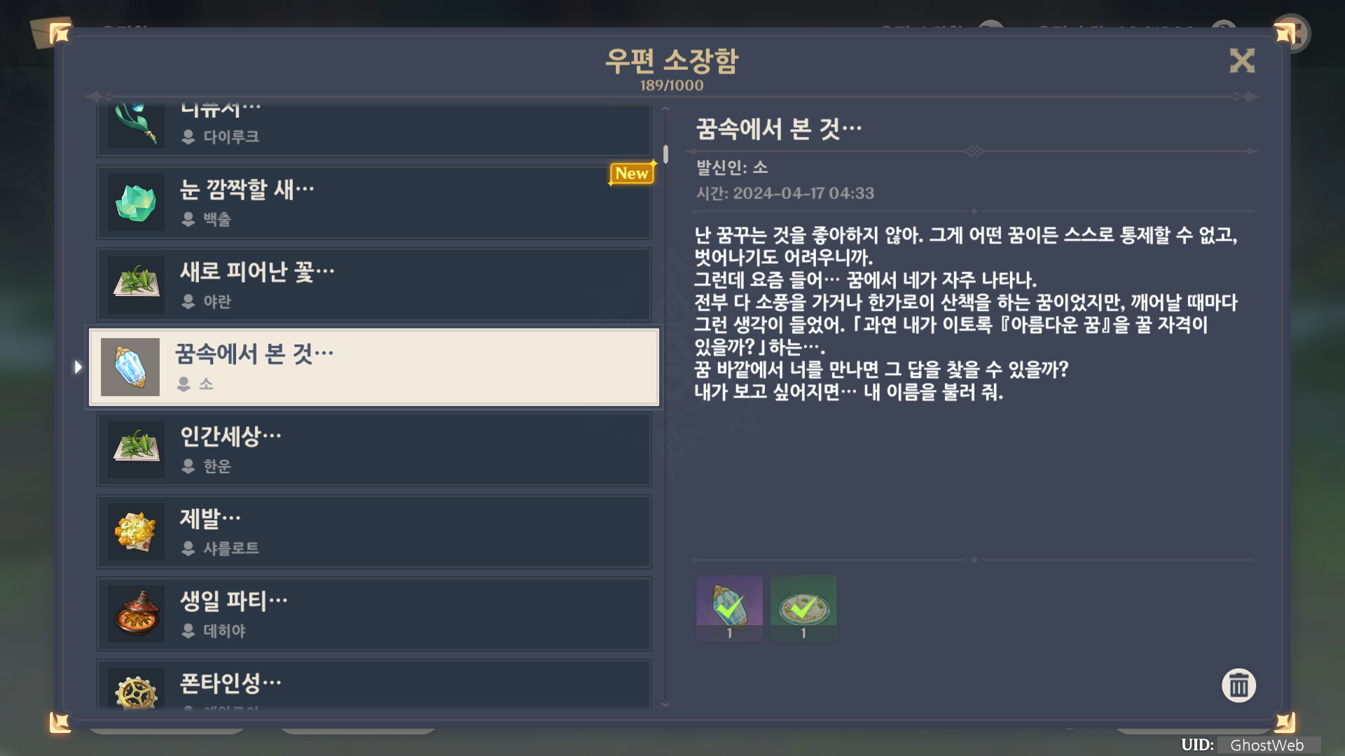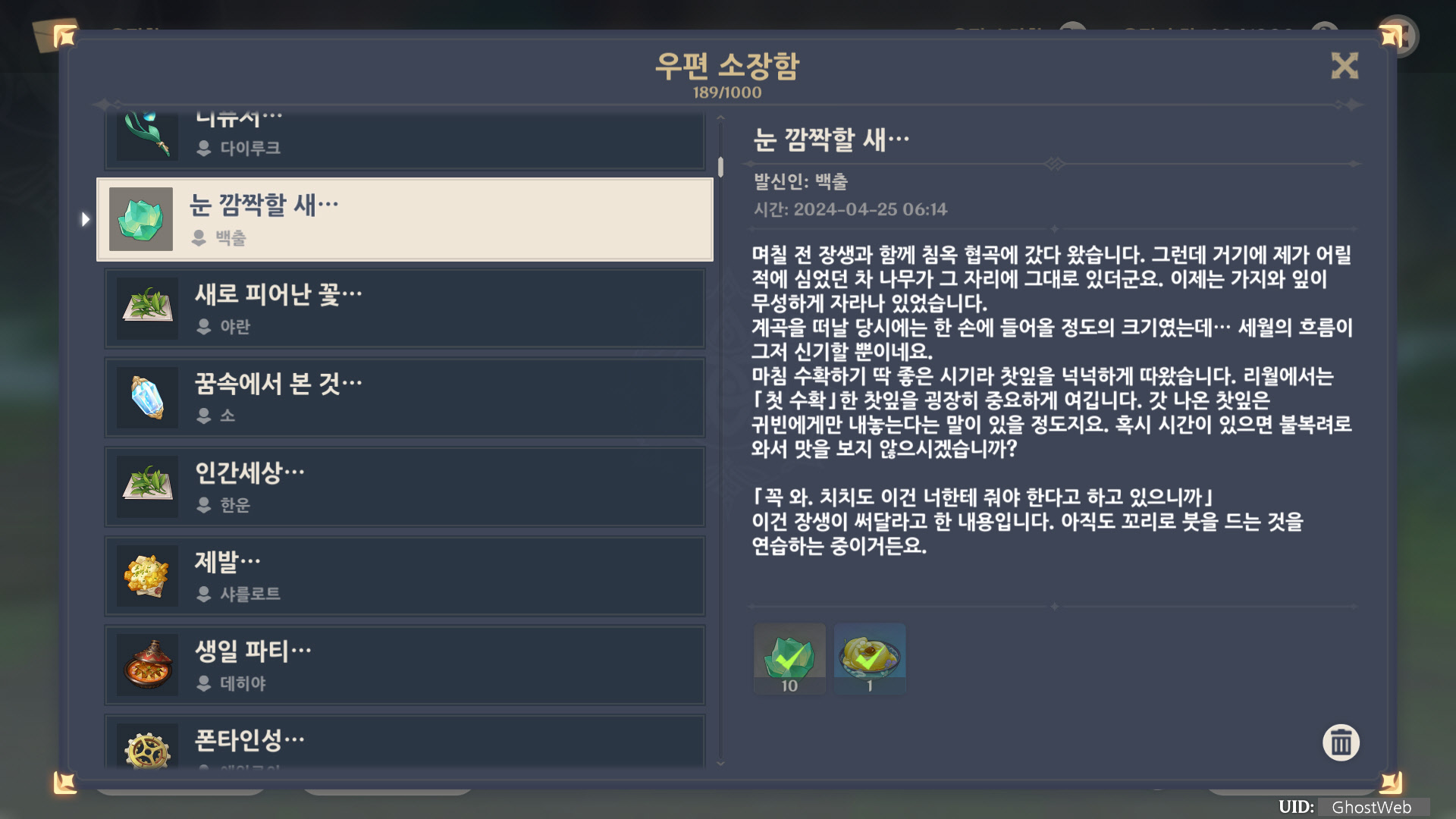 [원신] 우편 소장함 모음 / 정리 (2023년)