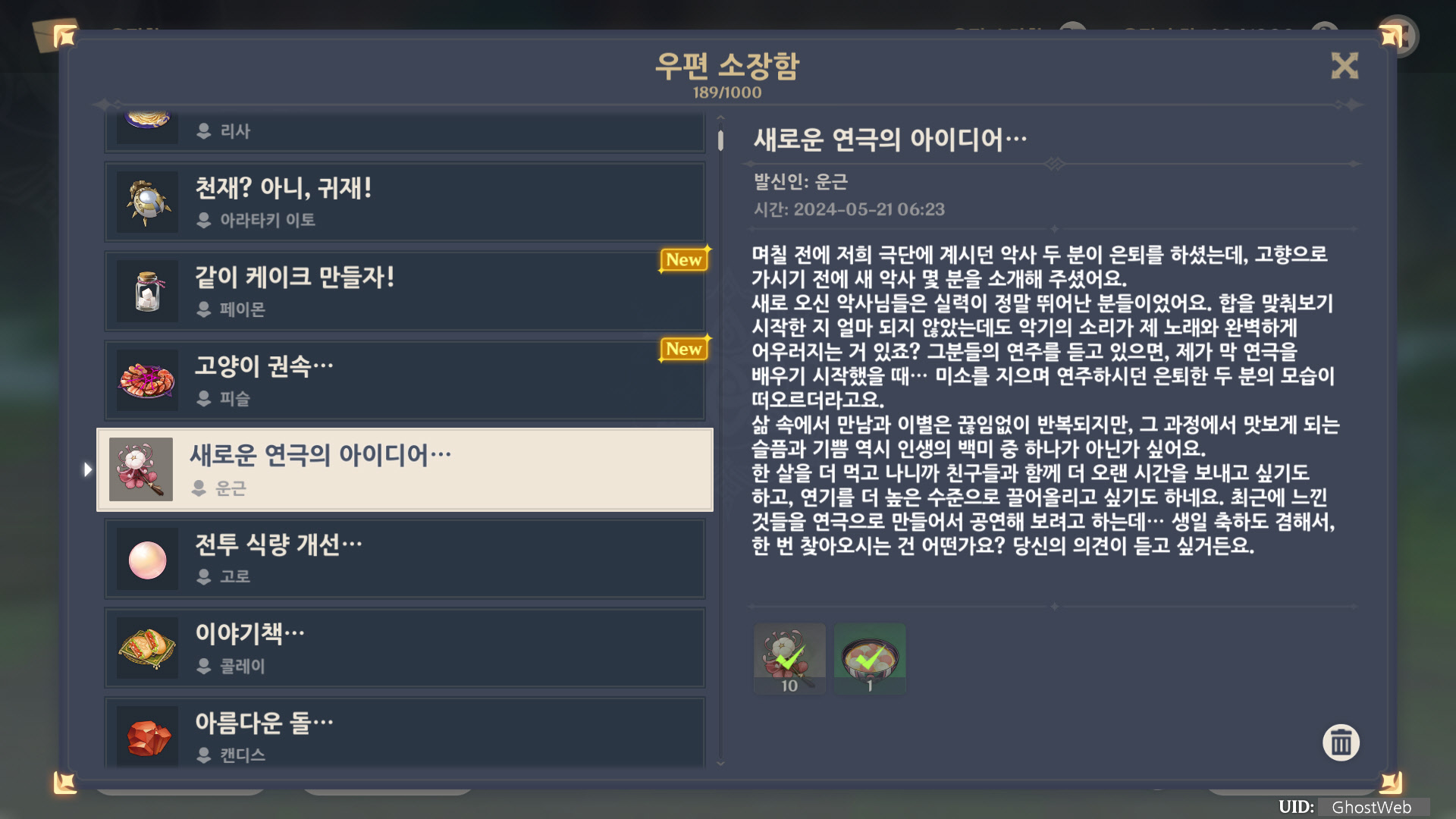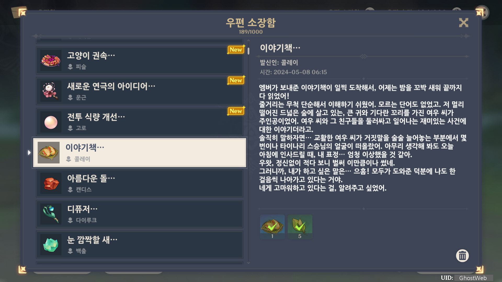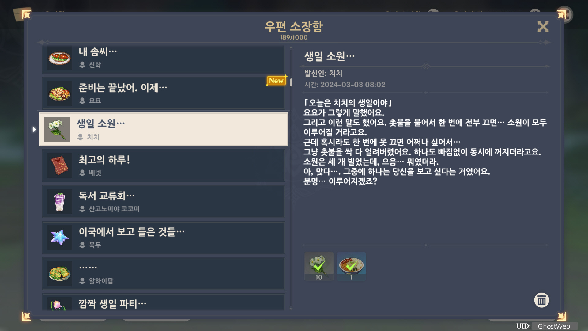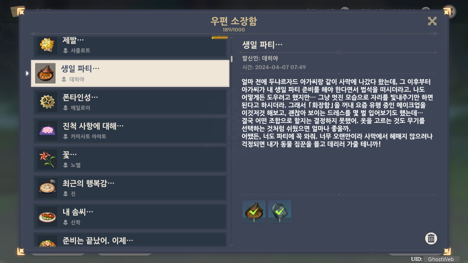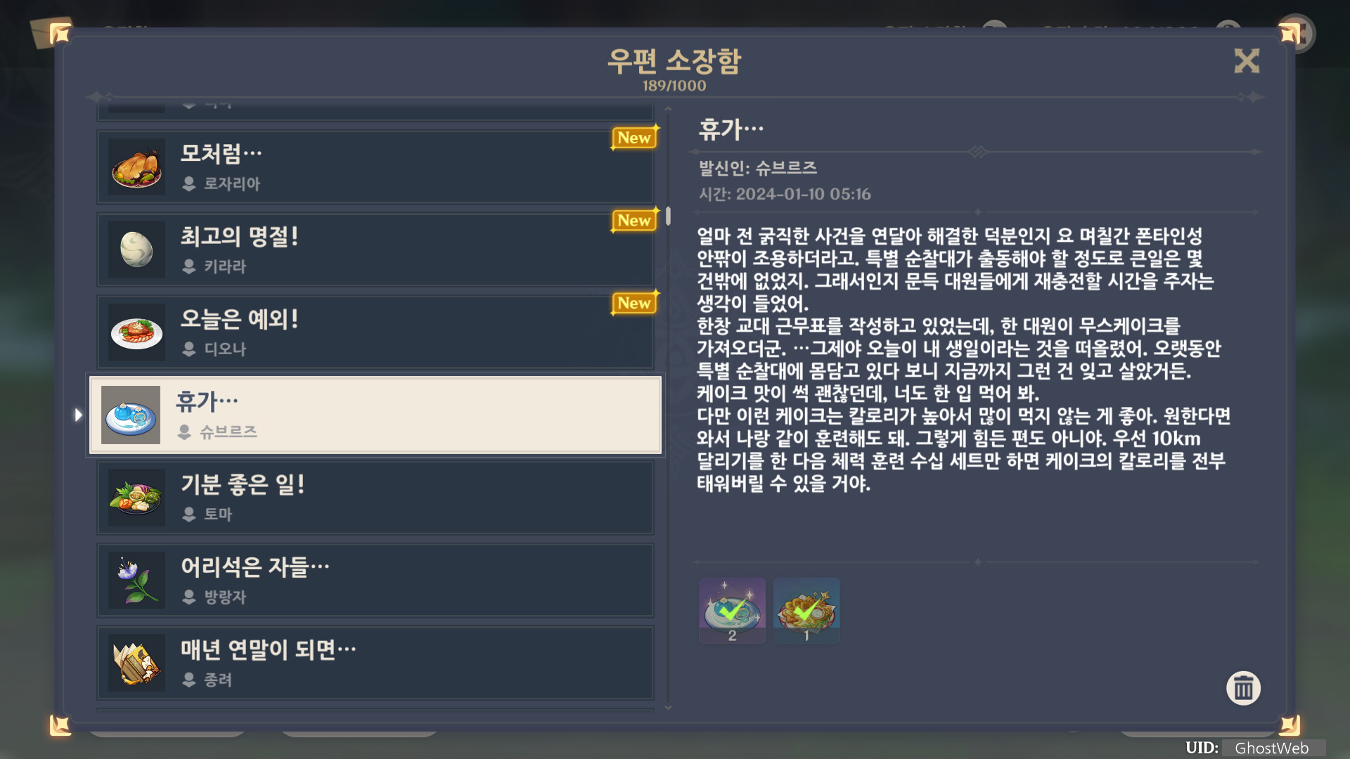 [원신] 우편 소장함 모음 / 정리 (2023년)