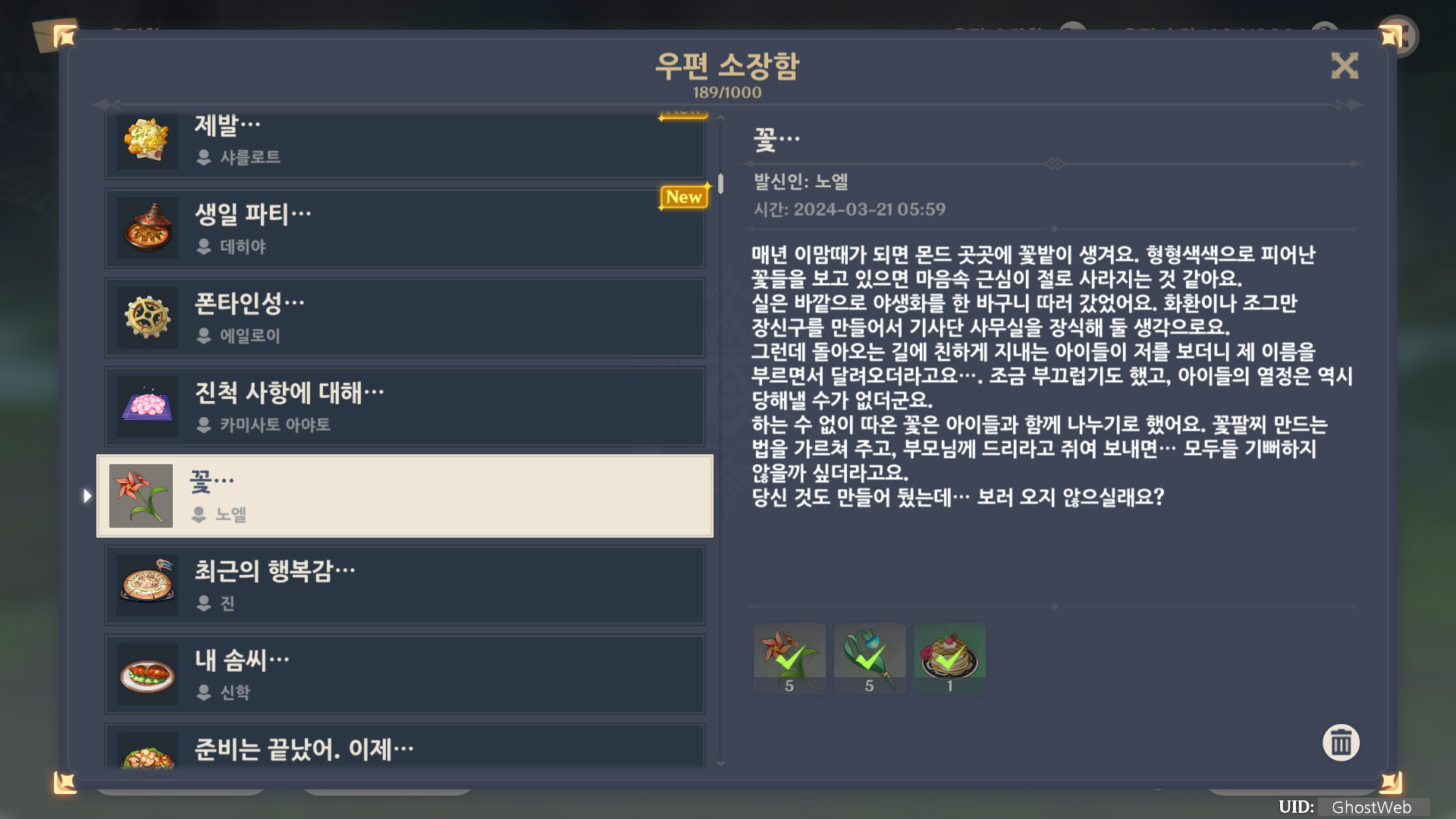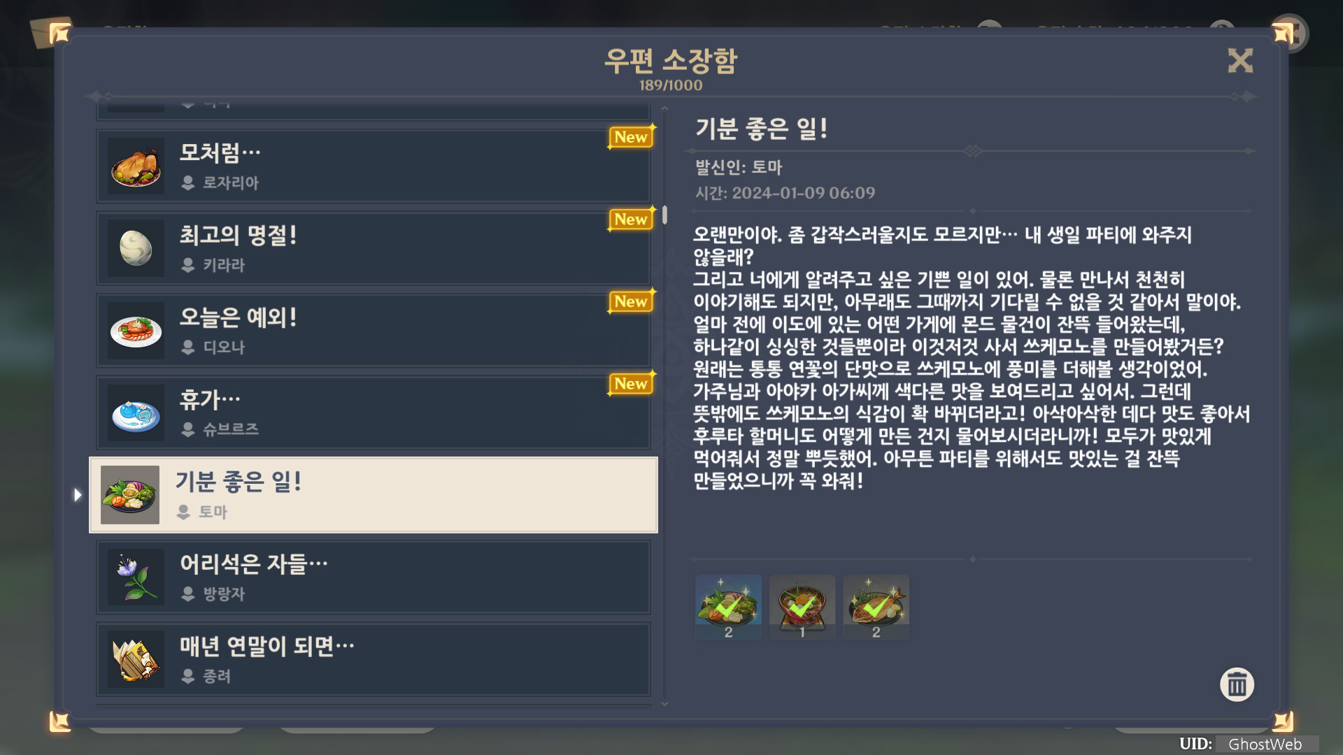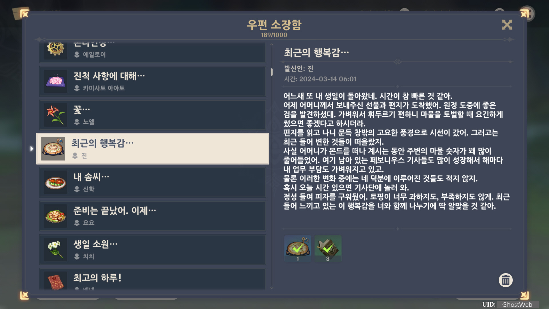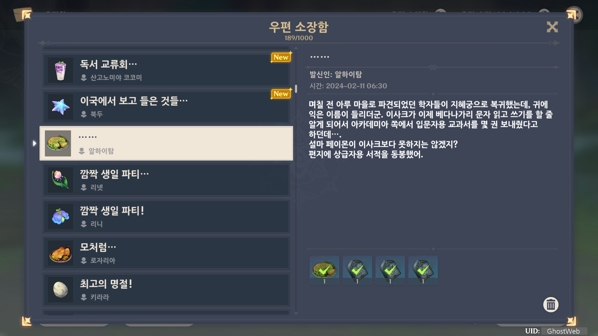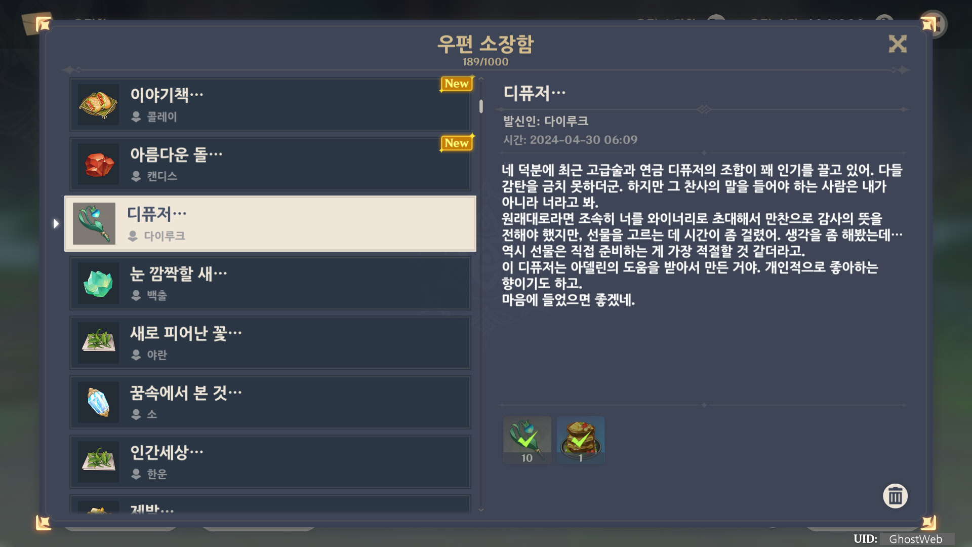 [원신] 우편 소장함 모음 / 정리 (2023년)