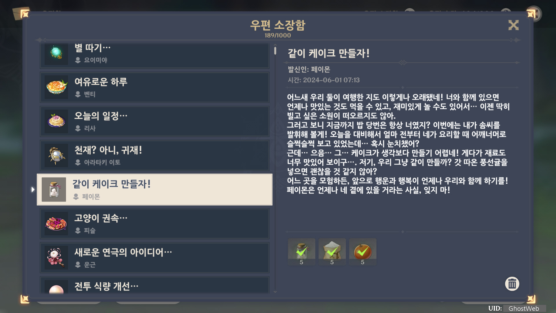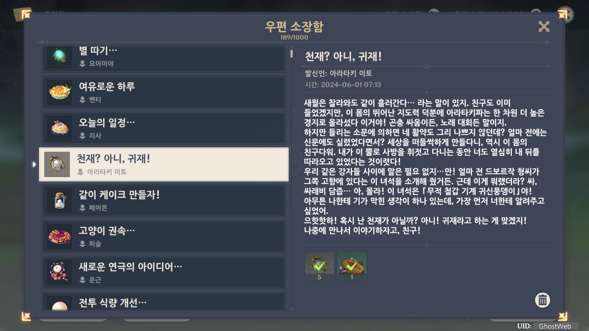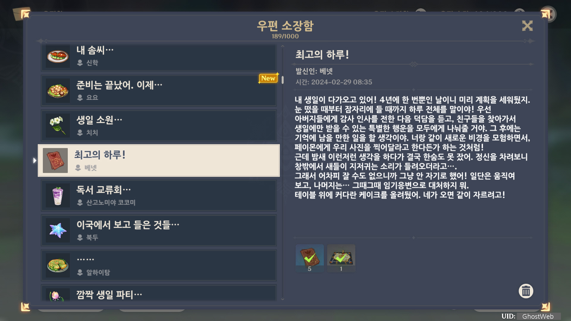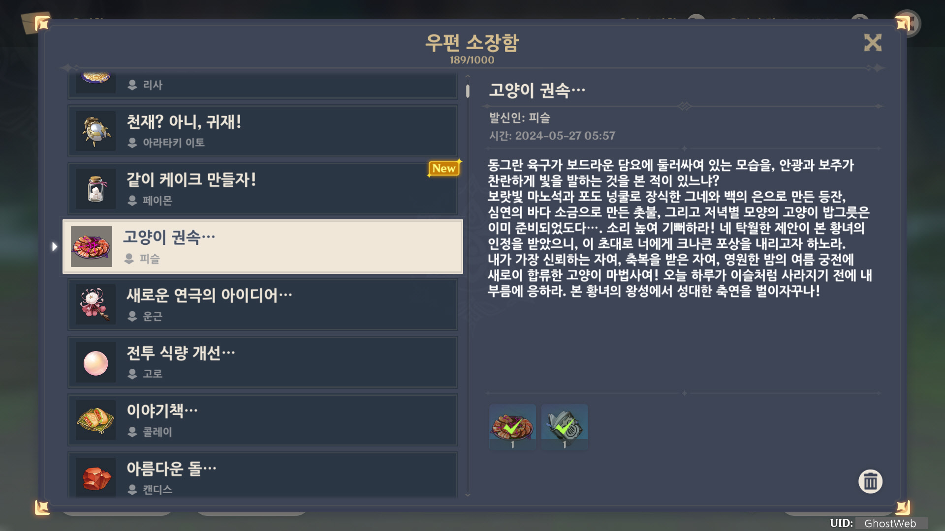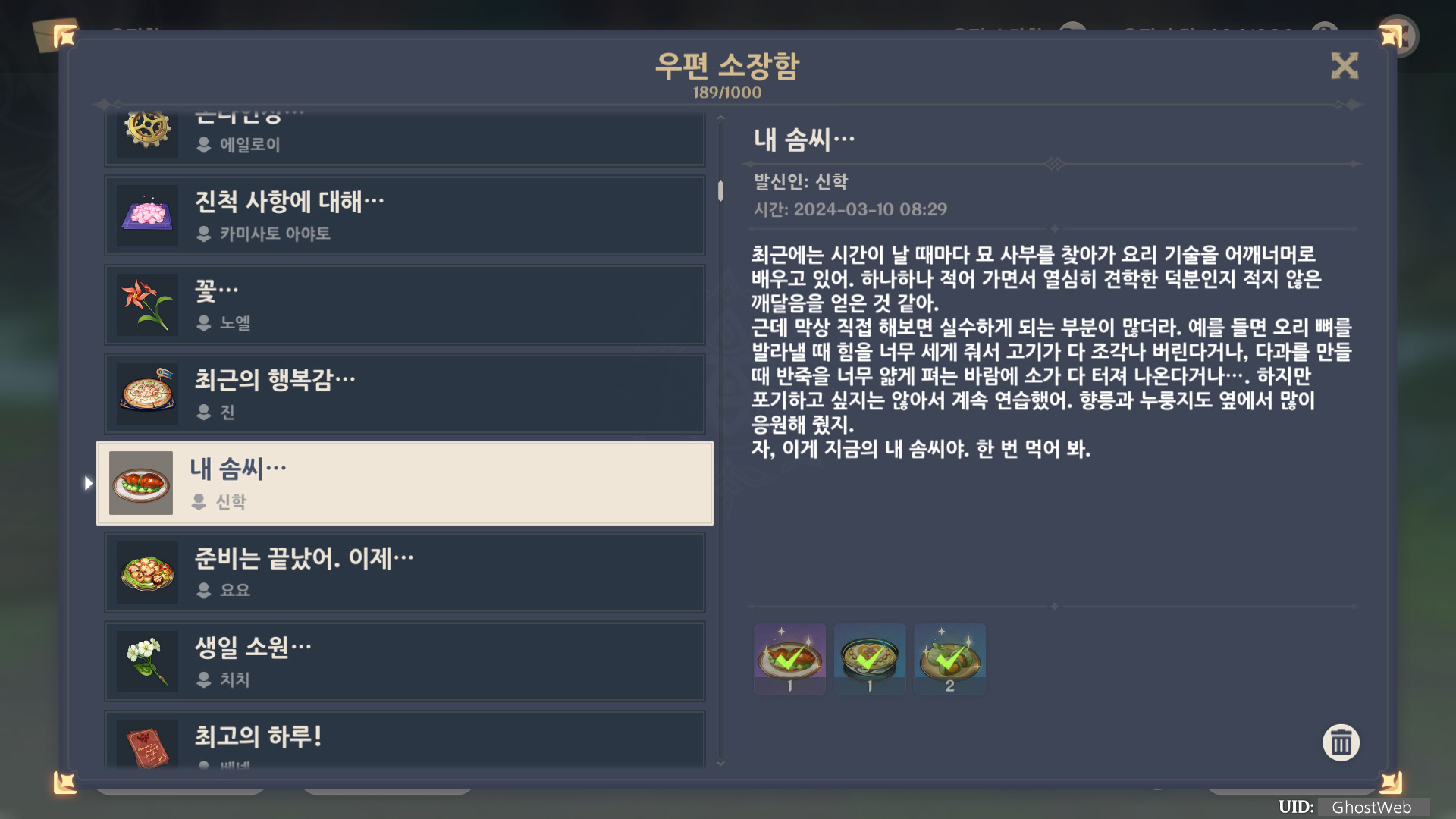 [원신] 우편 소장함 모음 / 정리 (2023년)