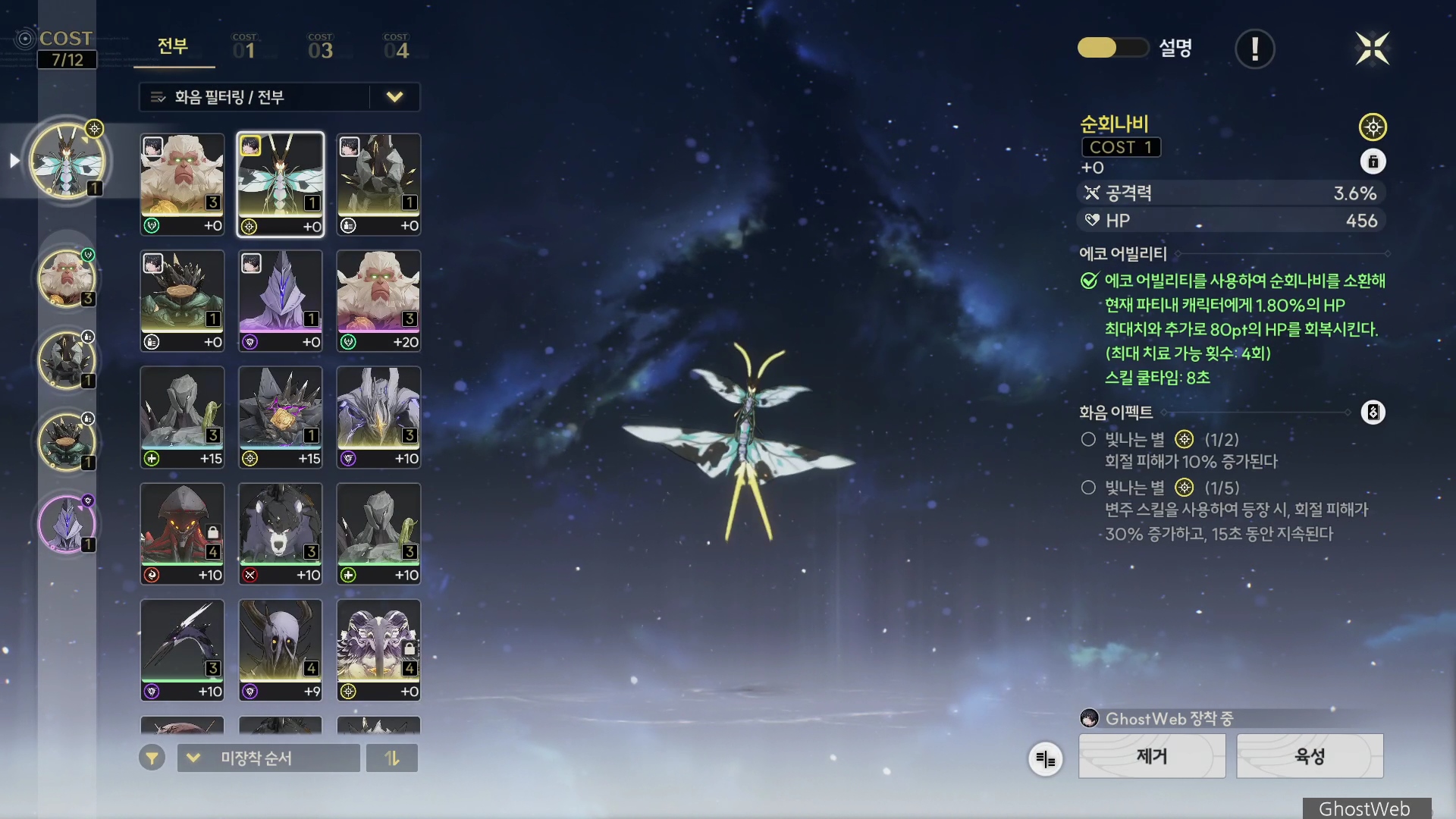 · 에코 어빌리티를 사용하여 순회나비를 소환해 현재 파티내 캐릭터에게 1.8%의 HP 최대치와 추가로 80pt의 HP를 회복 시킨다. (최대 치료 가능 횟수 : 4회)