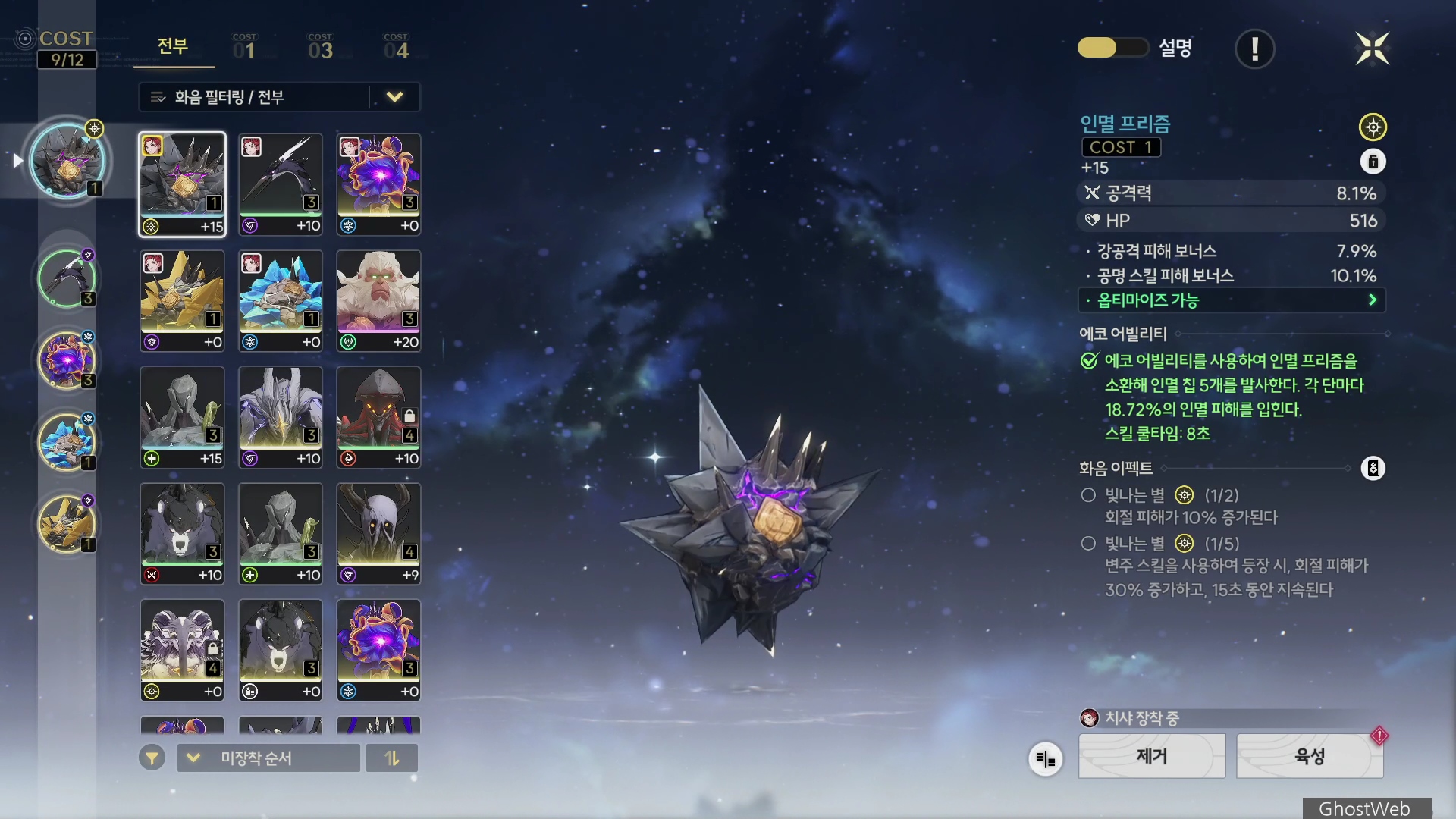 · 에코 어빌리티를 사용하여 인멸 프리즘을 소환해 인멸 칩 5개를 발사한다.