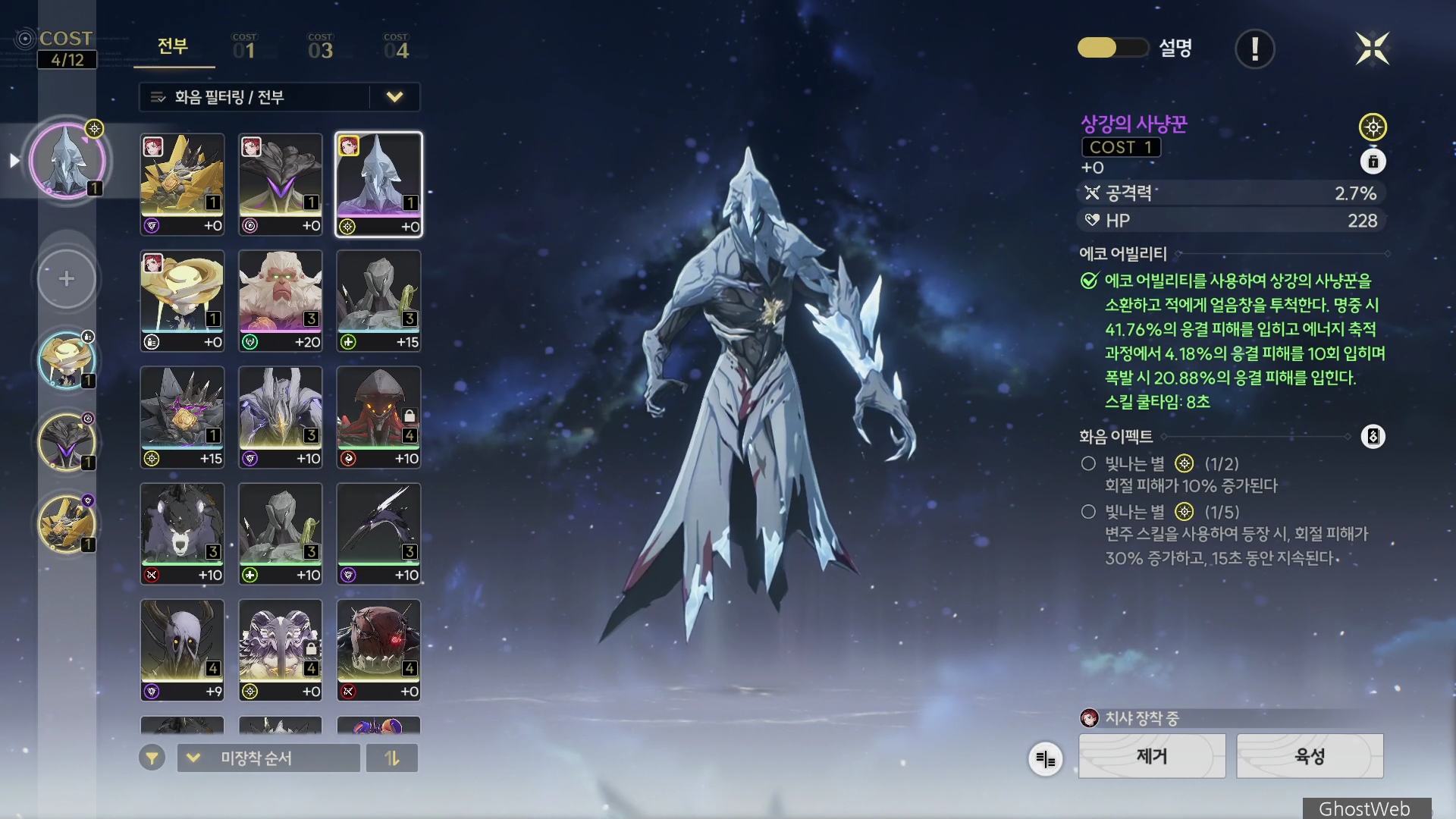 · 에코 어빌리티를 사용하여 상강의 사냥꾼을 소환하고 적에게 얼음창을 투척한다.
