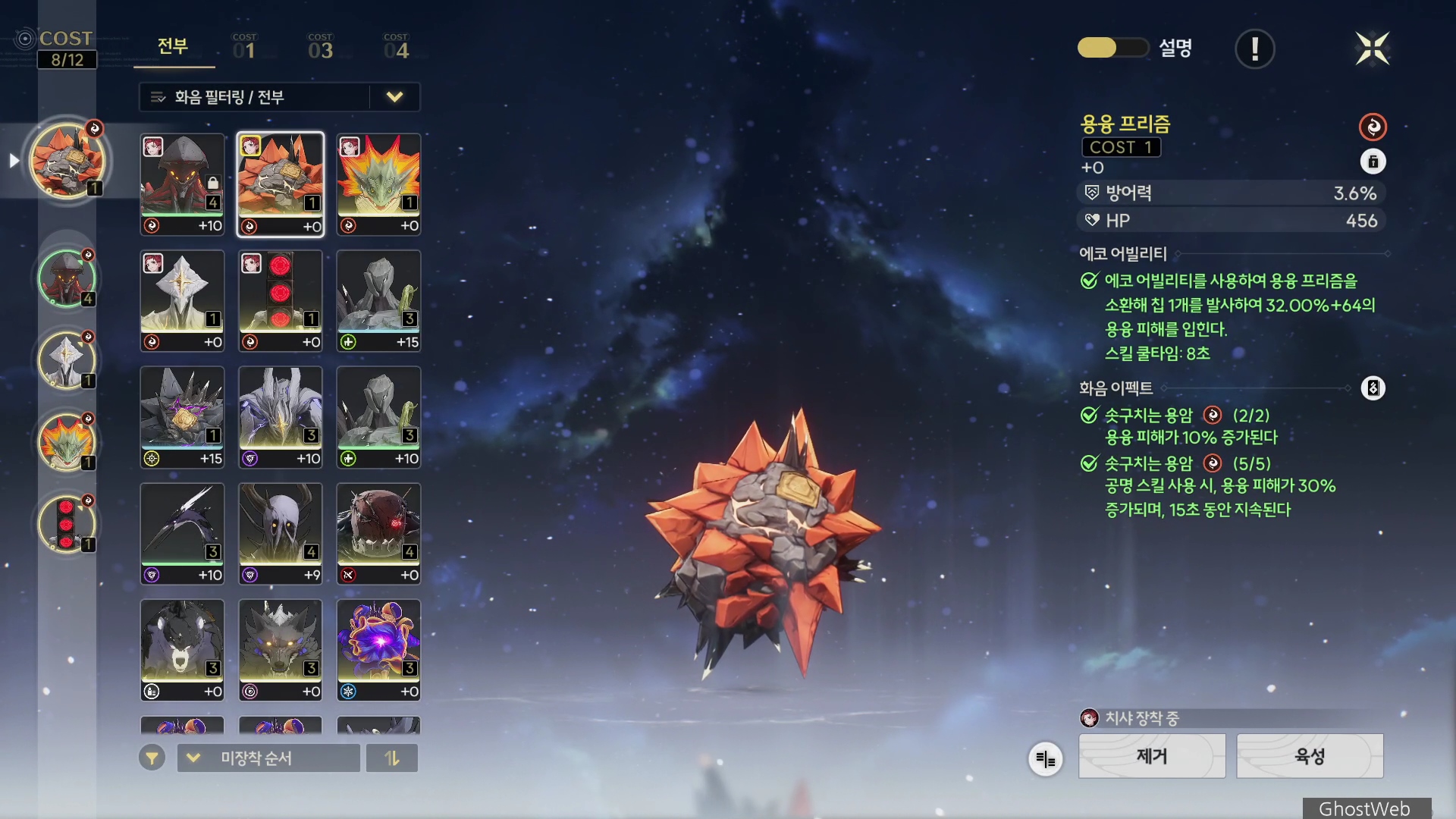 · 에코 어빌리티를 사용하여 용융 프리즘을 소환해 칩 1개를 발사하여 32% + 64의 용융 피해를 입힌다.