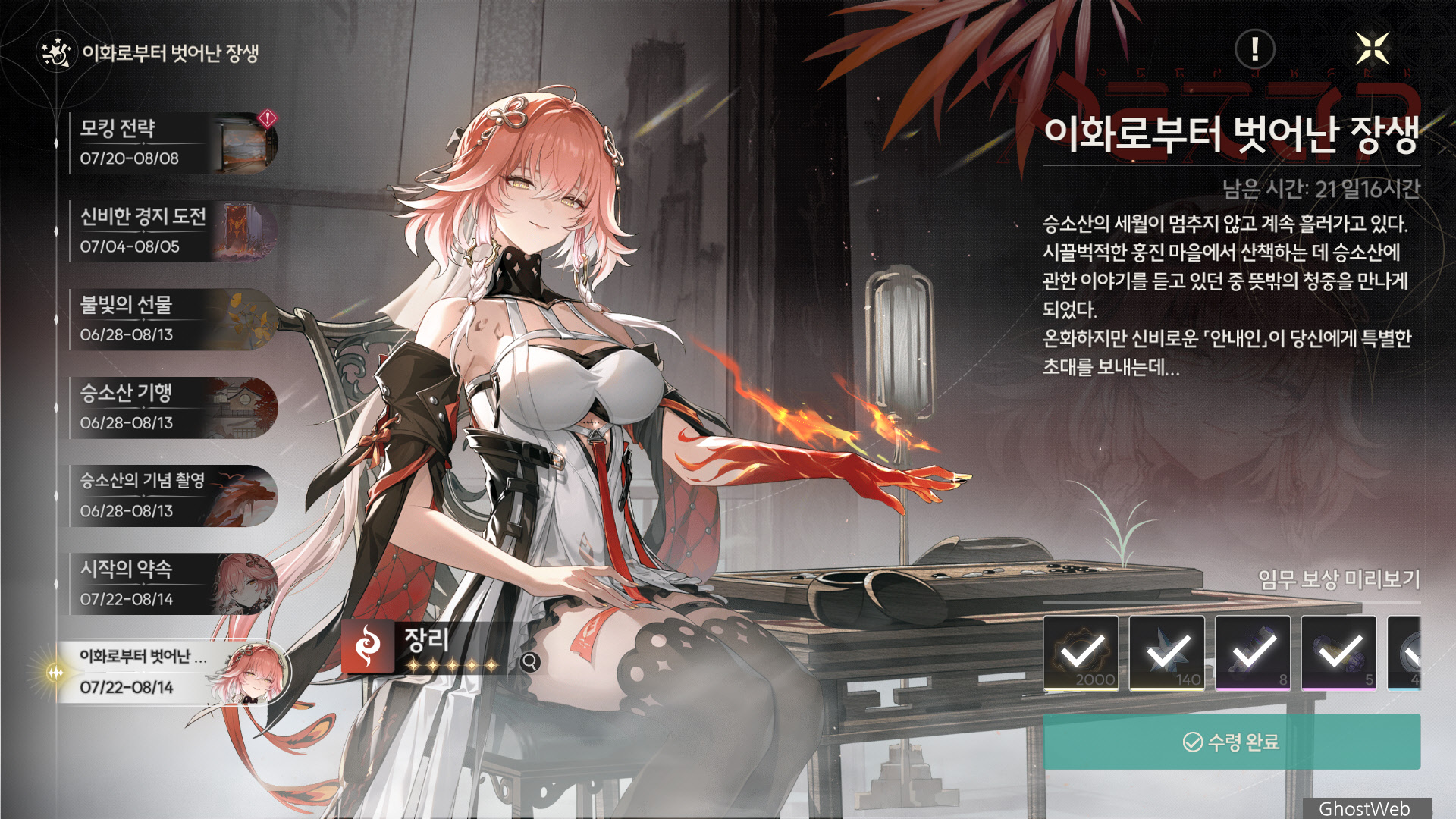 | 2 | 바라는 소원 | 이화 획득 시 장리의 크리티컬이 25% 증가하며, 8초간 지속된다. |