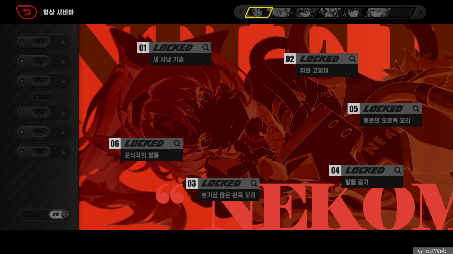 | D | 기본 공격력 25pt 증가 핵심 패시브: 살금살금 고양이 걸음 스킬 레벨 + 1 |
