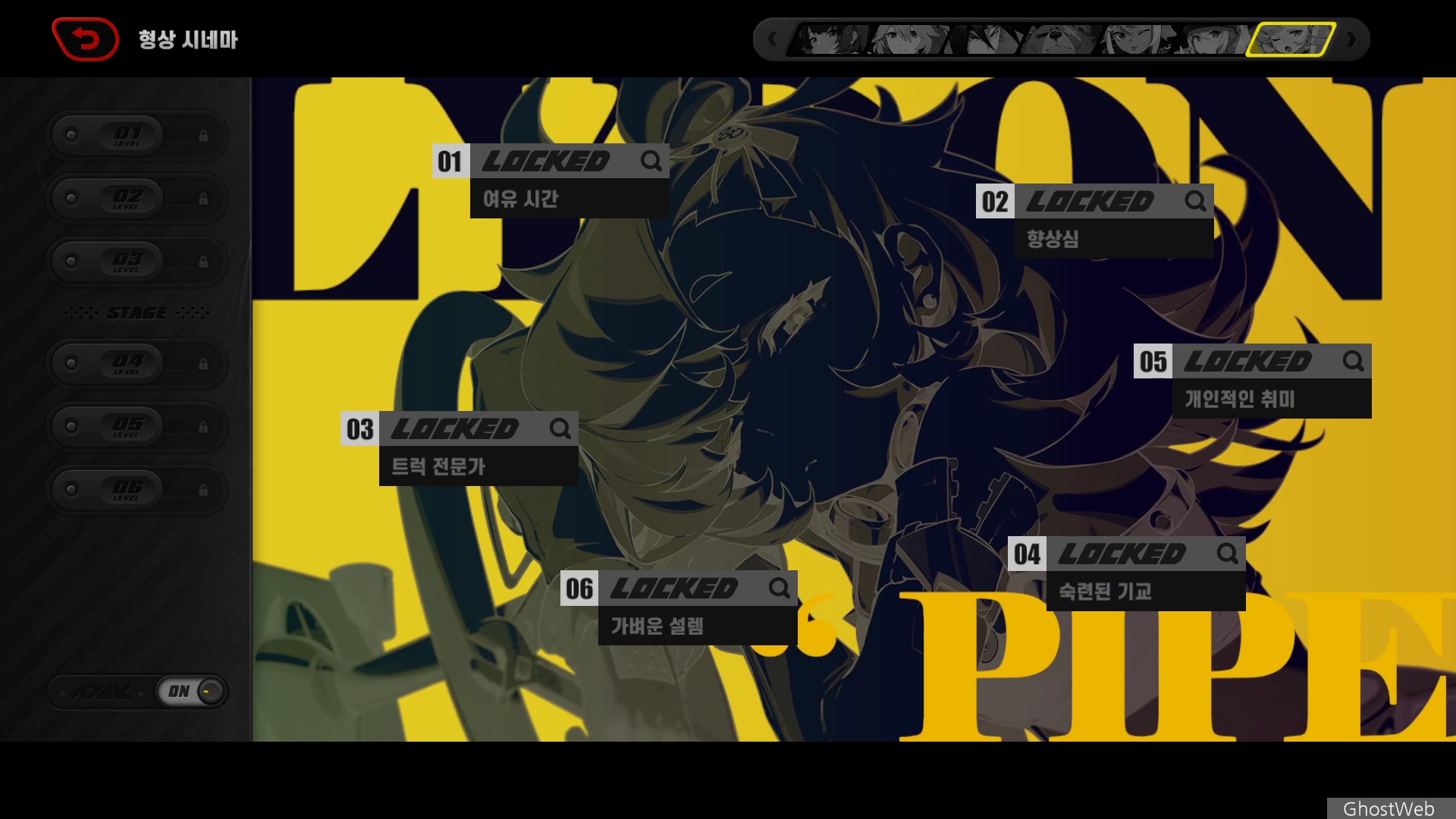 | 5 | 개인적인 취미 | 일반 공격, 회피, 지원 스킬, 특수 스킬, 콤보 스킬의 스킬 레벨 + 2 |
