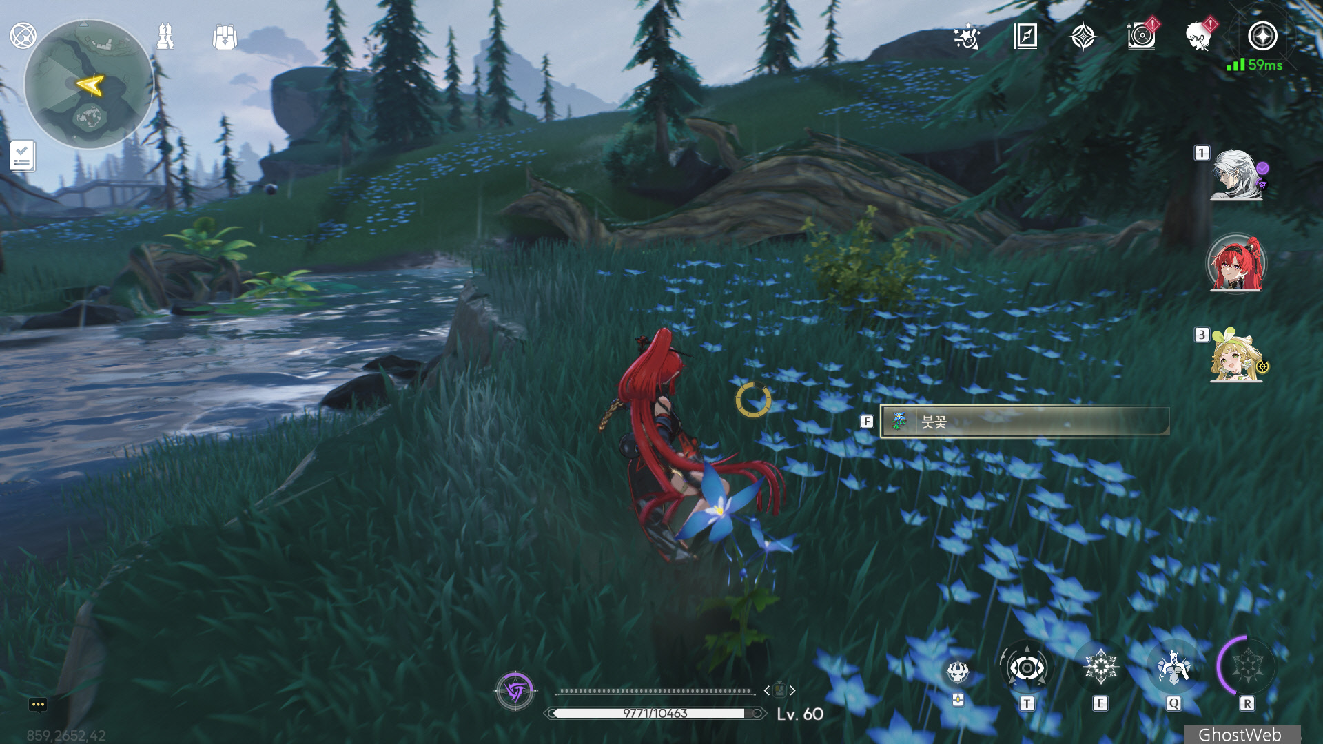붓꽃은 왜가리 습지에 많이 분포하고 있는데 명조를 시작한지 얼마 안되어 그 지역에 접근하면 [ 짙게 드리워진 안개와 번잡한 주파수로 인해 방향을 잃는다... ] 라는 멘트가 뜨면서 바깥지역으로 강제로 워프되어 접근 할 수 없어요.