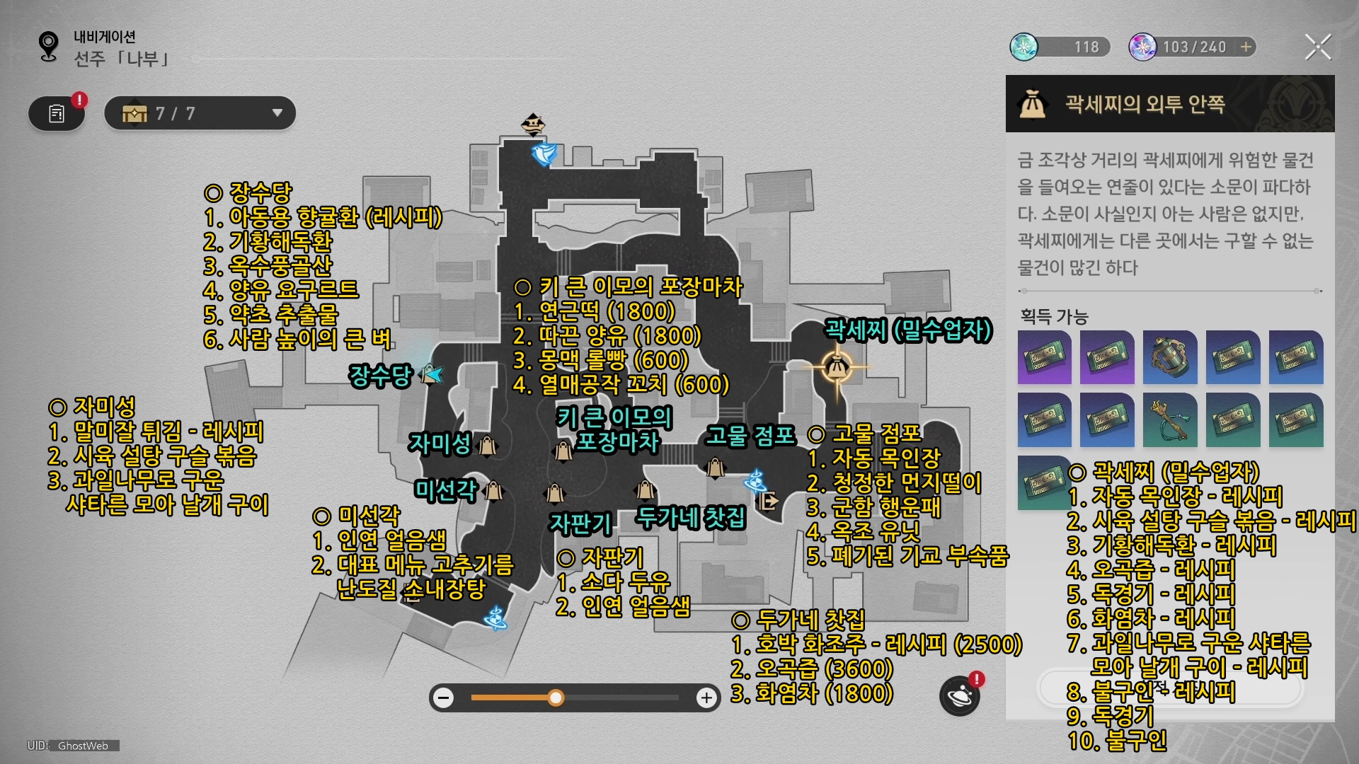 이번에는 선주 나부 금 조각 거리에 있는 NPC 들을 정리해보도록 할게요.